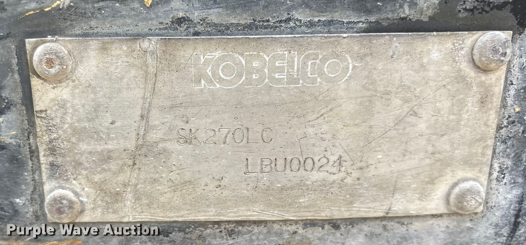 Purple Wave is selling a used Hydraulic Excavator in Texas. This item is a 1996 Kobelco SK270LC Mark IV excavator with the following: Hours: 8,986 on meter, Serial: LBU0024