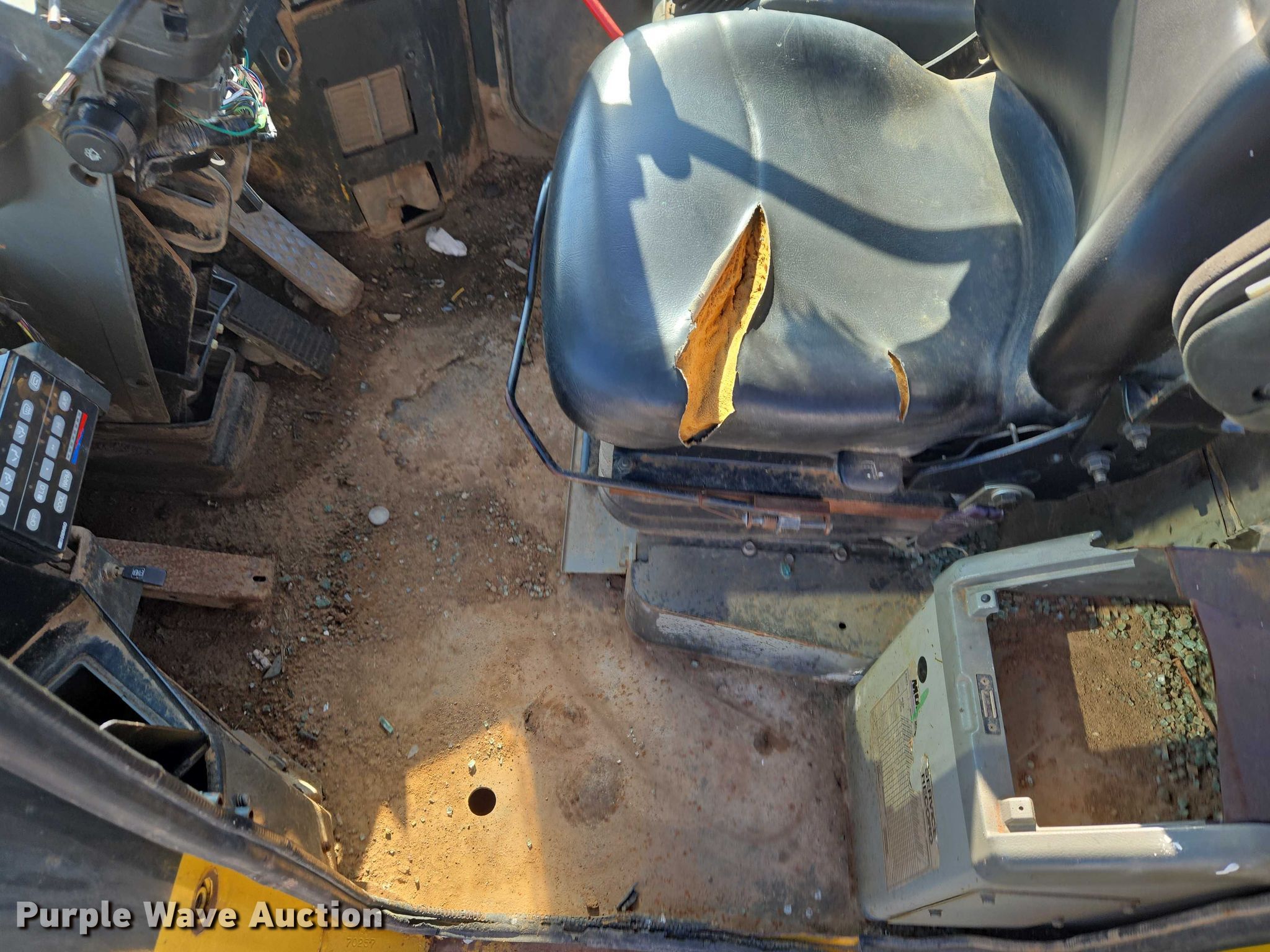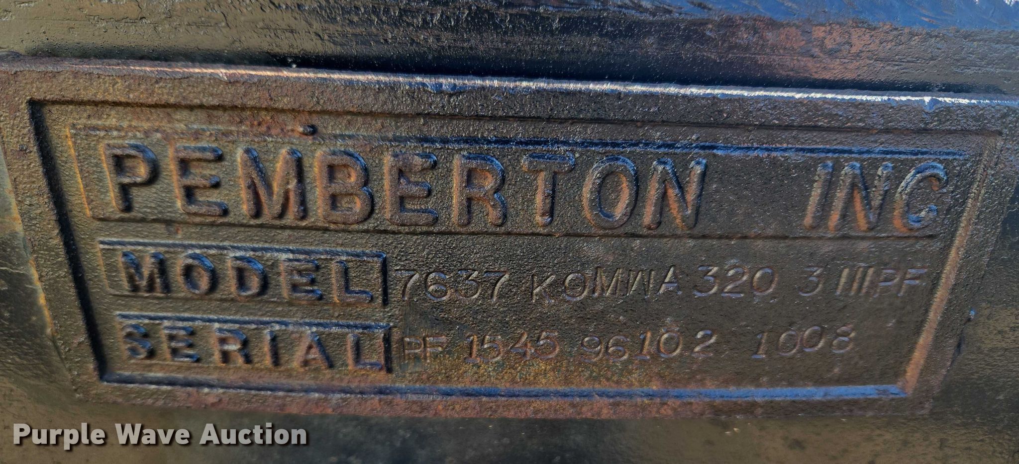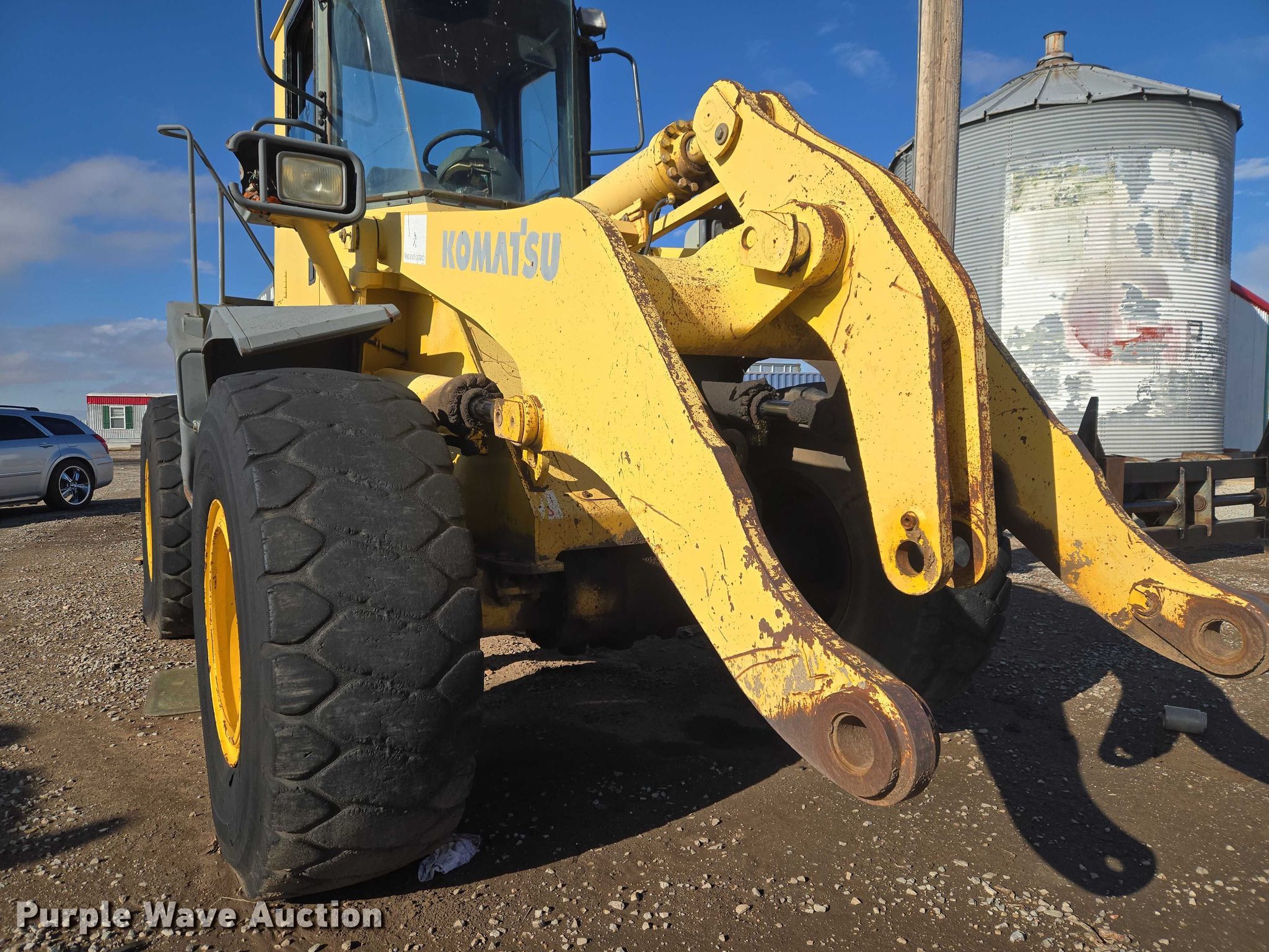 2002 Komatsu WA320-3MC wheel loader. Hours: 14,918 on meter, Serial: A31705. Engine Komatsu, Serial: 46168878, Displacement: 8.4, Cylinders: 6, Fuel type: Diesel. Transmission Powershift, 4F - 4R. Operators station Enclosed cab, AC, Heat, Bucket controls: Two-lever. Features Forks Pemberton 7637, Length: 95". Tires Size: 20.5-25. Notes Glass cracked, Jump start required during on-site data collection, Must be jumped from starter, Bucket missing, Parts missing, Hydraulic leak, Transmission issues , Unknown operating condition. El Reno, OK 73036