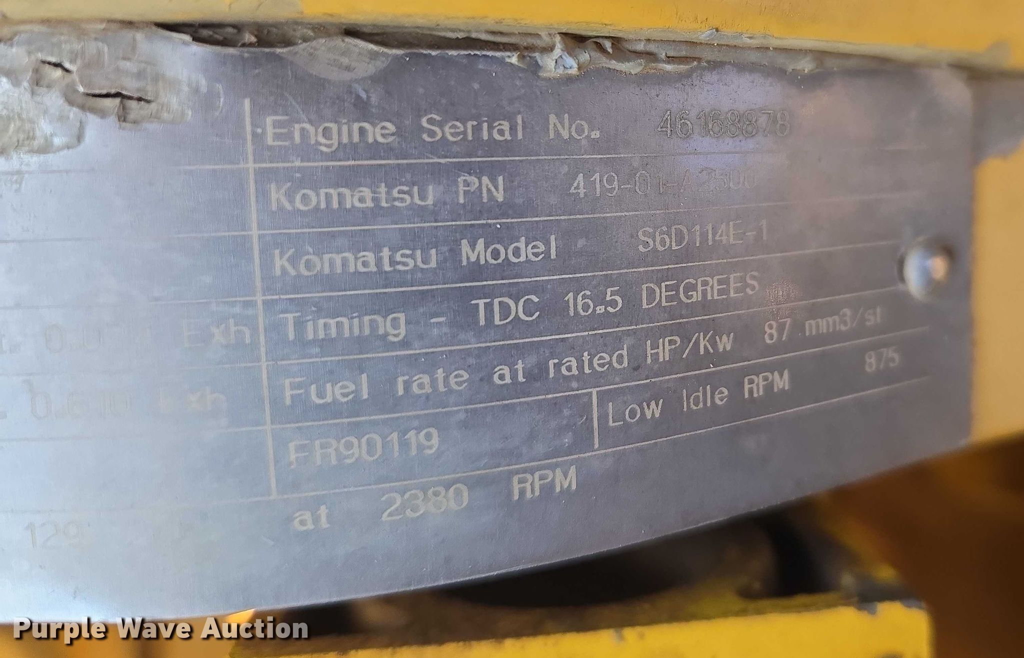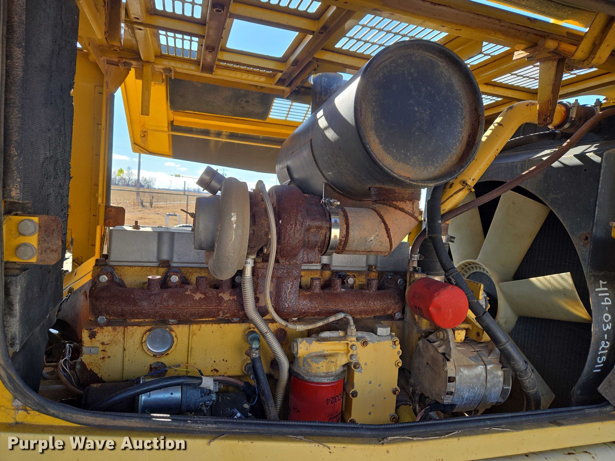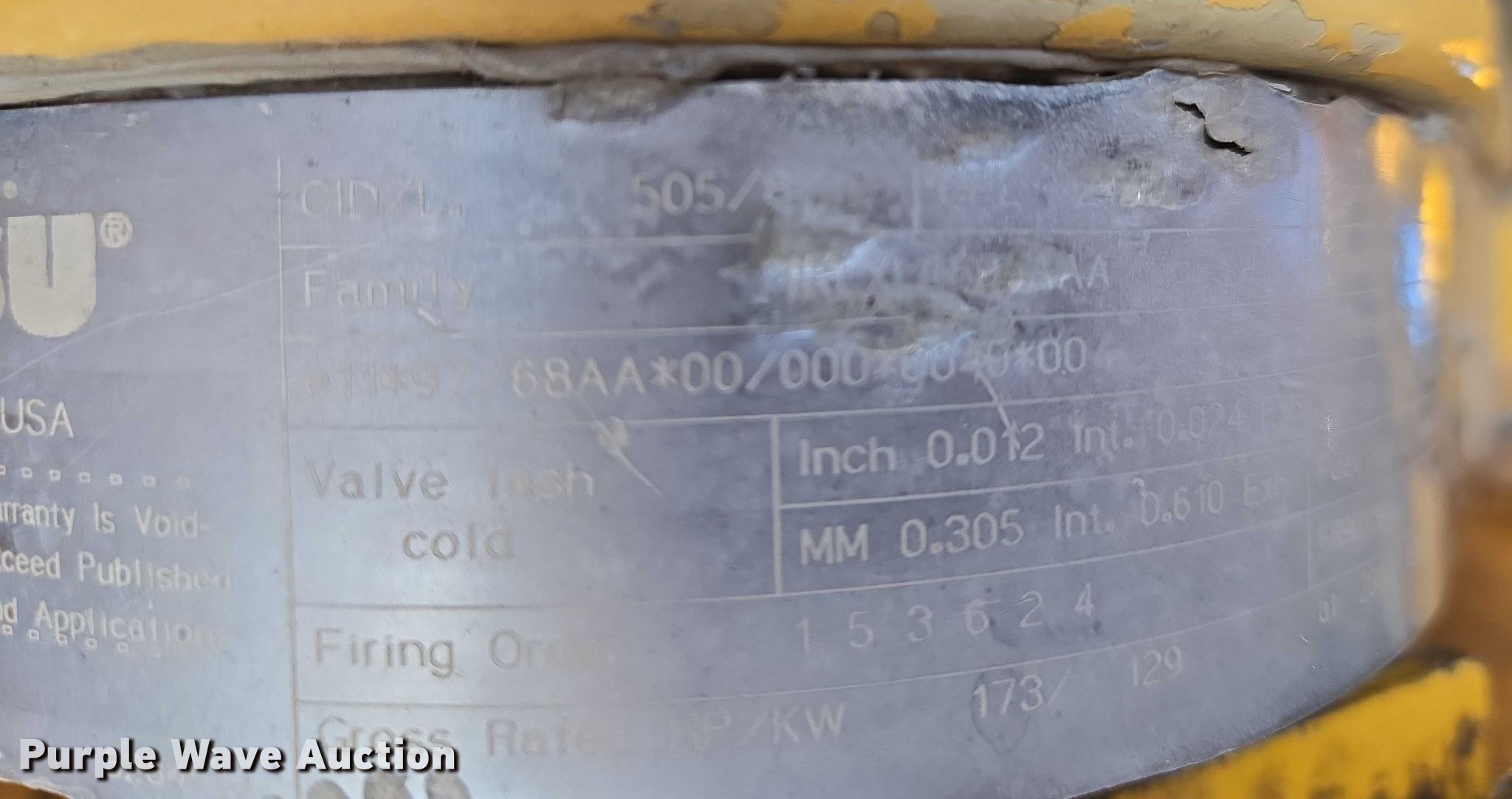 2002 Komatsu WA320-3MC wheel loader. Hours: 14,918 on meter, Serial: A31705. Engine Komatsu, Serial: 46168878, Displacement: 8.4, Cylinders: 6, Fuel type: Diesel. Transmission Powershift, 4F - 4R. Operators station Enclosed cab, AC, Heat, Bucket controls: Two-lever. Features Forks Pemberton 7637, Length: 95". Tires Size: 20.5-25. Notes Glass cracked, Jump start required during on-site data collection, Must be jumped from starter, Bucket missing, Parts missing, Hydraulic leak, Transmission issues , Unknown operating condition. El Reno, OK 73036