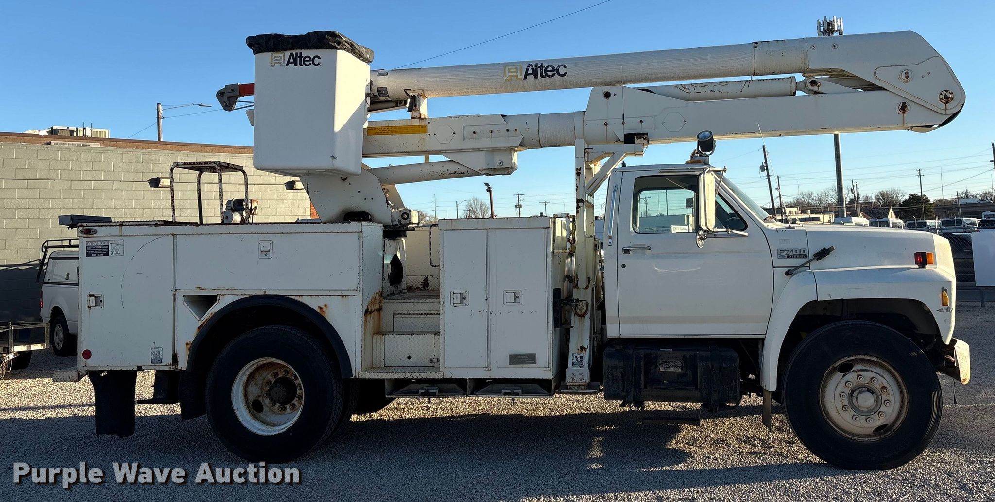 Purple Wave is selling a used Bucket Truck in Kansas. This item is a 1994 Ford F700 bucket truck with the following: Miles: 190,732 on odometer, Hours: 8,660 on meter, VIN: 1FDPK74C8RVA21874