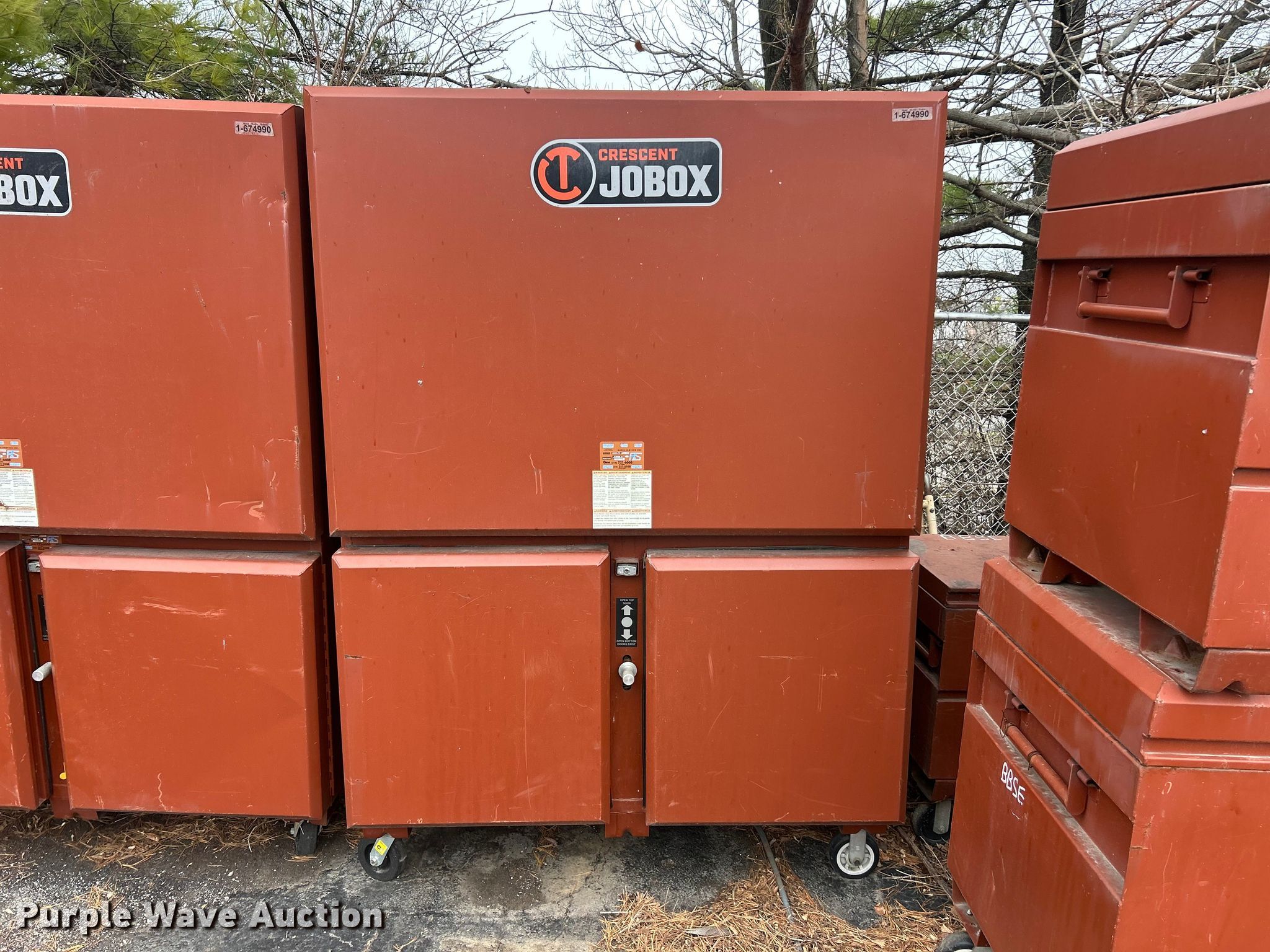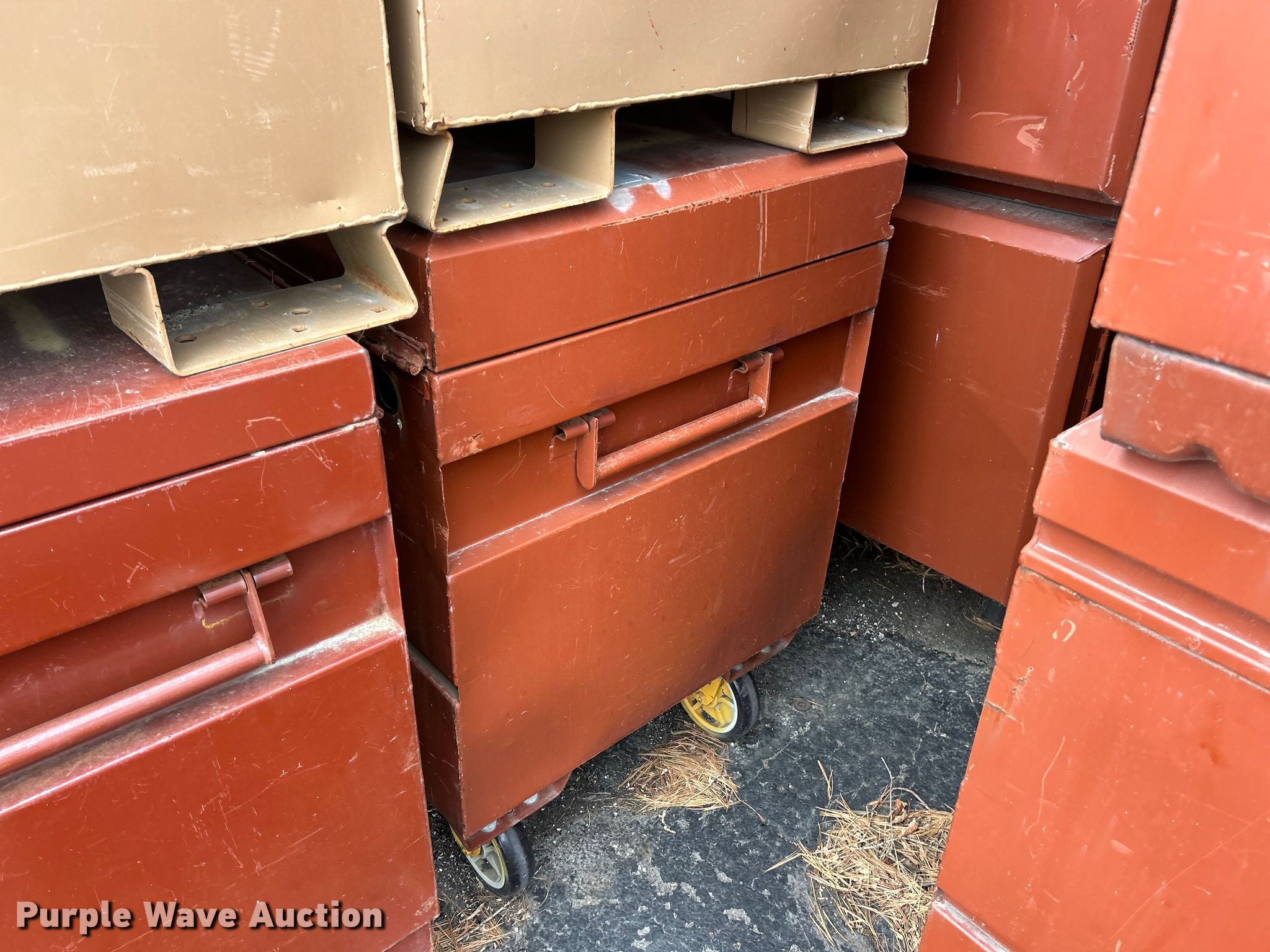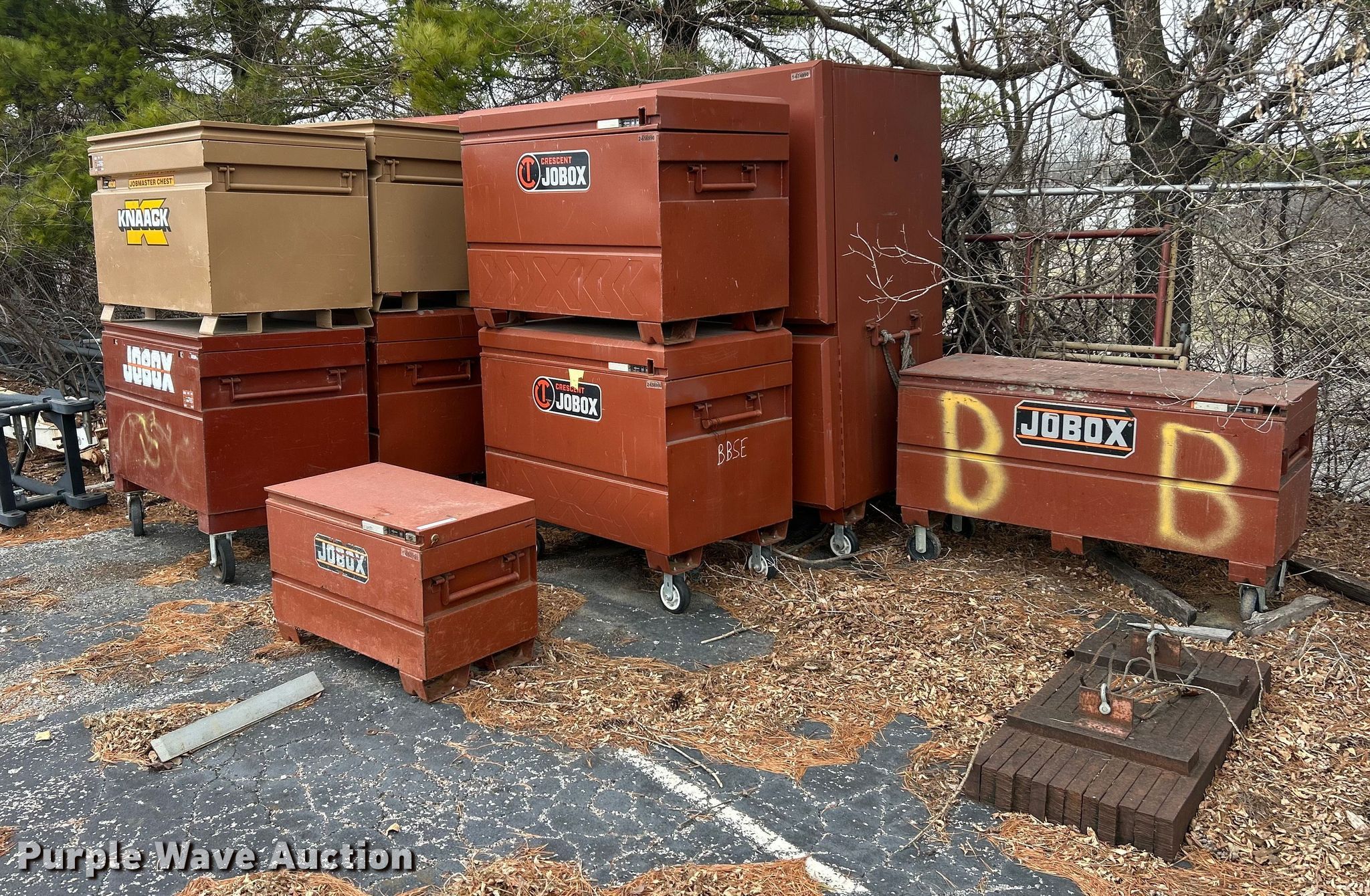 (10) tool boxes. (5) Crescent Jobox, (2) Knaack Jobox, (3) Jobox. Buyer responsible for all aspects of removal.. Big Boy's Steel Erection. Hazelwood, MO 63042