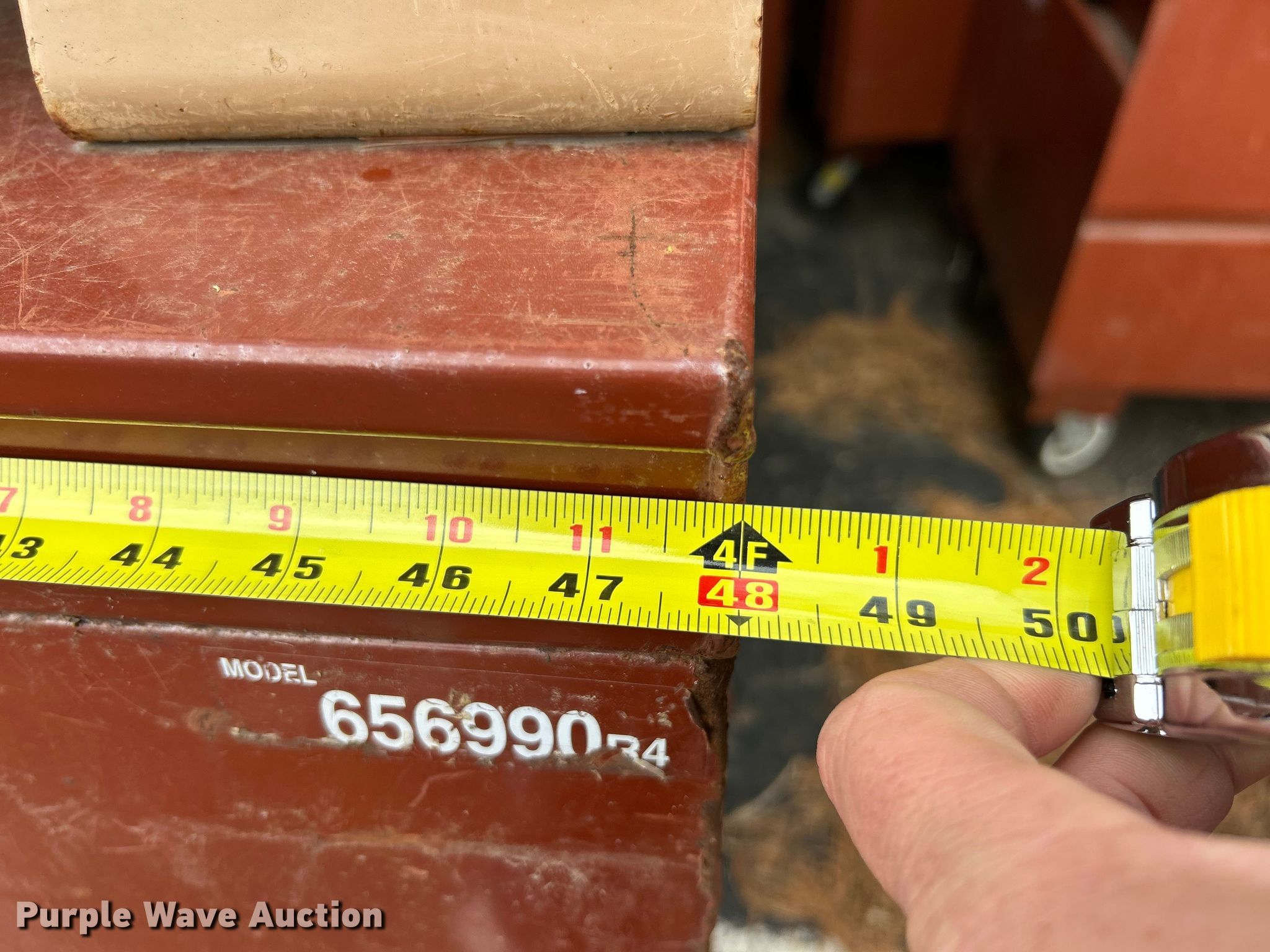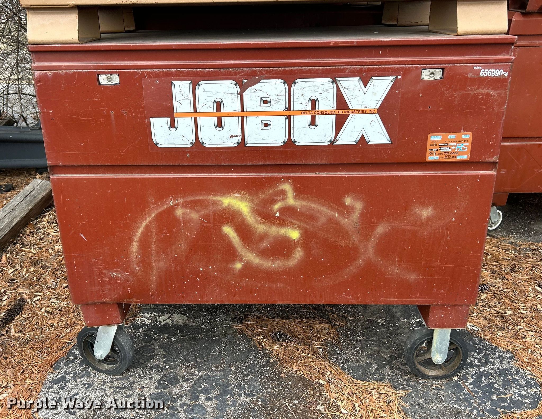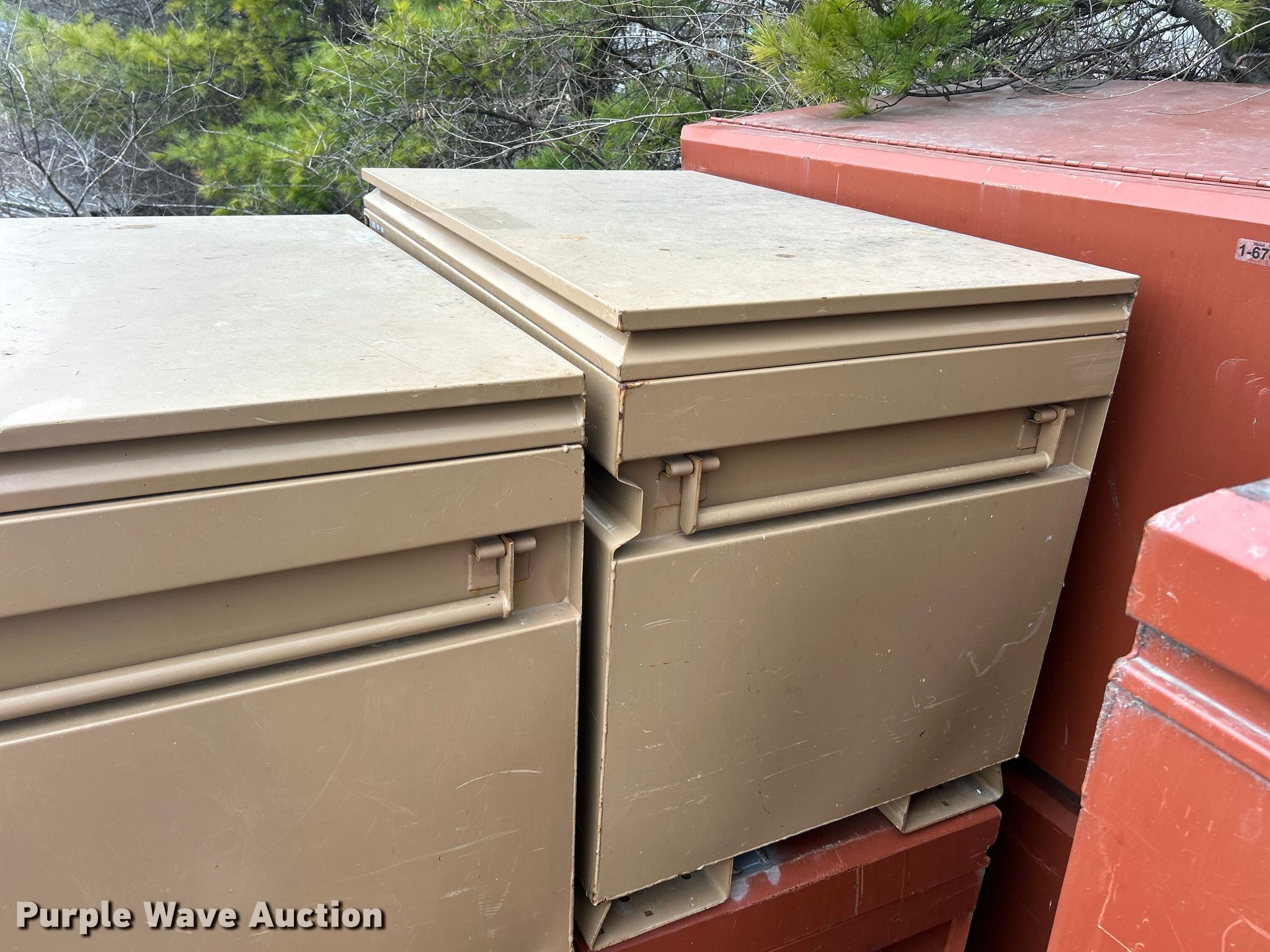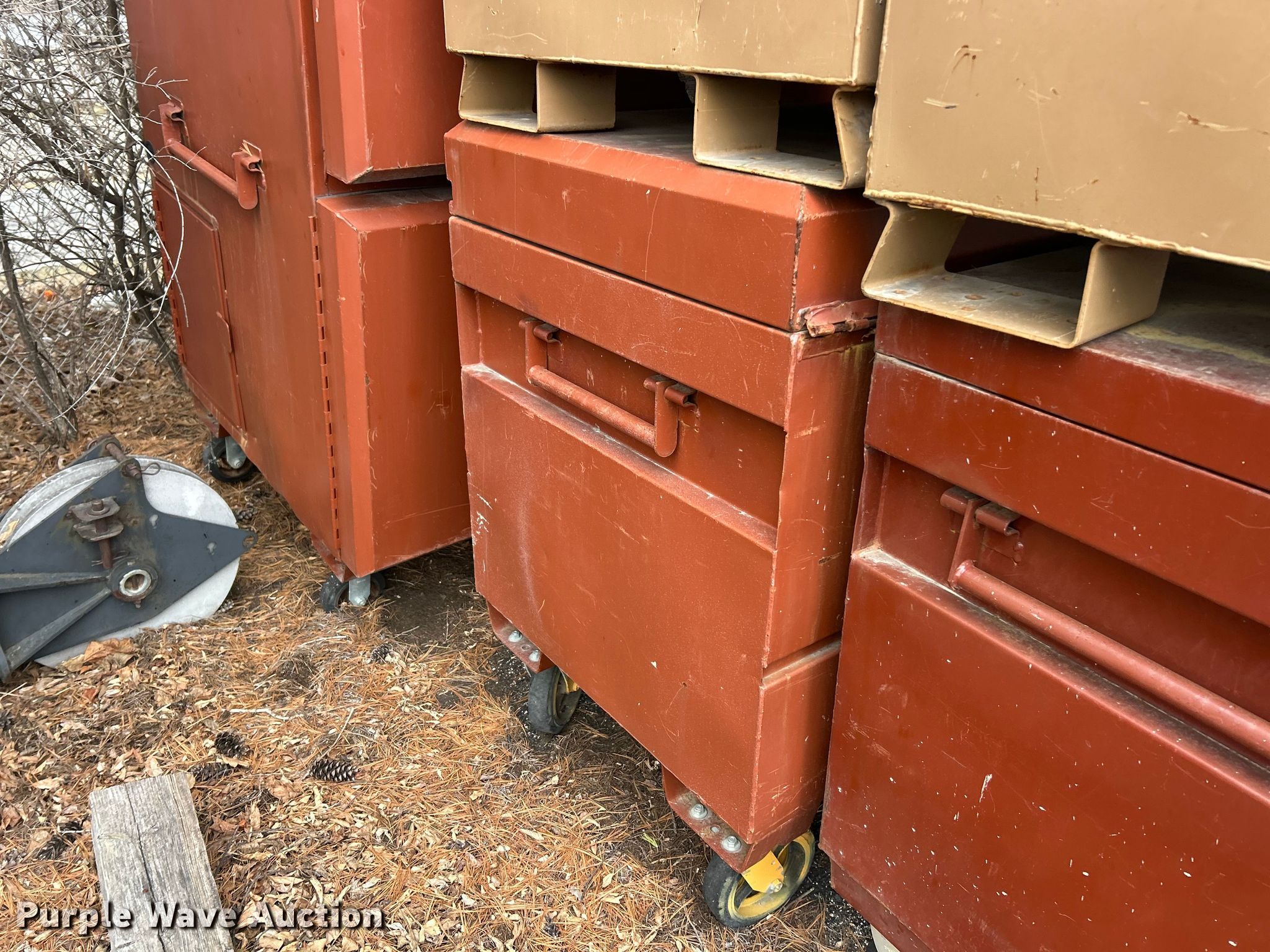 (10) tool boxes. (5) Crescent Jobox, (2) Knaack Jobox, (3) Jobox. Buyer responsible for all aspects of removal.. Big Boy's Steel Erection. Hazelwood, MO 63042