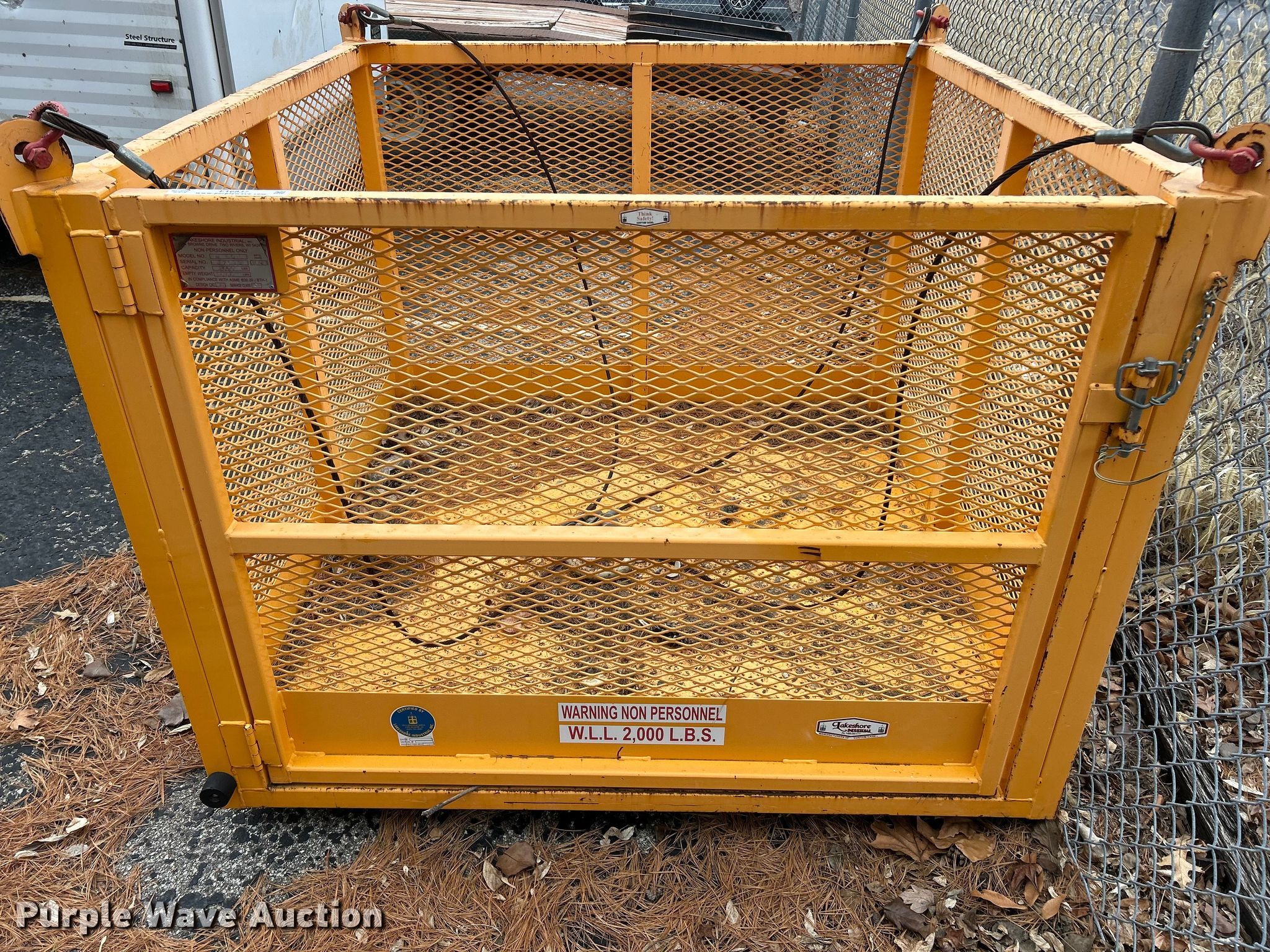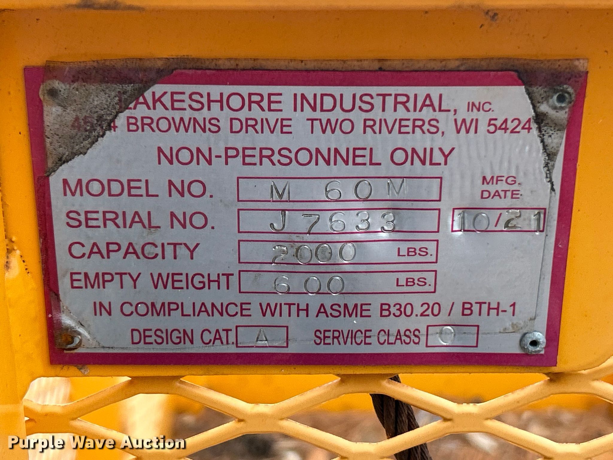 Lakeshore Industrial M60M crane basket. Serial: J7633. Dimensions Overall Length: 60", Width: 60", Height: 44". Features Capacity: 2,000lbs. Buyer responsible for all aspects of removal.. Big Boy's Steel Erection. Hazelwood, MO 63042