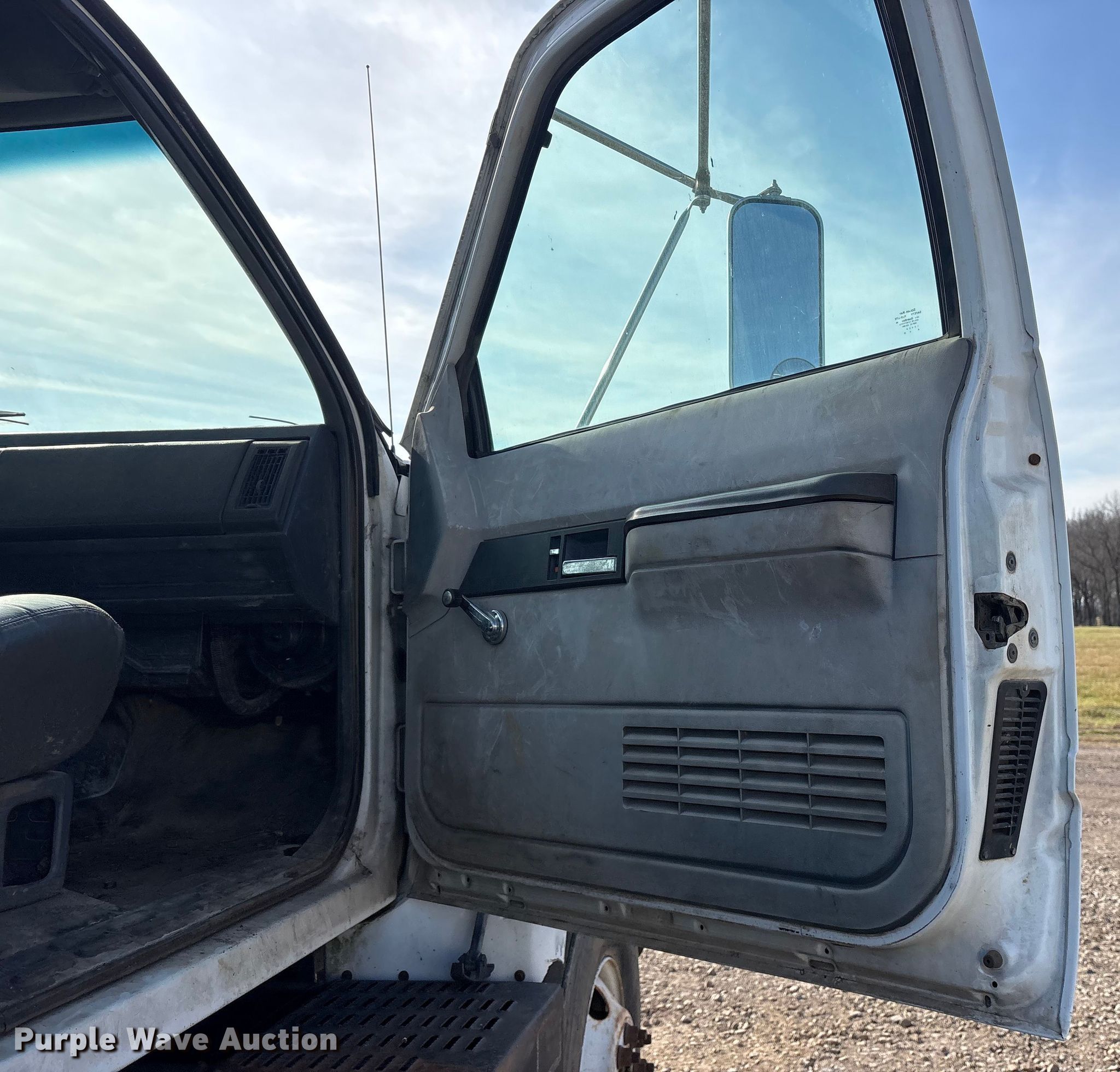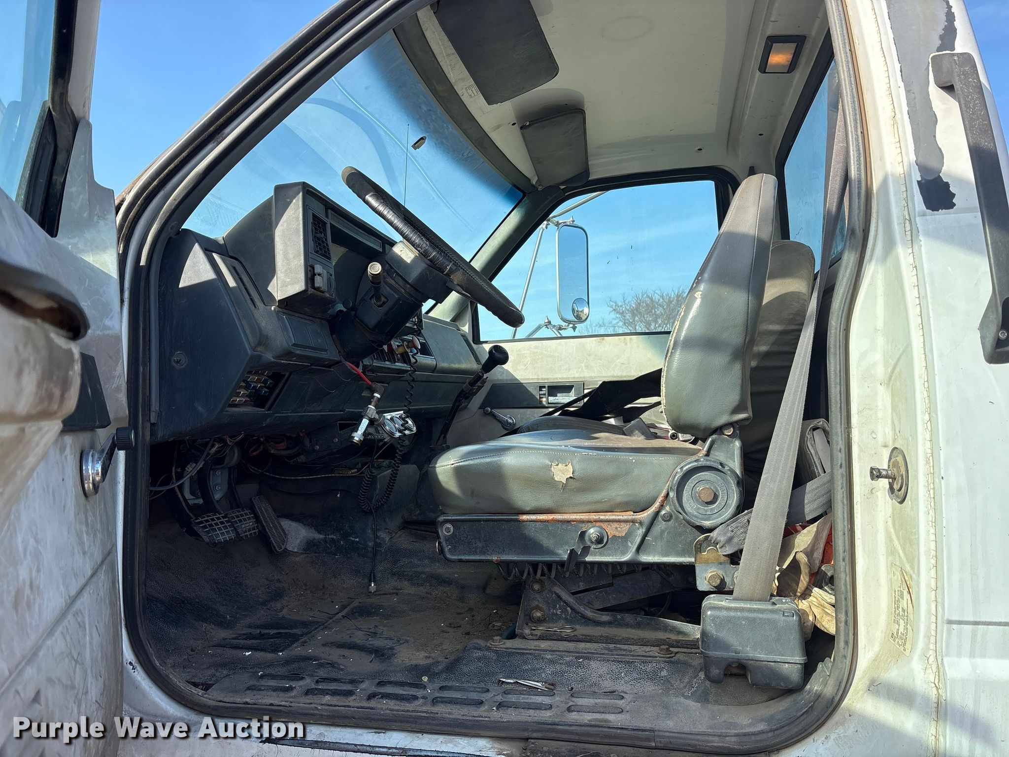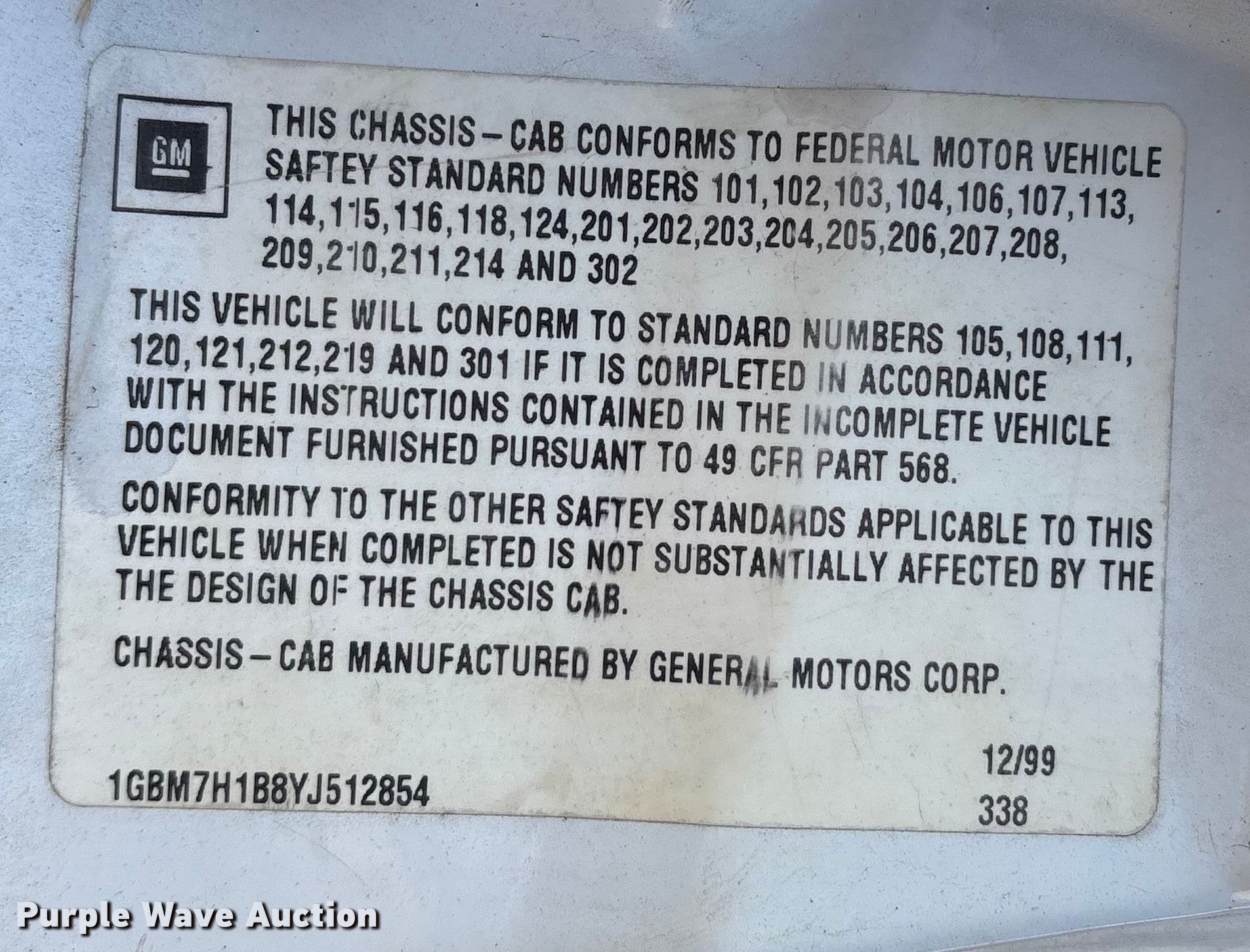 2000 Chevrolet C7500 winch truck. Miles: 165,823 on odometer, VIN: 1GBM7H1B8YJ512854. Engine GM, Displacement: 7.4L, Cylinders: 8, Fuel type: Gas. Transmission Manual, Speed: 5, plus 2. Chassis Axles: Single, Suspension: Spring, Brakes: Air, PTO, GVWR: 32,000 lbs. Interior AC, Heat. Features Bed Flatbed, Rollback bed, Leland, Length: 11', Width: 8', Winch, Rolling tailboard, Gooseneck. Tires Size: 11R22.5. Notes Dash warning indicator: Check engine, Low air, Possible AC issues, may need charged, AC blower issues, blows on feet only. Oklahoma title. Title distribution may be delayed up to 14 days from verification of funds. Hutcherson Construction Inc. Bokoshe, OK 74930
