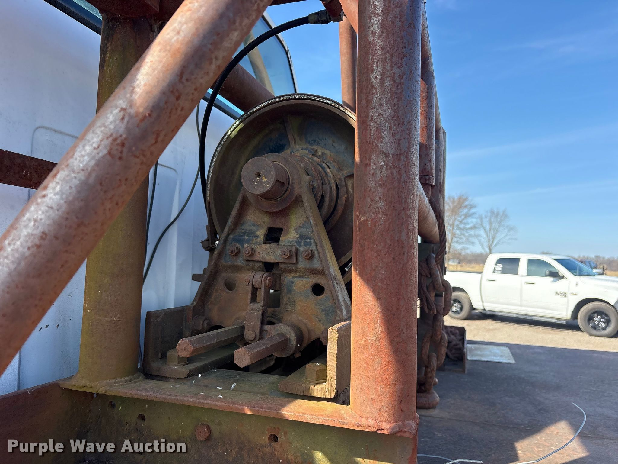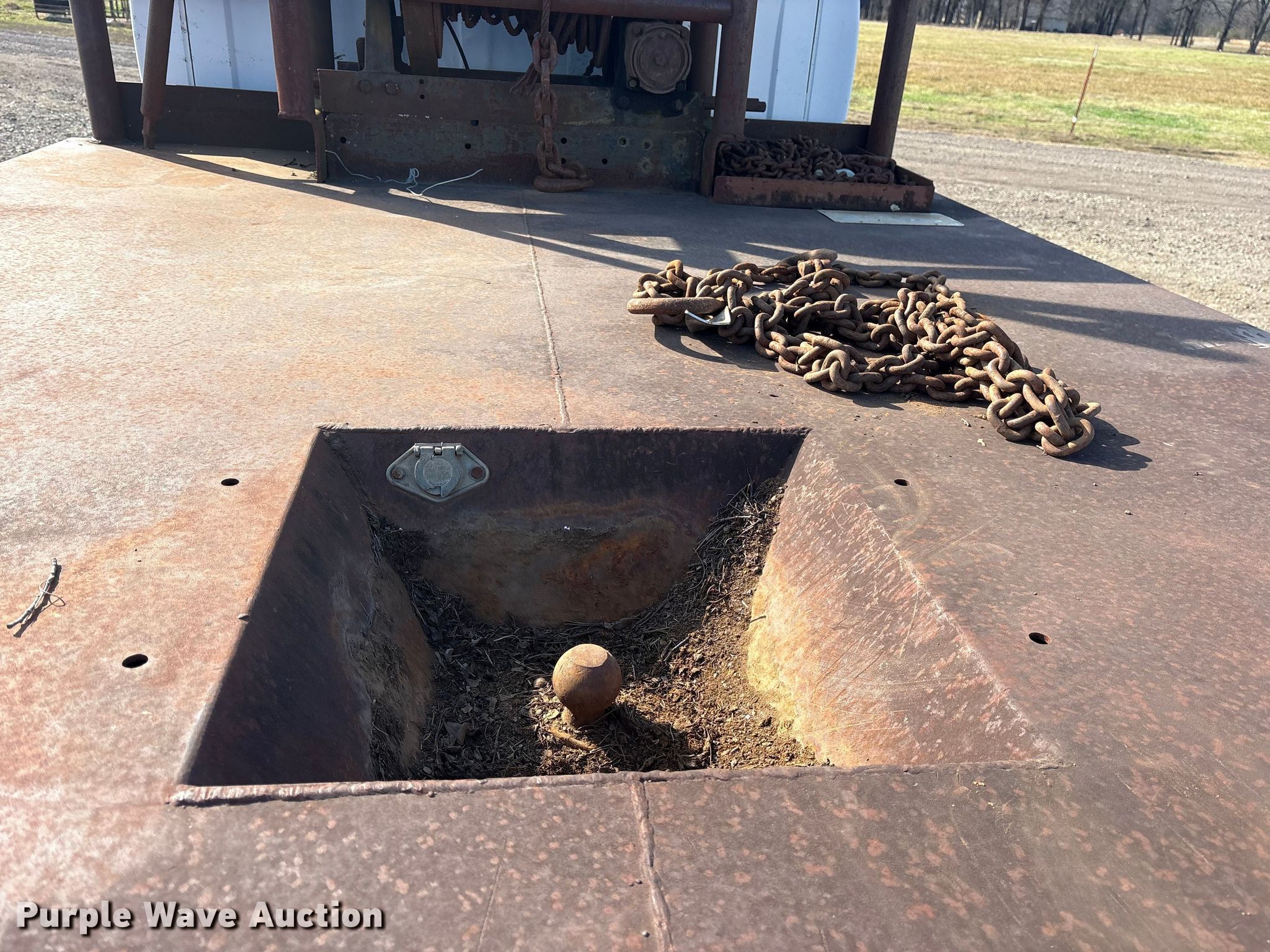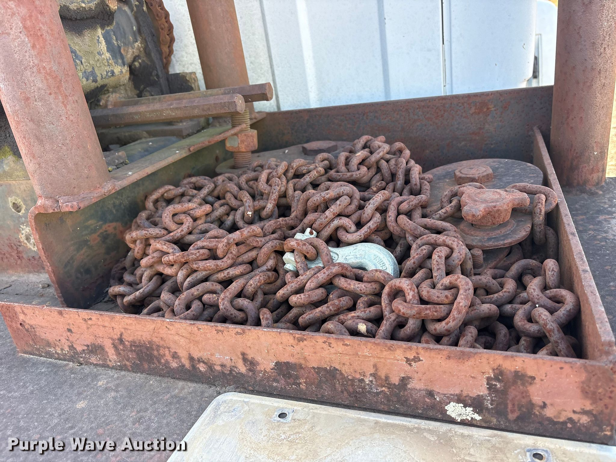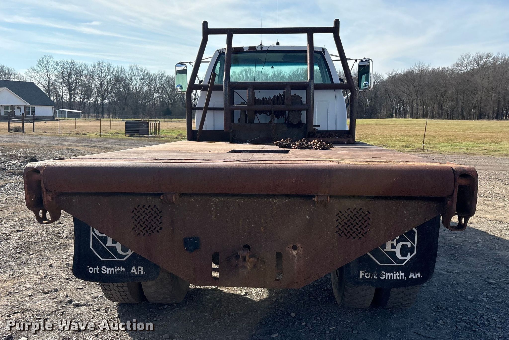 2000 Chevrolet C7500 winch truck. Miles: 165,823 on odometer, VIN: 1GBM7H1B8YJ512854. Engine GM, Displacement: 7.4L, Cylinders: 8, Fuel type: Gas. Transmission Manual, Speed: 5, plus 2. Chassis Axles: Single, Suspension: Spring, Brakes: Air, PTO, GVWR: 32,000 lbs. Interior AC, Heat. Features Bed Flatbed, Rollback bed, Leland, Length: 11', Width: 8', Winch, Rolling tailboard, Gooseneck. Tires Size: 11R22.5. Notes Dash warning indicator: Check engine, Low air, Possible AC issues, may need charged, AC blower issues, blows on feet only. Oklahoma title. Title distribution may be delayed up to 14 days from verification of funds. Hutcherson Construction Inc. Bokoshe, OK 74930