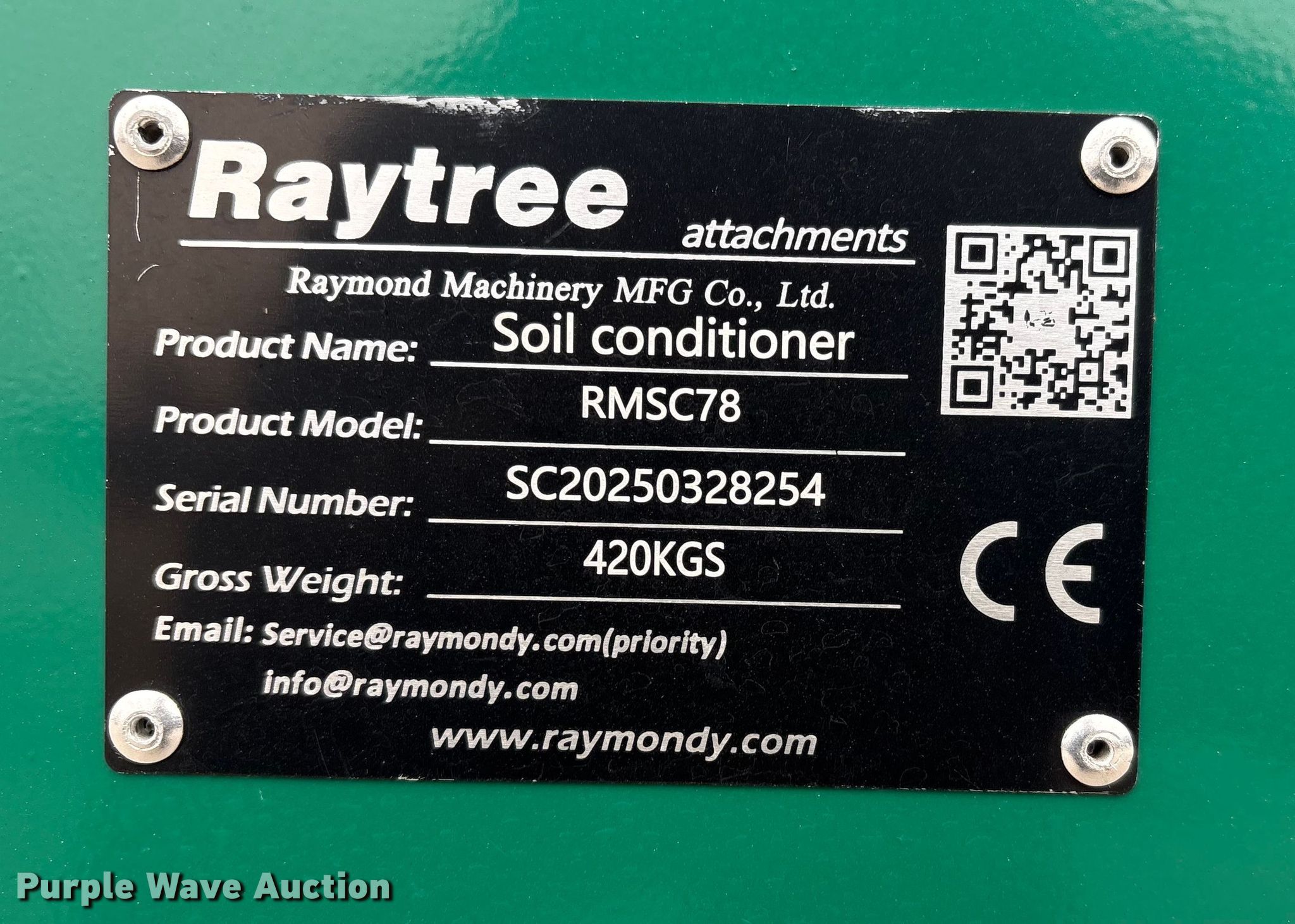 Take a look at this used 2025 Raytree RMSC78 skid steer soil conditioner being sold on January 29th, 2026 in the Thursday January 29 Construction Equipment Auction made by Raytree. Take a look at all of the item information below or take a look at similar auctions for Skid Steer Loaders.