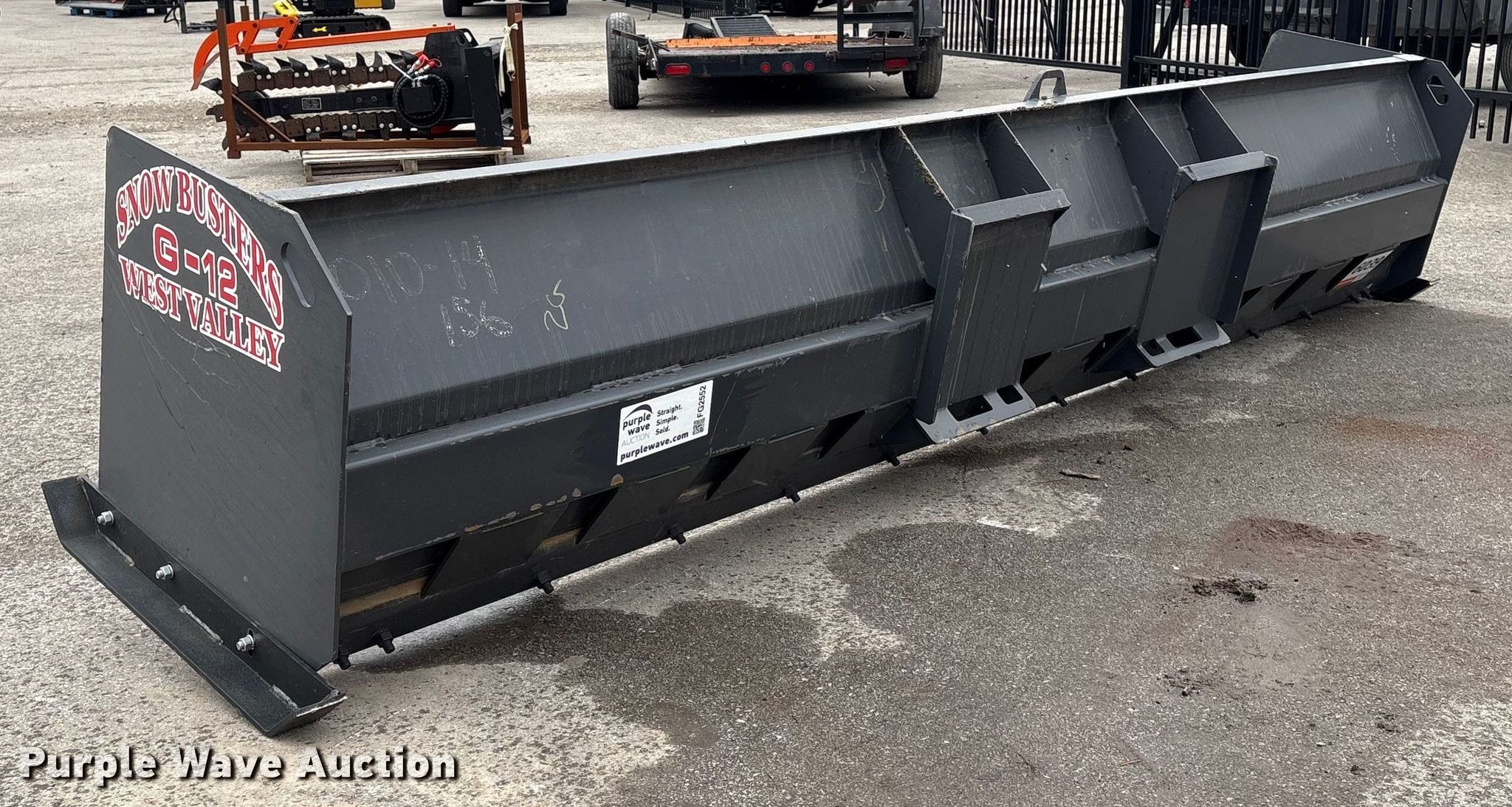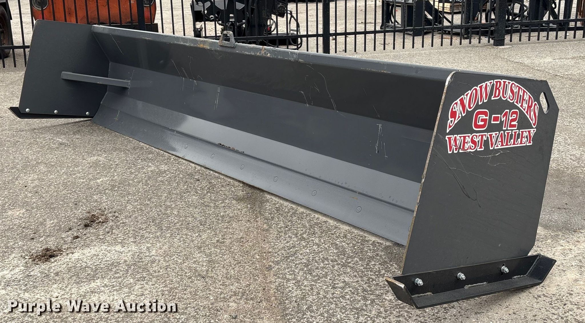 Industrias America Snowbusters G-12 skid steer snow pusher. Serial: G12202537316, Width: 12". Notes Unused. Jordan Truck and Equipment. Waterloo, NE 68069