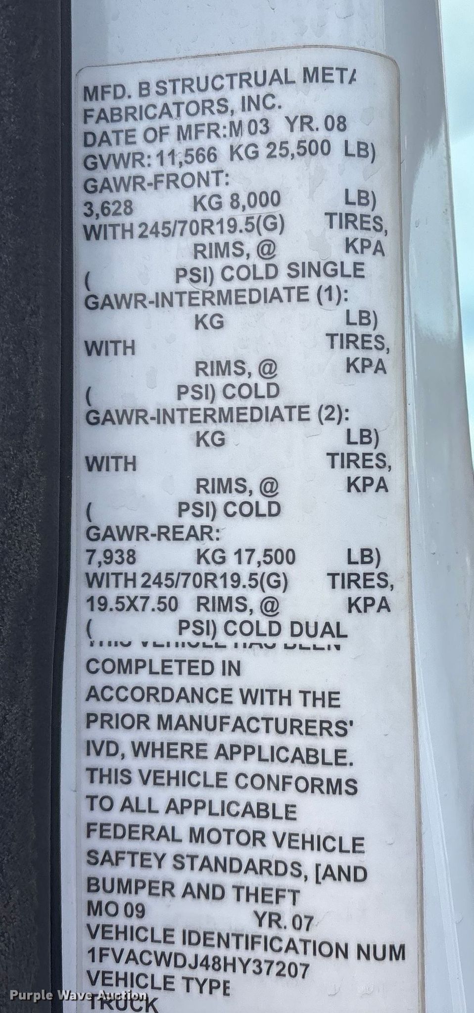 2008 Freightliner Business Class M2 semi truck. Miles: 213,615 on odometer, Hours: 7,503 on meter, VIN: 1FVACWDJ48HY37207. Engine Mercedes Benz MBE-900, Displacement: 7.2L, Cylinders: 6, Fuel type: Diesel. Transmission Automatic. Chassis Axles: Single, Suspension: Spring, Brakes: Air, PTO, Truck chassis: 15' 3", GVWR: 25,500 lbs FAWR: 8,000 lbs, RAWR: 17,500 lbs. Interior AC, Heat, Cruise control, Air ride cab, Auxiliary controls, Brake controller. Features Fuel tank: Single, Air compressor, Hose reel. Tires Size: 245/70R19.5. Notes Dash warning indicator: ABS. New York title. Seller is a Nebraska licensed motor vehicle dealer. The buyer may be required to pay sales tax and/or registration fees to the dealer prior to taking possession. Buyers may be required to provide identification to the licensed dealer to comply with state laws. Title will be assigned and distributed by the dealer. Please contact the seller for distribution questions. Jordan Truck and Equipment. Waterloo, NE 68069