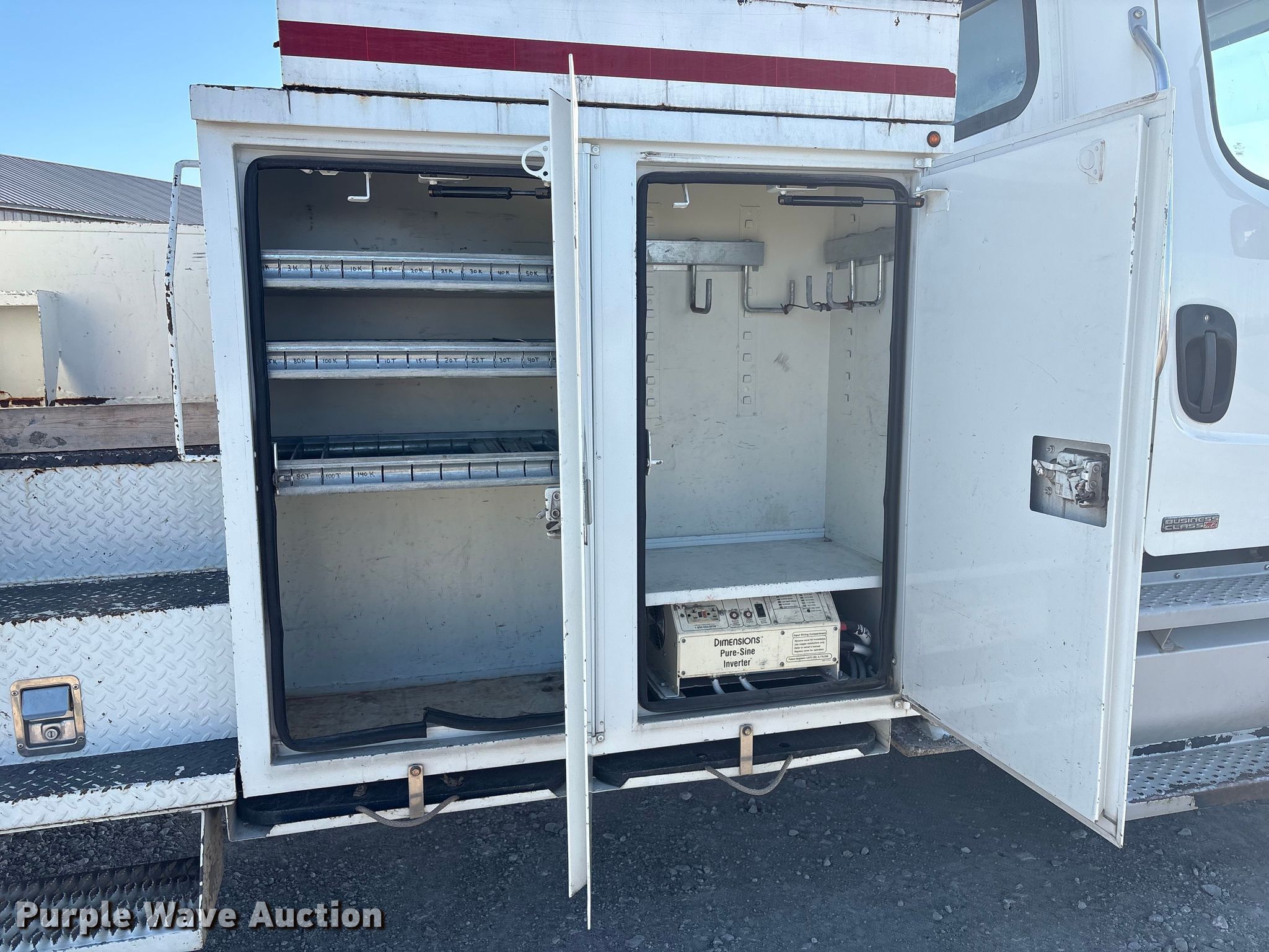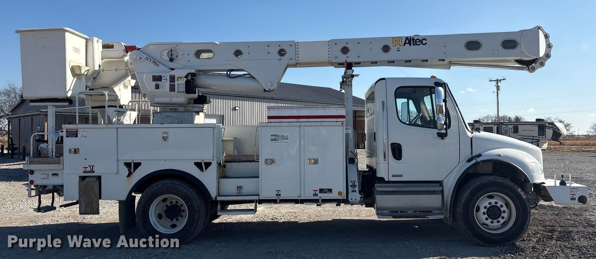 Purple Wave is selling a used Bucket Truck in Oklahoma. This item is a 2011 Freightliner Business Class M2 Bucket Truck with the following: Miles: 58,671 on odometer, Hours: 10,103 on meter, VIN: 1FVACYDT7BDAZ7263