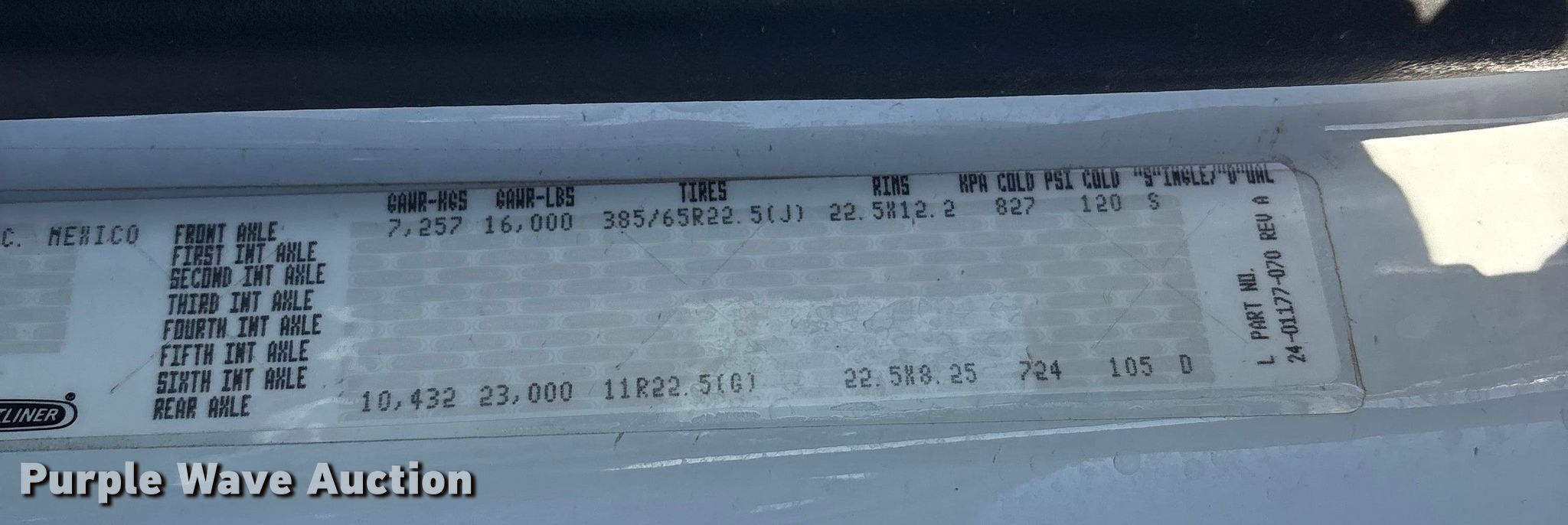 - Front: 385/65R22.5