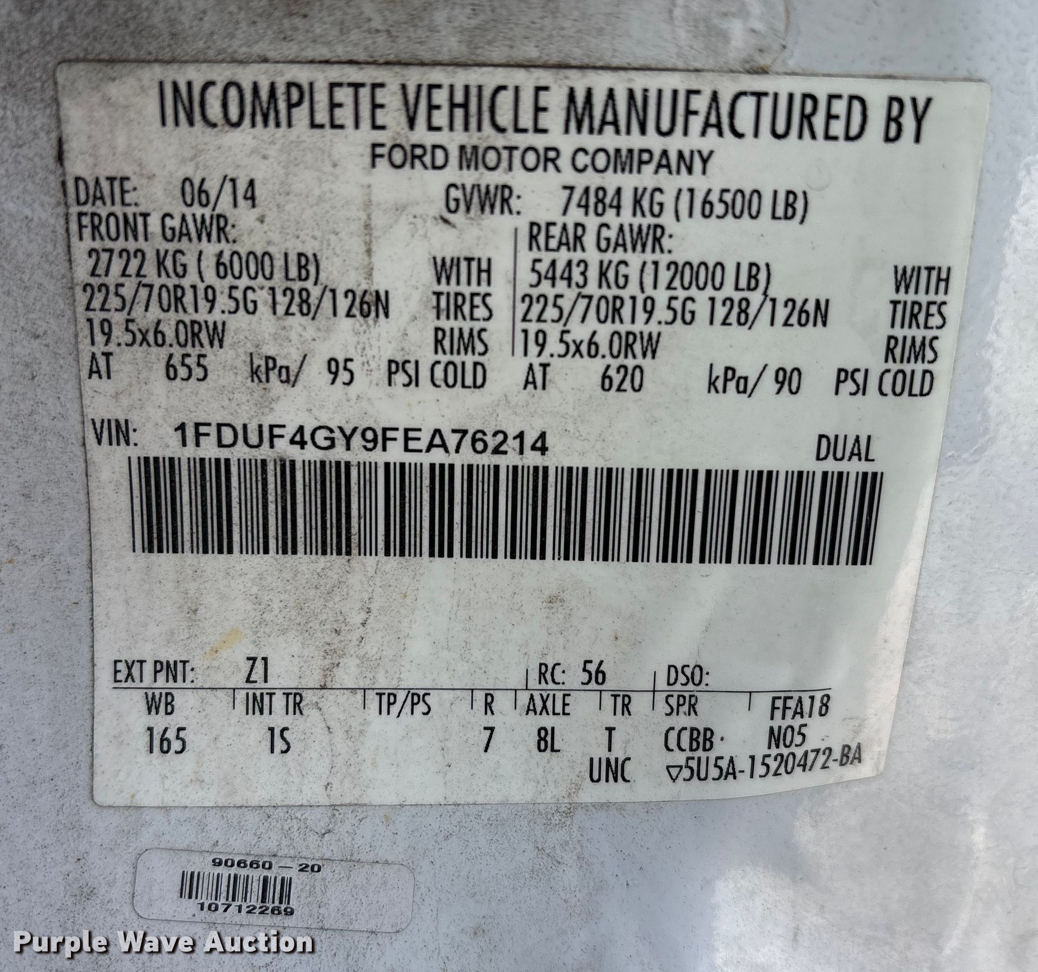 2015 Ford F450 utility / service truck. Miles: 162,690 on odometer, VIN: 1FDUF4GY9FEA76214. Engine Displacement: 6.8L, Cylinders: 10, Fuel type: Gas. Transmission Automatic. Chassis Axles: Single, Suspension: Spring, Brakes: Hydraulic, PTO, GVWR: 16,500 lbs, Wheelbase: 165". Interior AC, Heat, Cruise control. Features Bed Utility bed, Brand FX, Length: 10' 11", Width: 94", Boom Versalift, Maximum lift capacity: 350 lbs, Man basket, Boom controls Ground, Platform/ basket.. Tires Size: 225/70R19.5. Notes Jump start required during on-site data collection, Fuel leak, Non-operational crane, Possible hydraulic pump issue. Ohio title. Title distribution may be delayed up to 30 days from verification of funds. Brightspeed. Cortland, OH 44410
