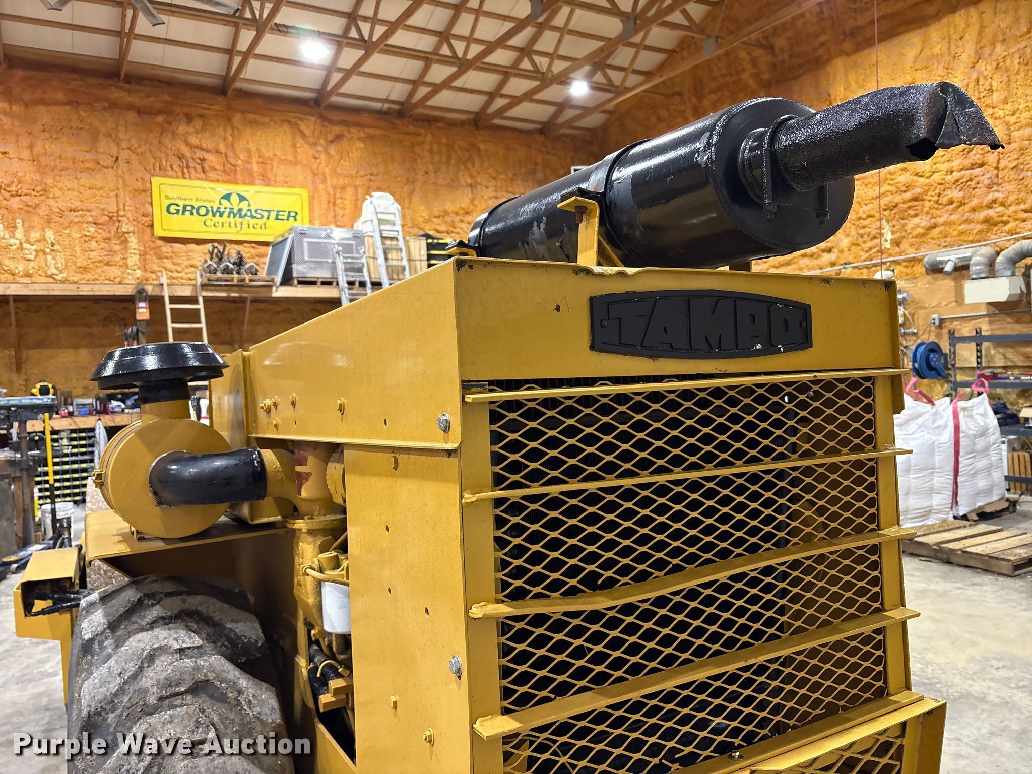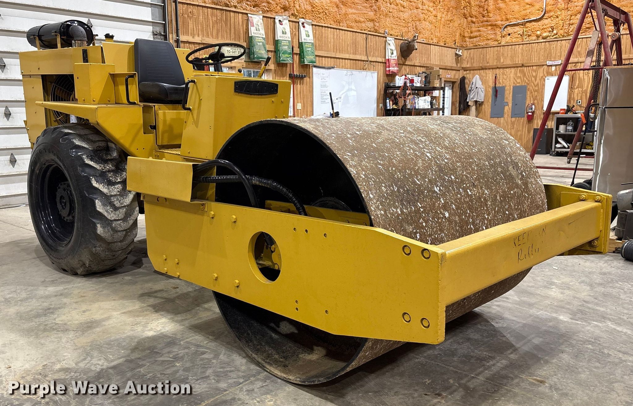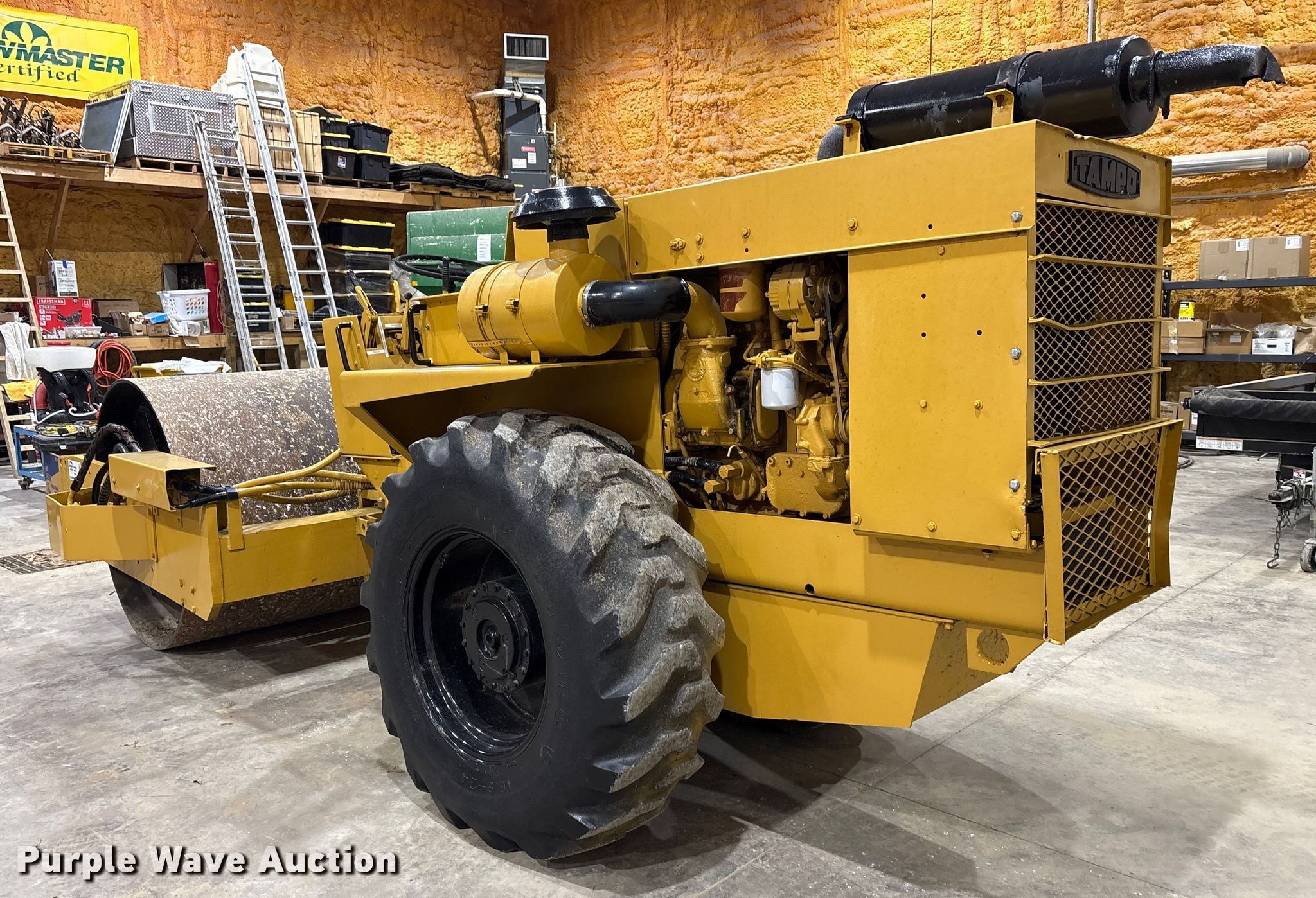 Tampo RS16D single drum vibratory roller. Hours: Unknown, Serial: 1031176A. Engine Detroit Diesel, Fuel type: Diesel. Transmission Hydrostatic. Features Drum Drum type: Smooth, Vibratory system: Single, Width: 60", Diameter: 48", Drum scrapers. Tires Size: 16.9-24, Steel wheels. Haymarket By Ashbourne Farms. La Grange, KY 40031