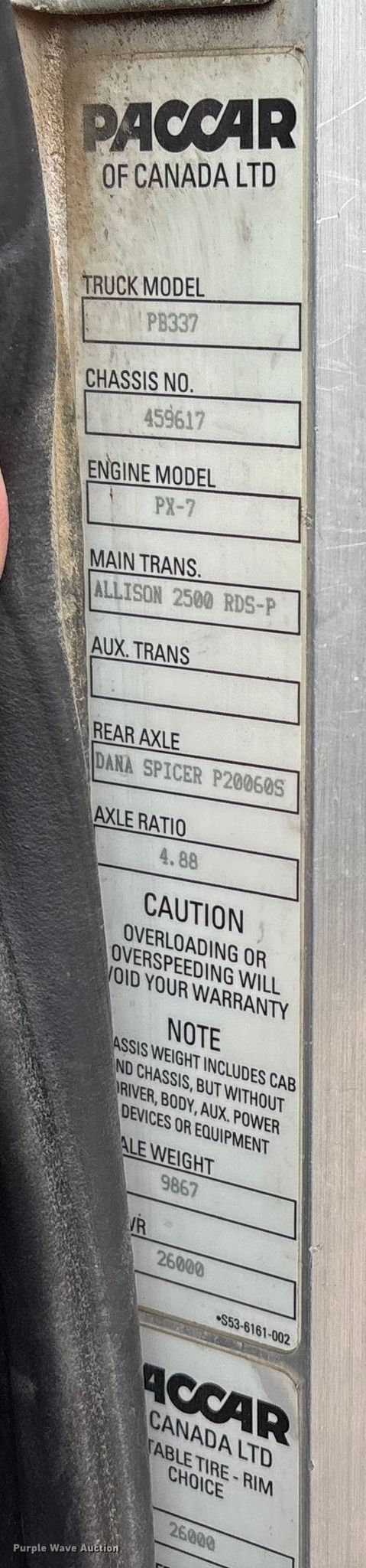 2020 Peterbilt 337 Flat Bed. Miles: 185,288 on odometer, Hours: 10,339 on meter, VIN: 2NP2HM6X3LM459617. Engine Paccar PX-7, Serial: 74443083, Displacement: 6.7, Cylinders: 6, Fuel type: Diesel, HP: 260. Transmission Allison 2500 RDS-P, Automatic. Chassis Axles: Single, Suspension: Spring, Brakes: Air, PTO, GVWR: 26,000 lbs, Wheelbase: 220". Interior AC, Heat, Power windows, Cruise control. Features Bed Dump flatbed, Cadet, Length: 20', Width: 98", Ram: Dual. Tires Size: 11R 22.5, Front: 295/75 R22.5, Rear: 11R 22.5. Notes Dash warning indicator: Check engine, Windshield chipped or cracked. Oklahoma title. Title distribution may be delayed up to 14 days from verification of funds. Mill Creek lumber & Supply. Tulsa, OK 74145
