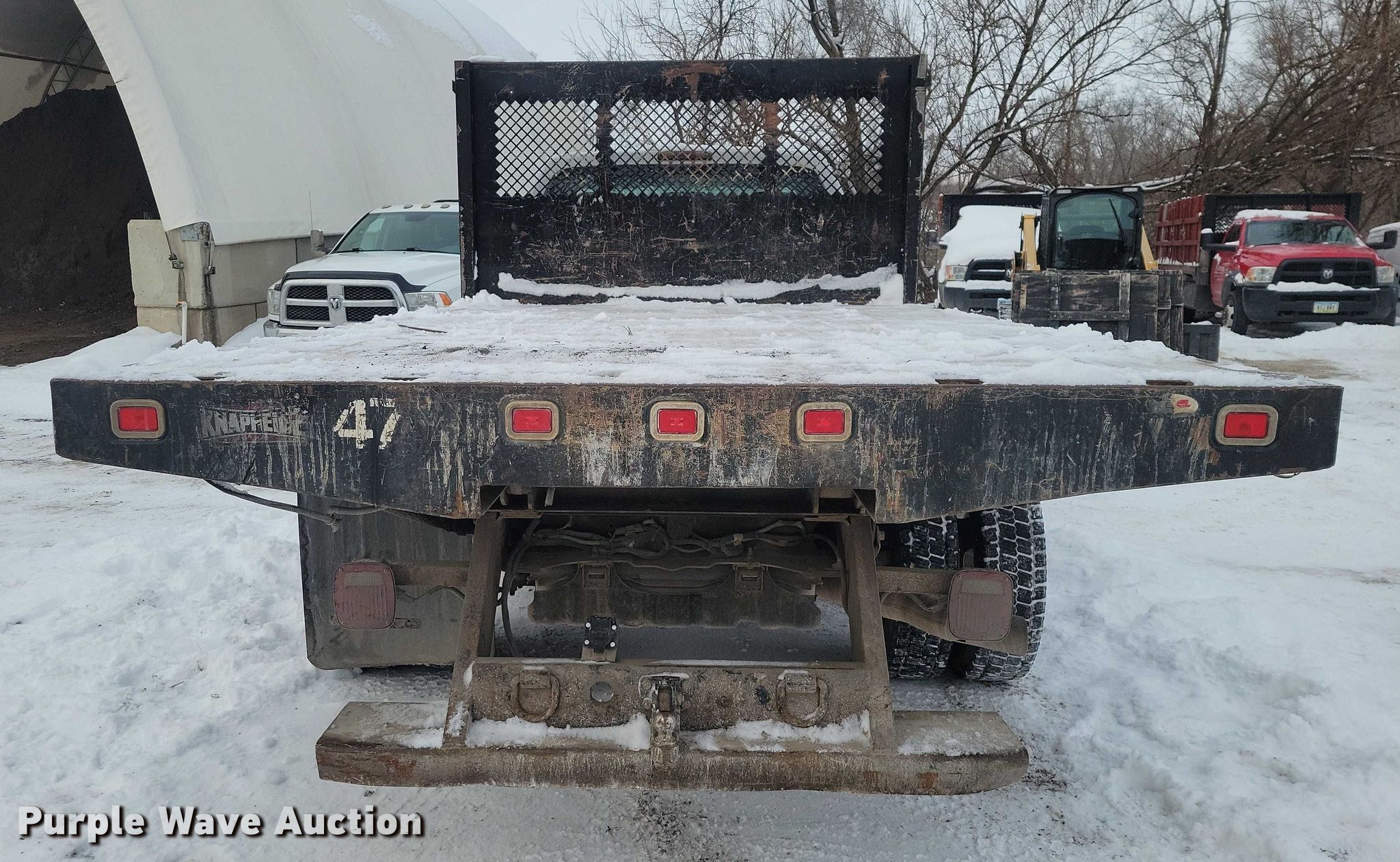 2011 Ford F450 flatbed pickup truck. VIN: 1FDUF4HT4BEC88340. Engine Displacement: 6.7L, Cylinders: 8, Fuel type: Diesel. Transmission Automatic. Chassis Four wheel drive, Axles: Single, Suspension: Spring, Brakes: Hydraulic, GVWR: 16,500 lbs, Wheelbase: 165". Interior AC, Heat, Heated mirrors, Power windows, Power locks, Cruise control, Auxiliary controls, Brake controller. Features Bed Dump flatbed, Knapheide, Length: 12' 3", Width: 96", Ram: Single. Tires Size: 225/70R19.5. Notes Engine issues, needs rebuilt , Non-operational unit. Iowa title. Title distribution may be delayed up to 14 days from verification of funds. Country Landscapes, Inc.. Ames, IA 50010