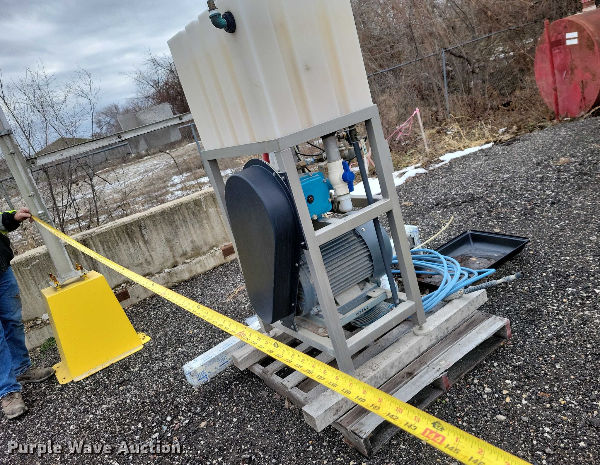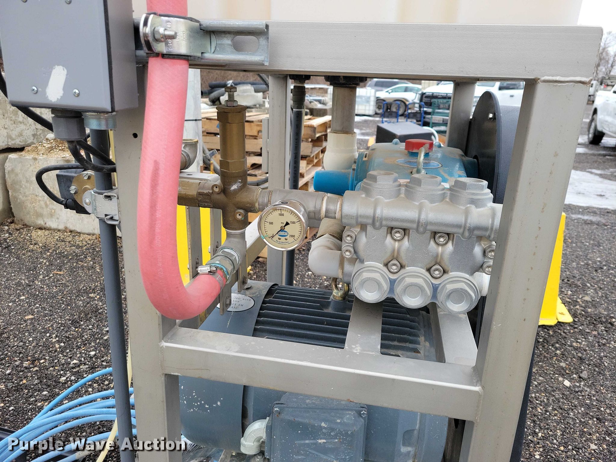 Purple Wave is selling a used Tools in Iowa. This item is a Shumaker Industries Load and Go truck wash system with the following: Dimensions: 13' 2" x 84" x 14' 10", Tank, Pump, Cat Pumps 3545, Electric motor, WorldWide Electric Corp., HP: 30, Control panel