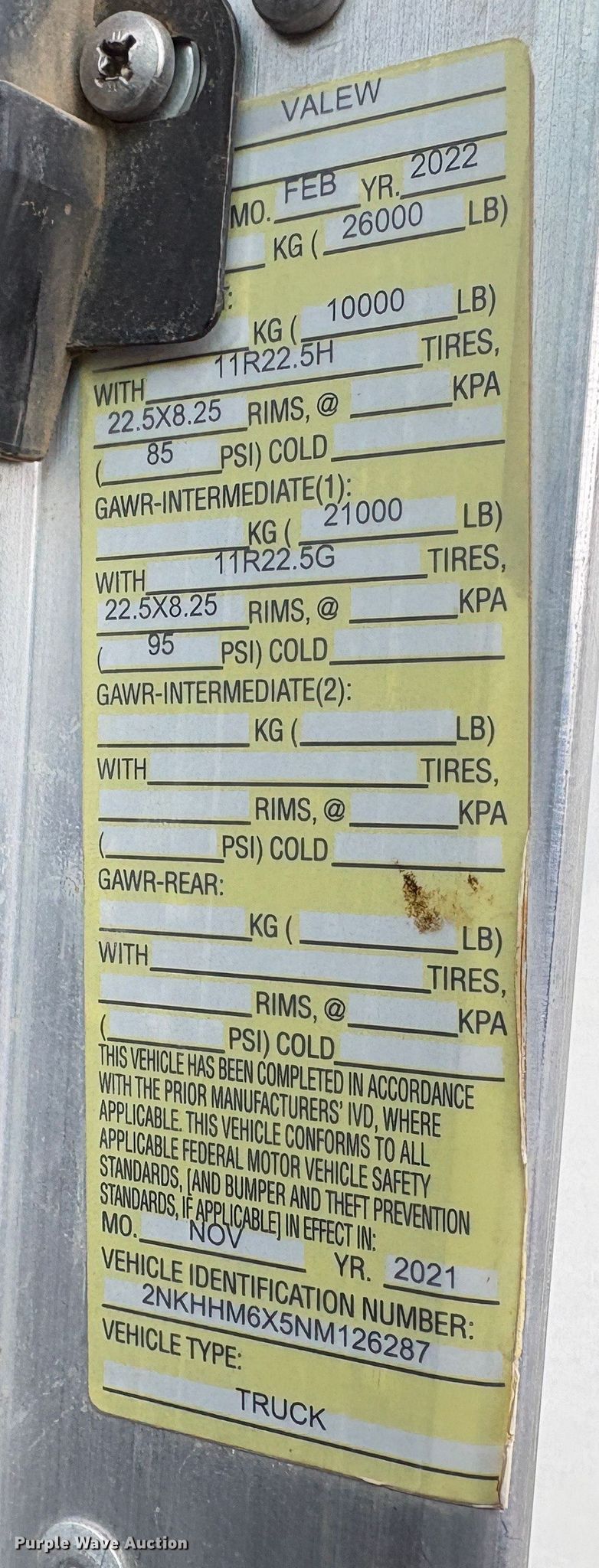 - VIN: 2NKHHM6X5NM126287