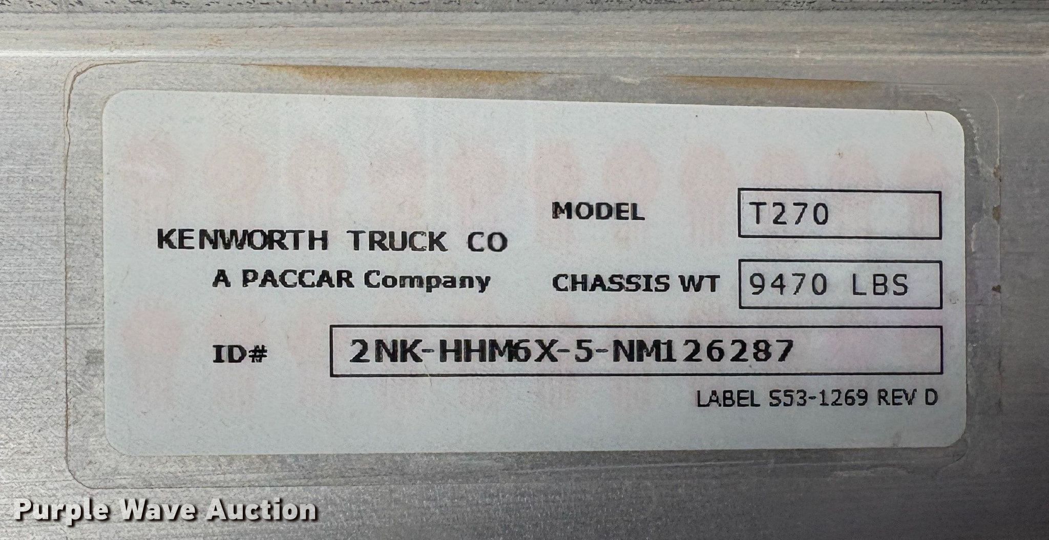 2022 Kenworth T270 water truck. Miles: 4,969 on odometer, Hours: 1,140 on meter, VIN: 2NKHHM6X5NM126287, Unit #: 66938525. Engine Paccar B6.7 200, Displacement: 6.7L, Cylinders: 6, Fuel type: Diesel, HP: 200. Transmission Automatic. Chassis Axles: Single, Suspension: Spring, Brakes: Air, PTO, GVWR: 26,000 lbs. Interior AC, Heat, Power locks, Cruise control. Features Bed Tank bed, Length: 13' 4", Width: 8' 7", Capacity: 4,000 gallons, Spray bar: Front, Rear, Side discharge, Hose reel, Top fill. Tires Size: 11R22.5. Notes Roll over damage, Dash warning indicator: Check engine, Windshield chipped or cracked, Jump start required during on-site data collection. Buyer responsible for all aspects of state emissions compliance. Insurance salvage, stored at a secured facility. Please review REQUIRED REMOVAL INSTRUCTIONS. Titles will be distributed after confirmation of payment and removal. California salvage title. Title distribution may be delayed up to 30 days from verification of funds. Insurance Salvage. Anderson, CA 96007