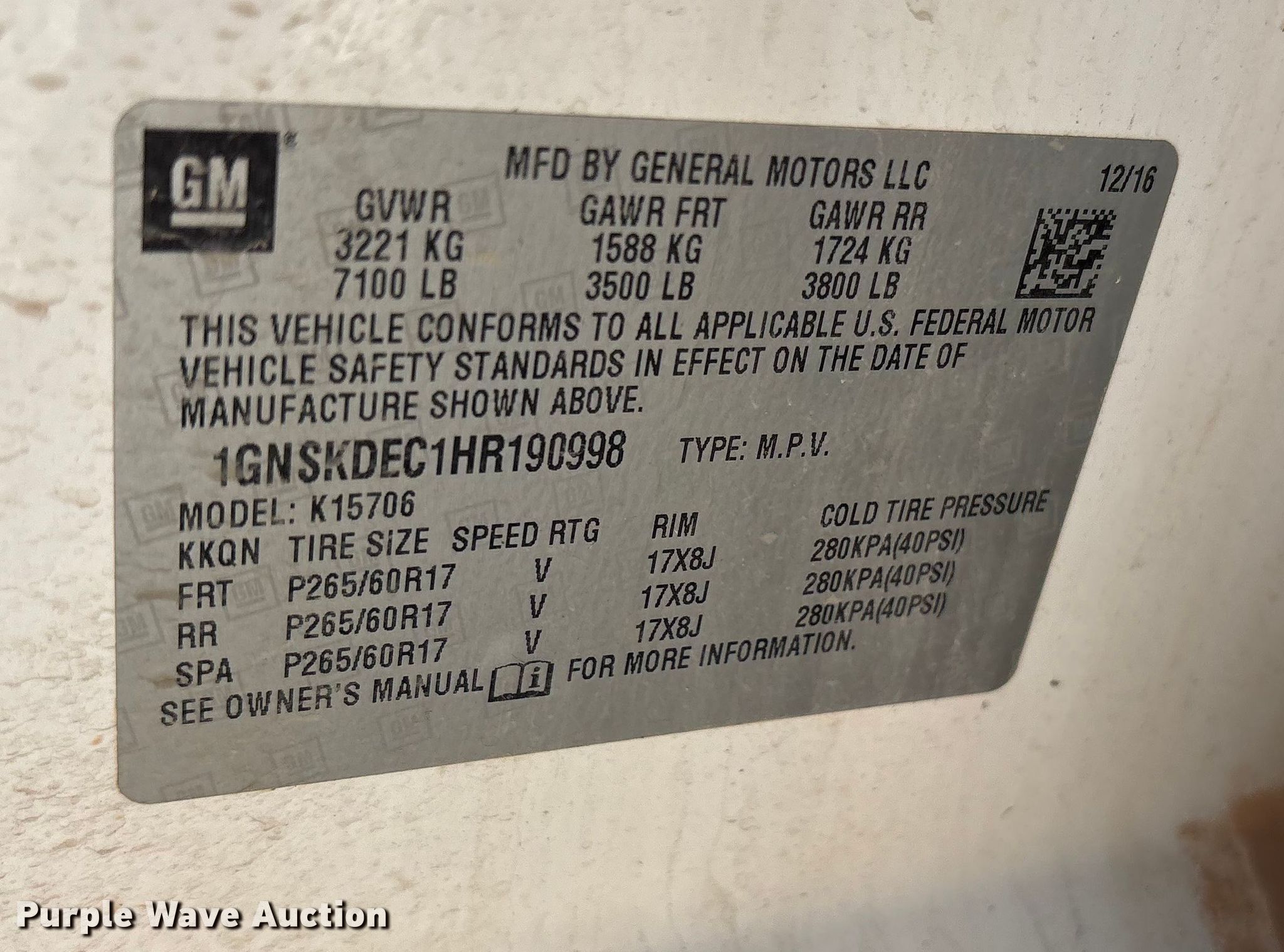 Purple Wave is selling a used Passenger Vehicle in Texas. This item is a 2017 Chevrolet Tahoe Police SUV with the following: Miles: 210,192 on odometer, VIN: 1GNSKDEC1HR190998, Unit #: 316