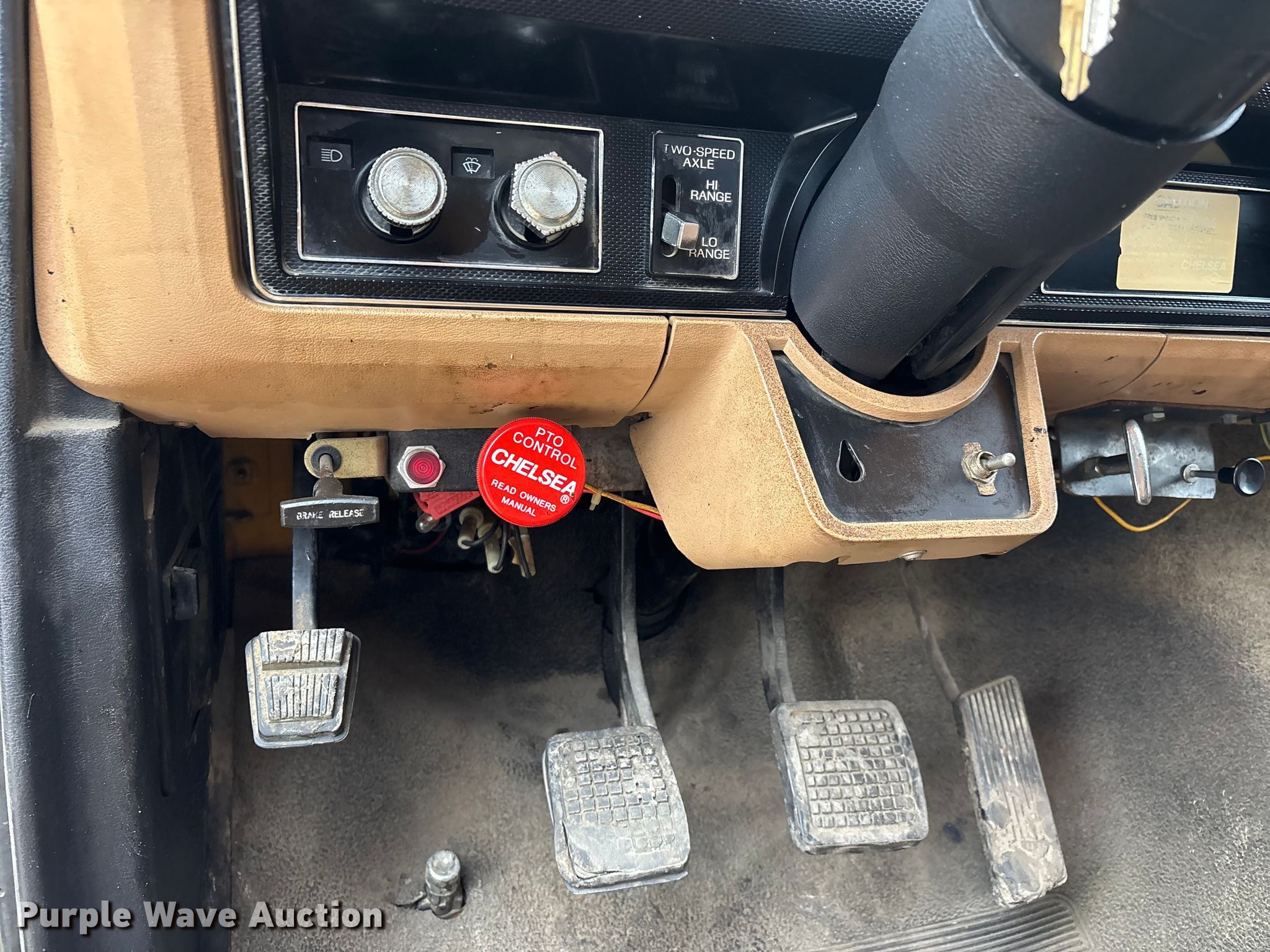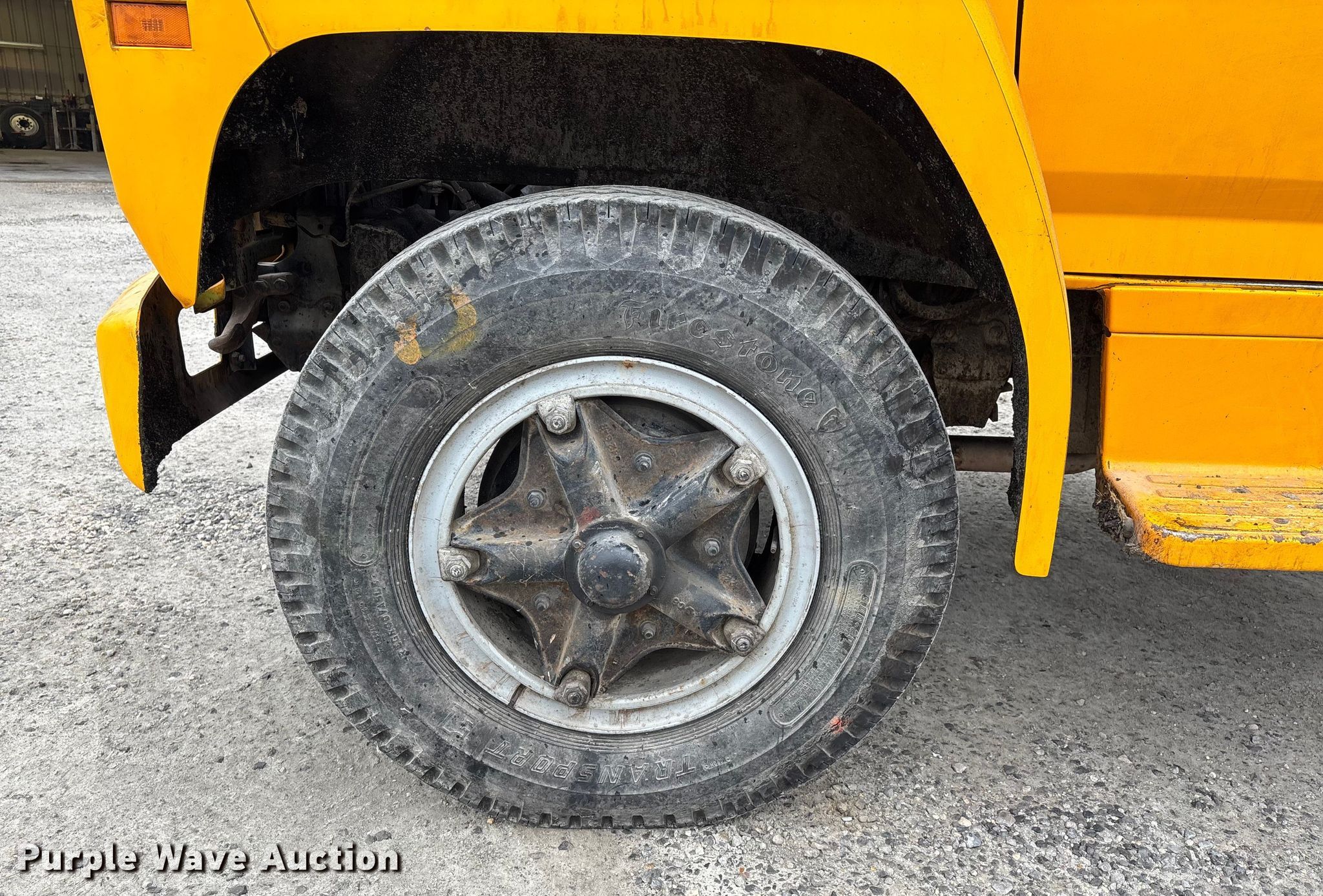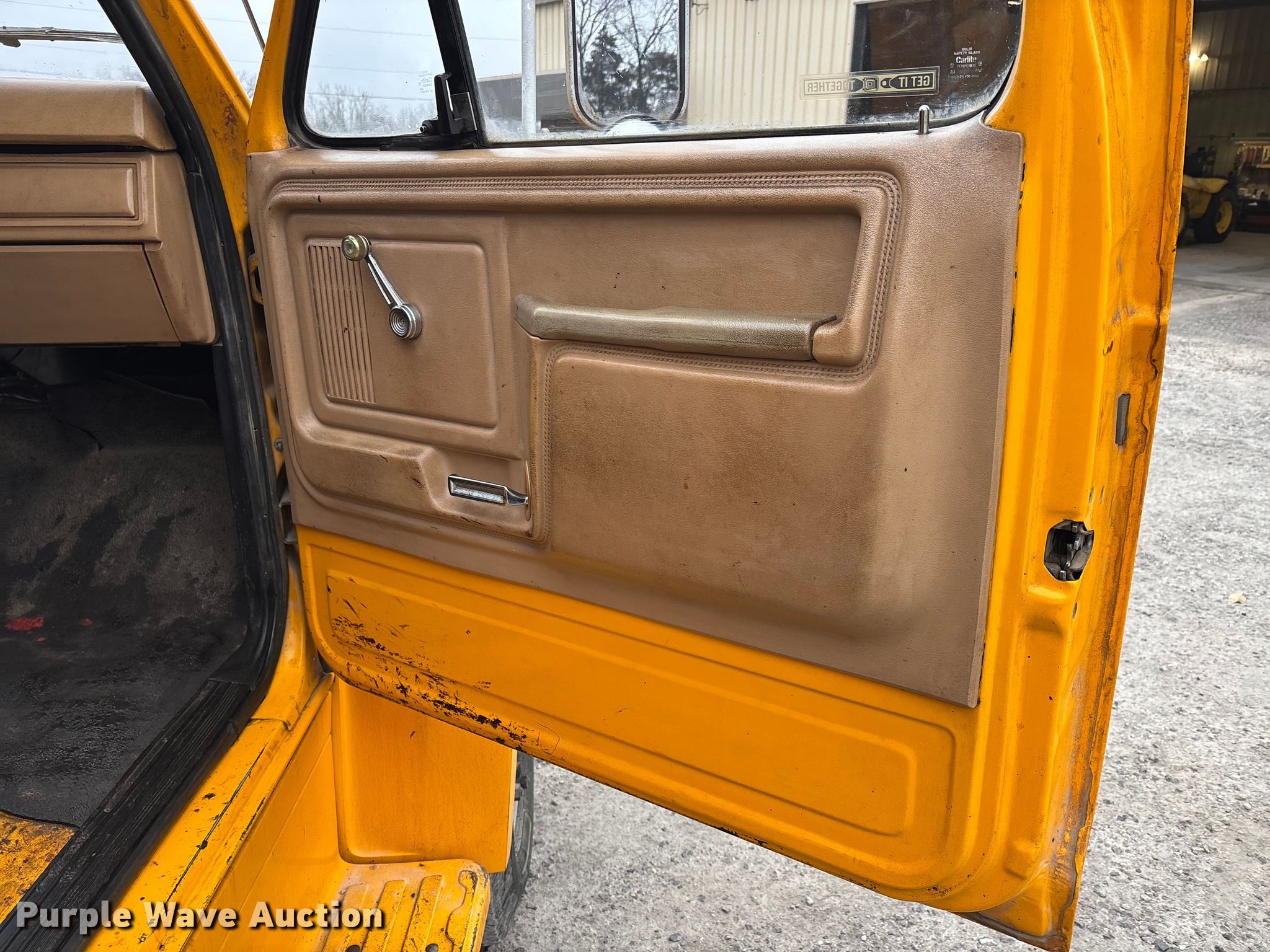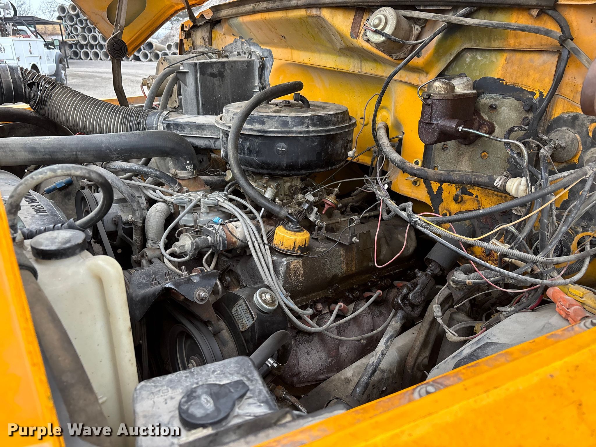 1983 Ford F700 oil distributor truck. Miles: 13,525 on odometer, Hours: 161 on meter. Engine Model: 370, Cylinders: 8, Fuel type: Gas. Transmission Manual, Speed: 4, plus 2. Chassis Axles: Single, Suspension: Spring, Brakes: Hydraulic, PTO, GVWR: 27,500 lbs. Interior Heat. Features Bed Tank bed, Rosco Maximizer, Length: 10' 4", Width: 7', Capacity: 1,500 gallons, In-cab controls, Spray wand, Spray boom Width: 12', Folding, Nozzles: 36.. Tires Size: 9.00-20. Missouri title. Title distribution may be delayed up to 14 days from verification of funds. Cape Special Road District. Cape Girardeau, MO 63701