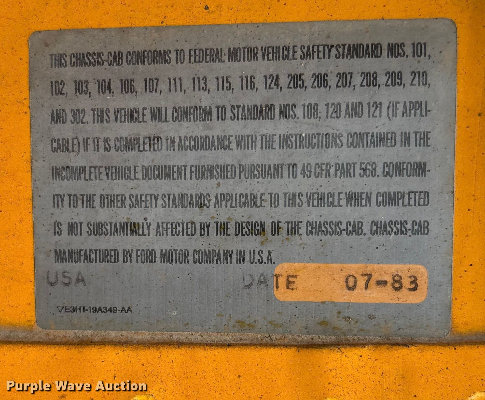 Take a look at this used 1983 Ford F700 oil distributor truck being sold on February 3rd, 2026 in the Tuesday February 03 Government Auction made by Ford. Take a look at all of the item information below or take a look at similar auctions for Construction Trucks.