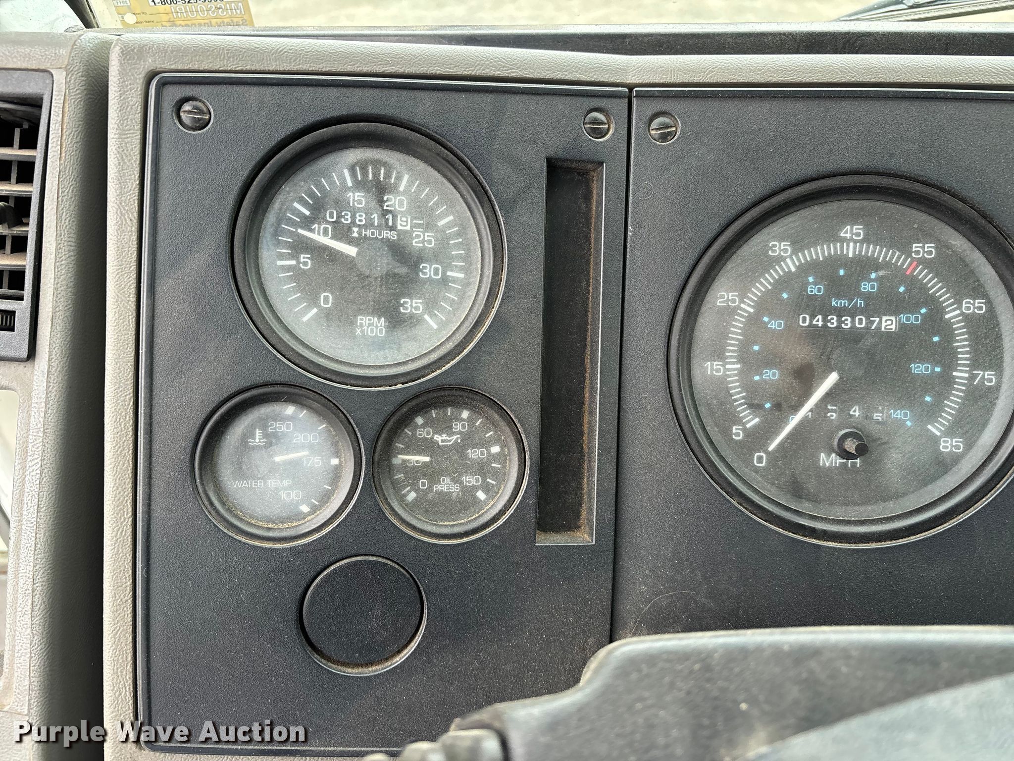 Purple Wave is selling a used Street Sweeper Truck in Missouri. This item is a Sterling/Elgin SC-8000 with the following: Miles: 43,307 on odometer, Hours: 3,812 on meter