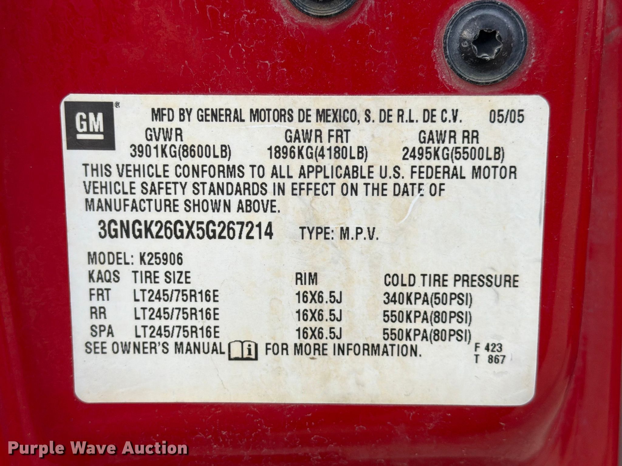 - VIN: 3GNGK26GX5G267214