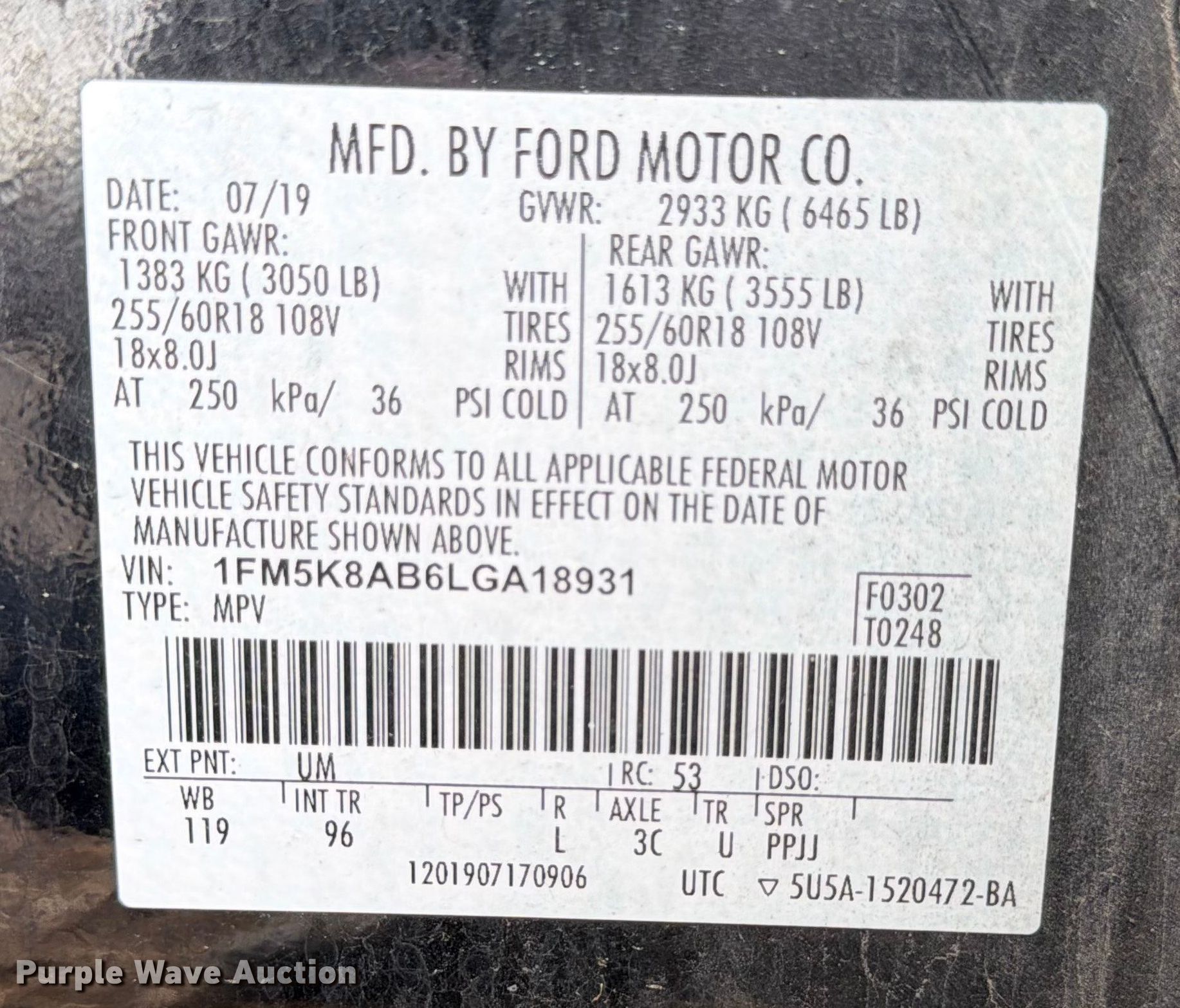 - VIN: 1FM5K8AB6LGA18931