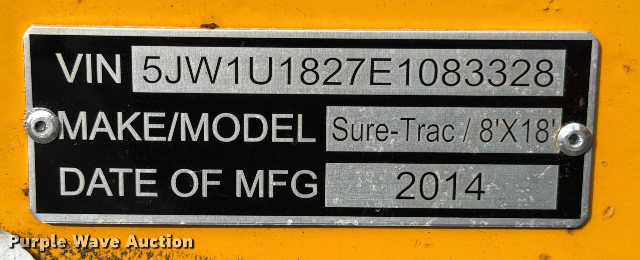 Purple Wave is selling a used Car or Utility Trailer in Kansas. This item is a 2014 Sure-Trac tilt deck utility trailer with the following: VIN: 5JW1U1827E1083328