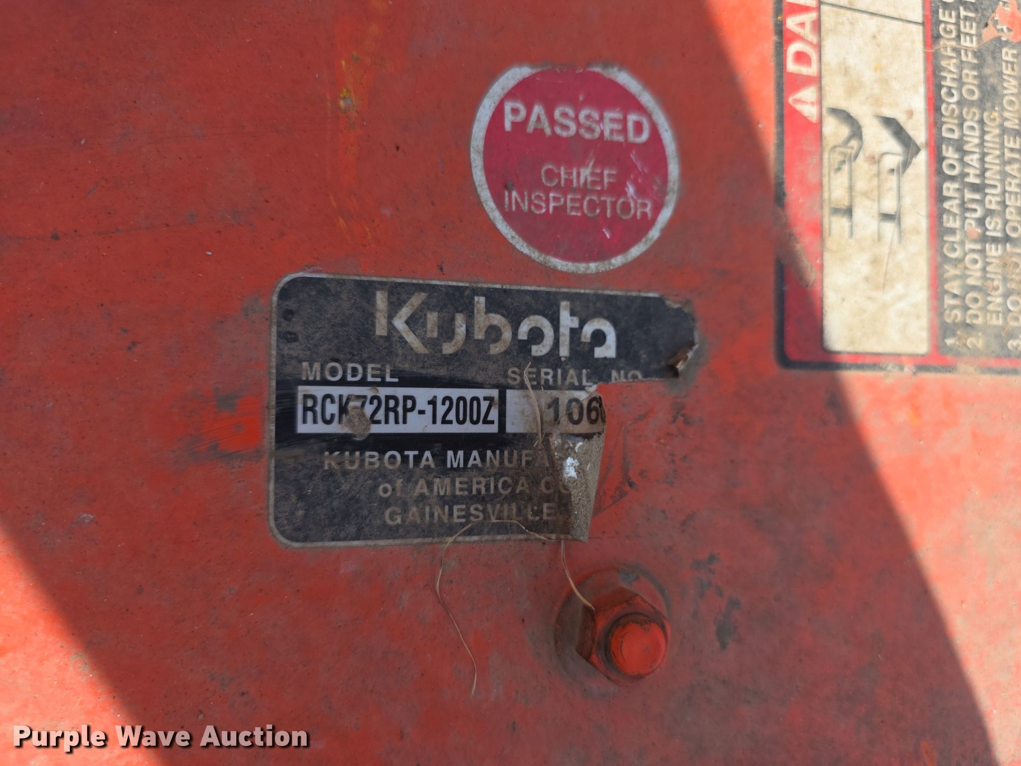 Purple Wave is selling a used Ag Equip. Other in Kansas. This item is a Kubota RCKZ2RP-1200Z belly mower with the following: Width: 72"