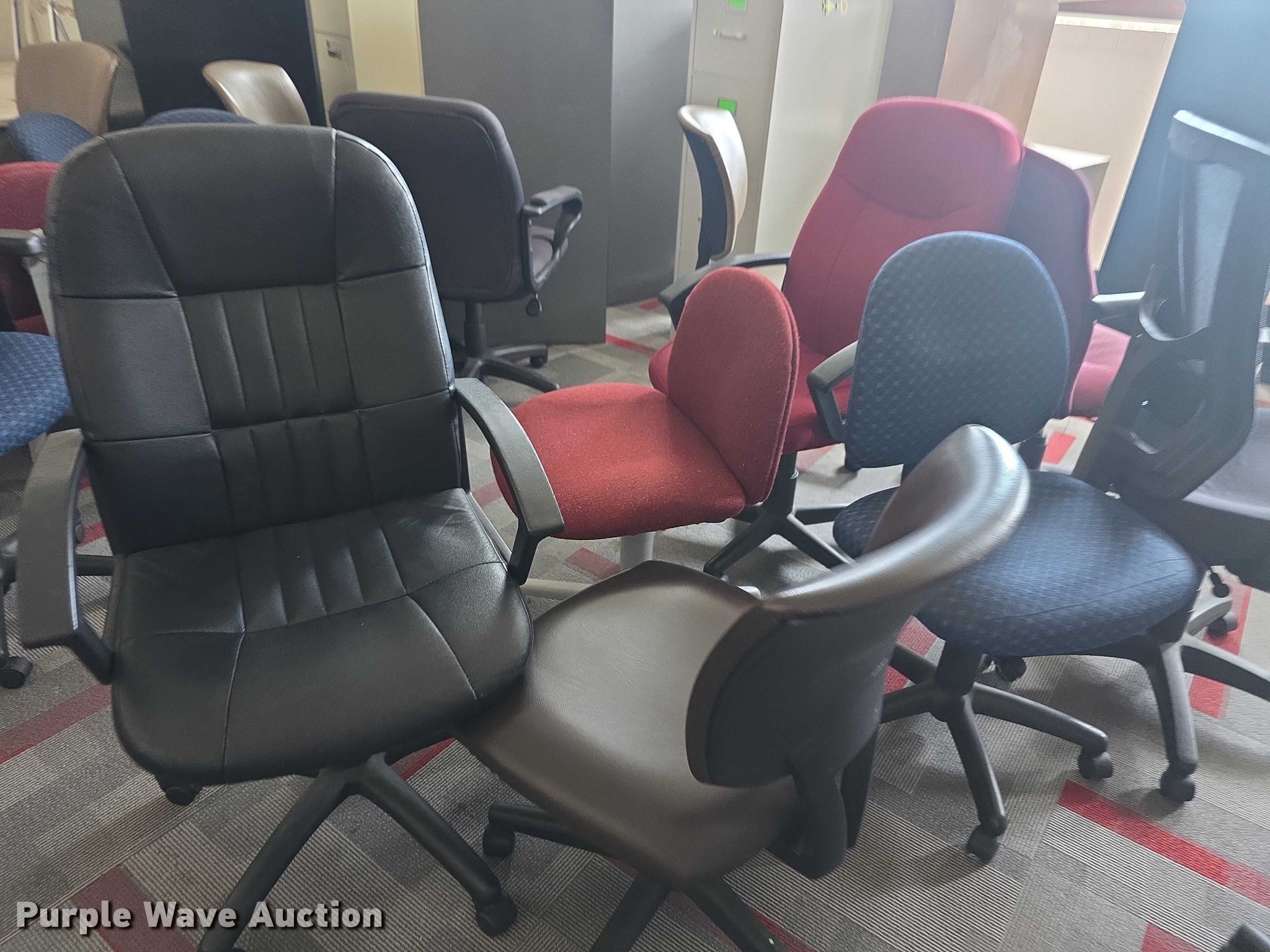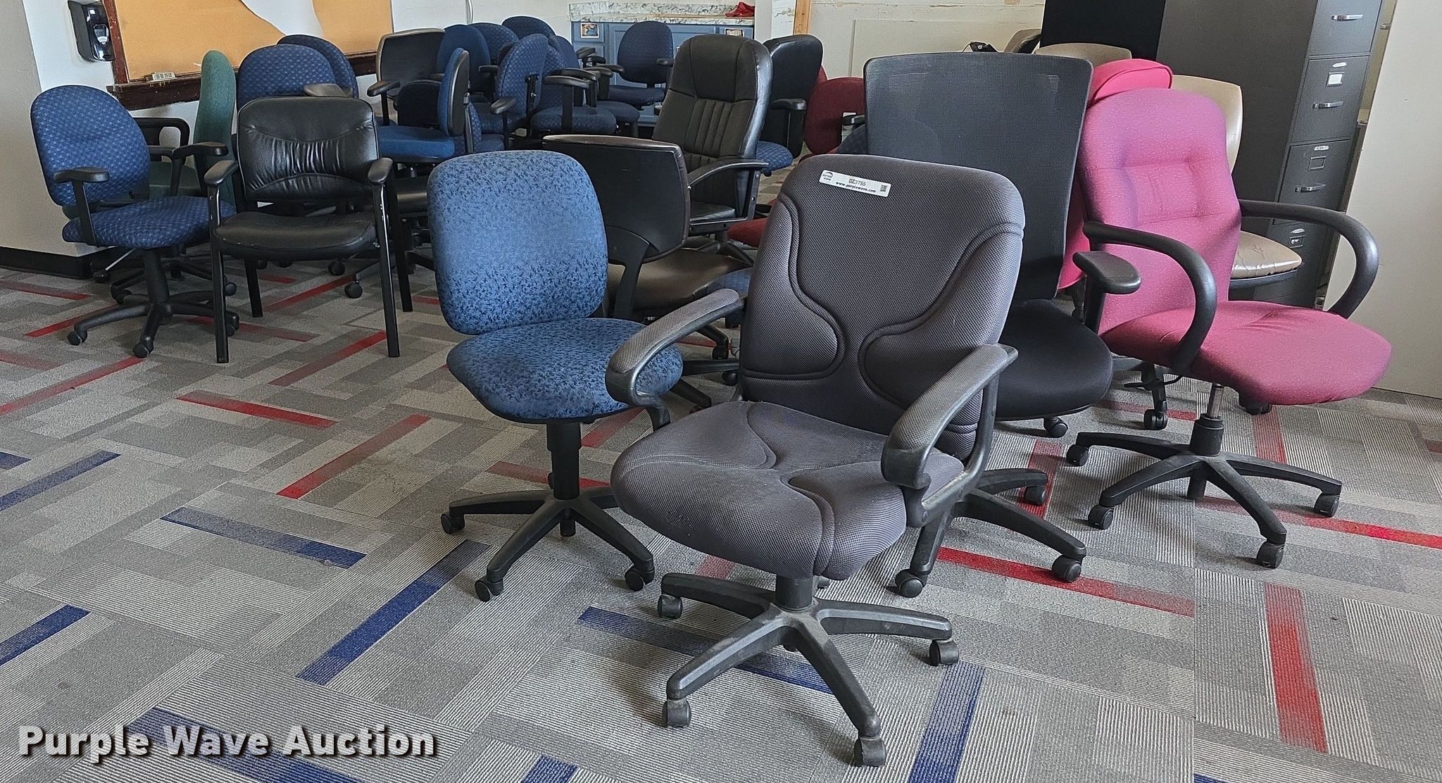 Purple Wave is selling a used Furniture in Kansas. This item is a Approximately 38 office chairs with the following: Approximately 38 office chairs. Leavenworth, KS 66048