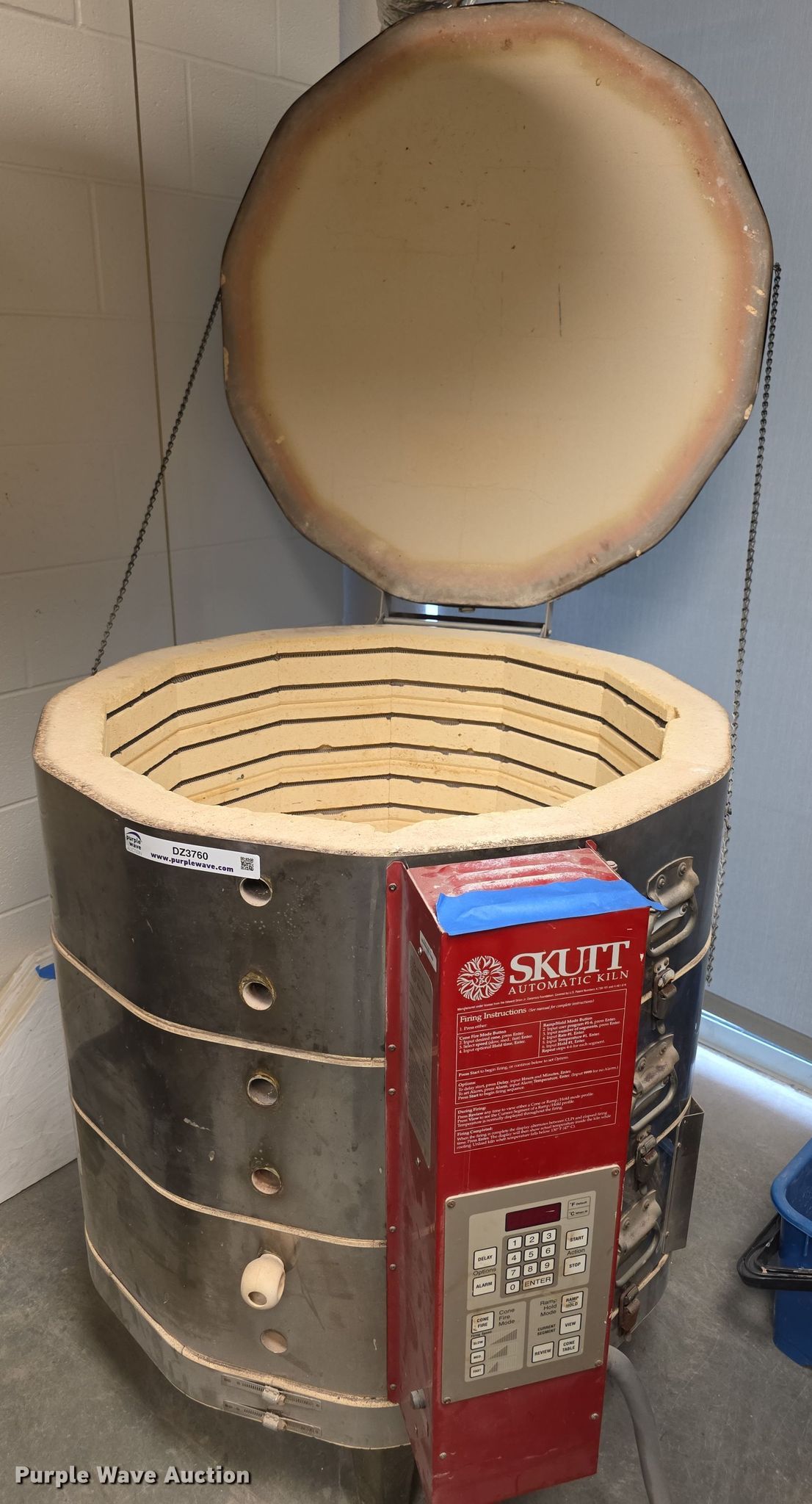 Purple Wave is selling a used Tools in Kansas. This item is a Skutt automatic km1227 kiln with the following: Serial: 004262