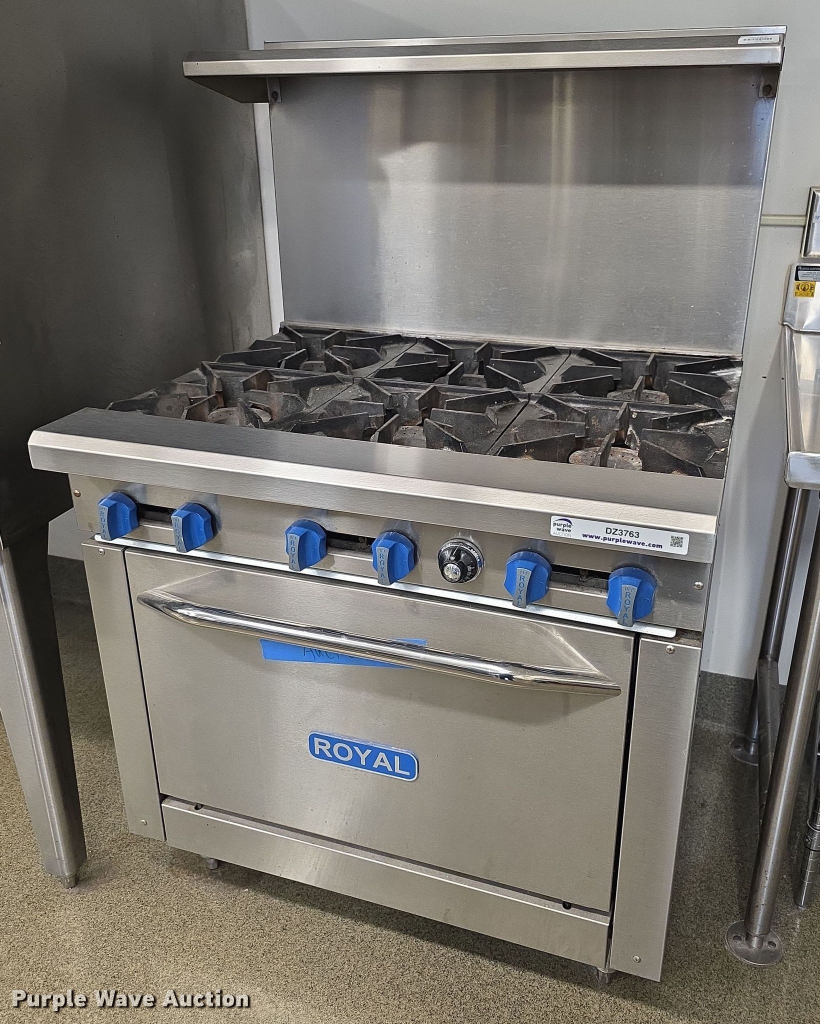 Purple Wave is selling a used Restaurant Equip. in Kansas. This item is a Royal stove with the following: Dimensions: 56" x 36" x 32"