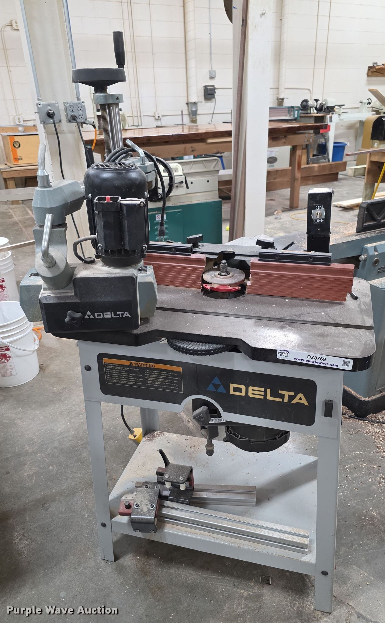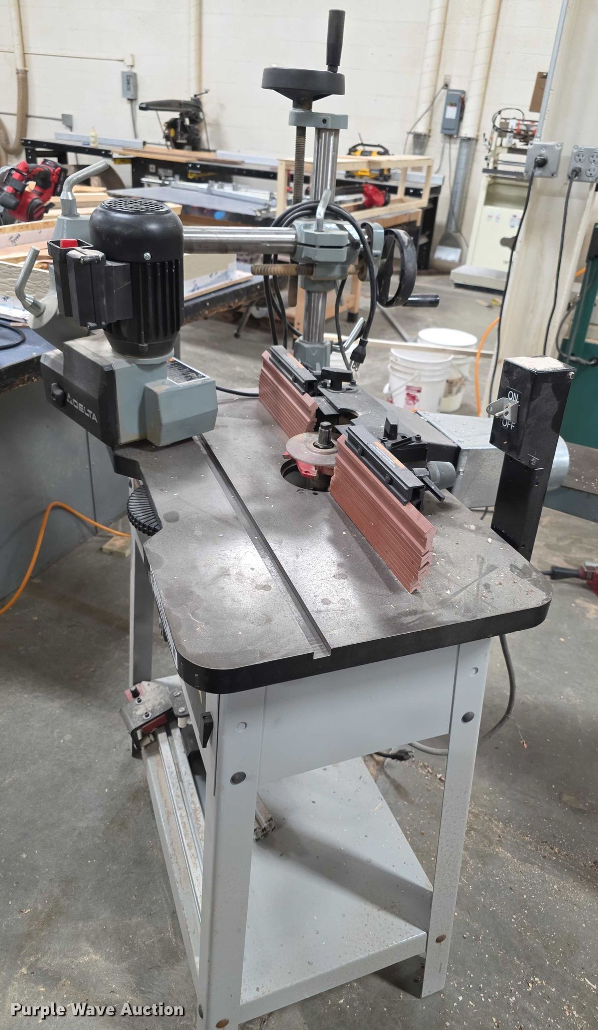 Purple Wave is selling a used Tools in Kansas. This item is a Delta router with the following: Serial: CM5030, Volts: 115, Phase: single