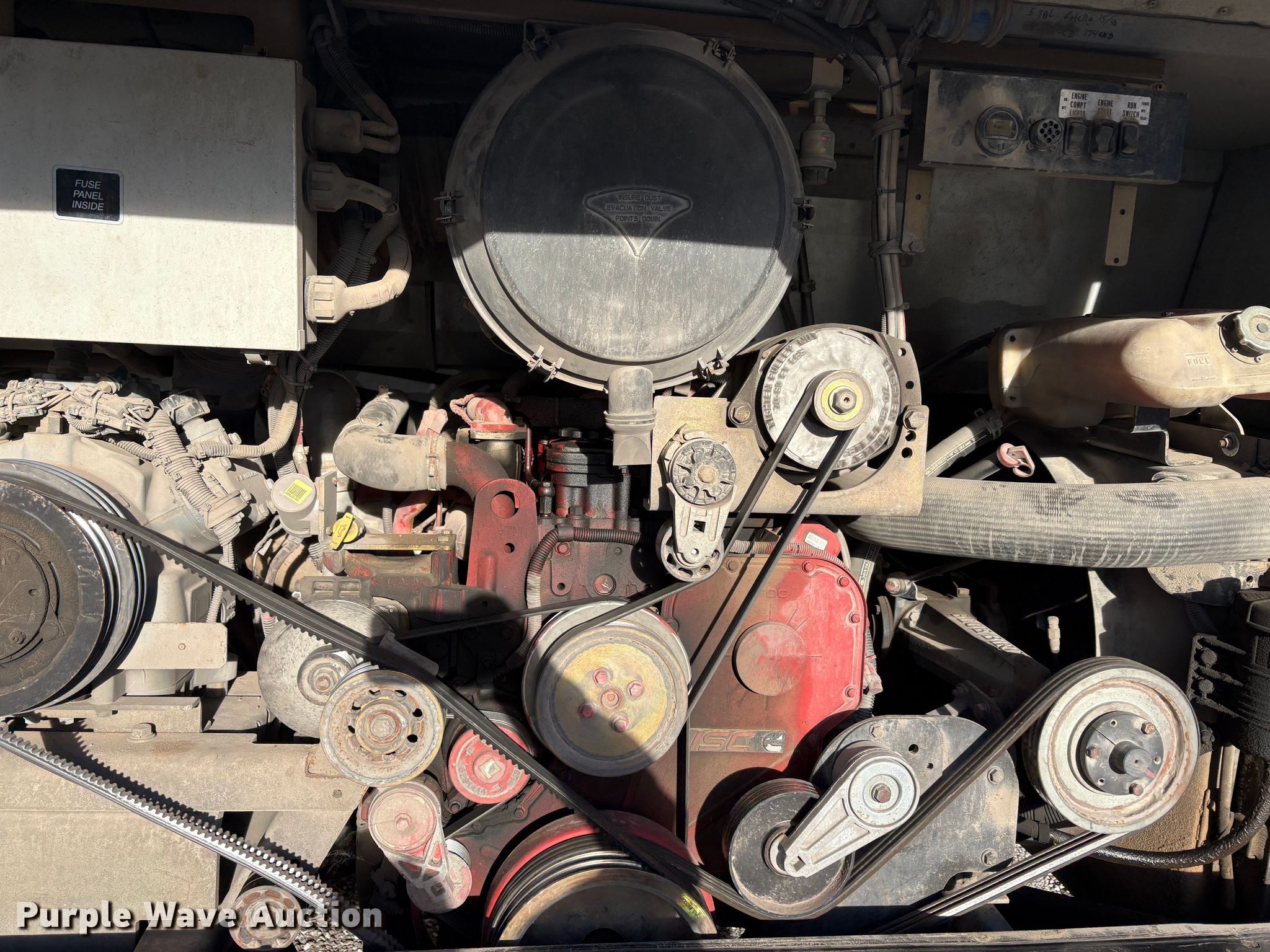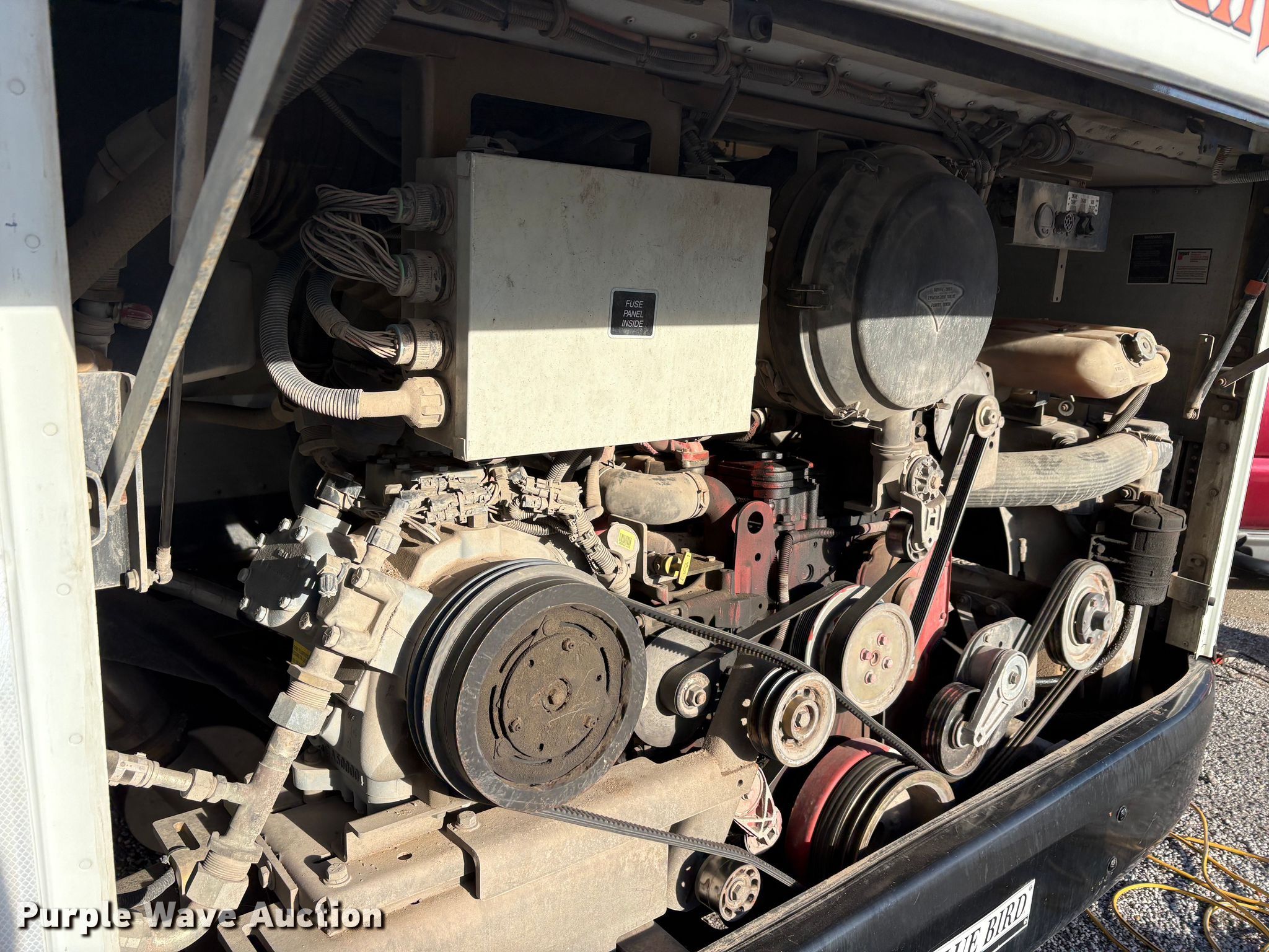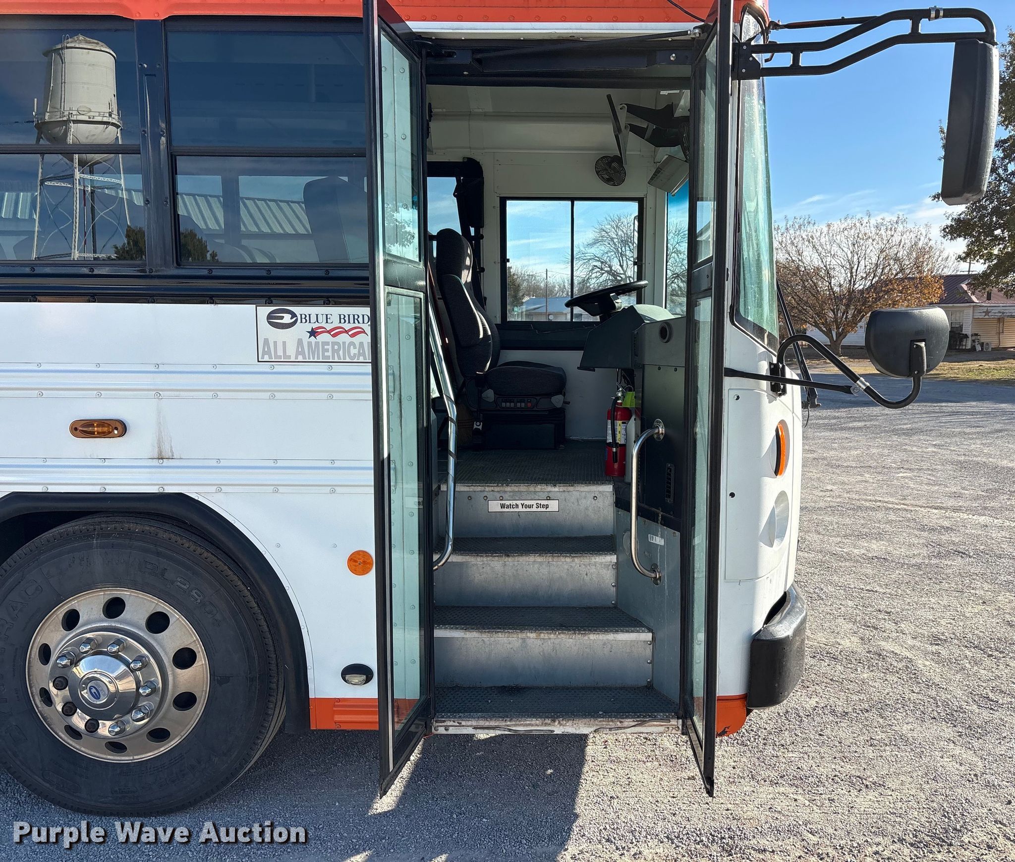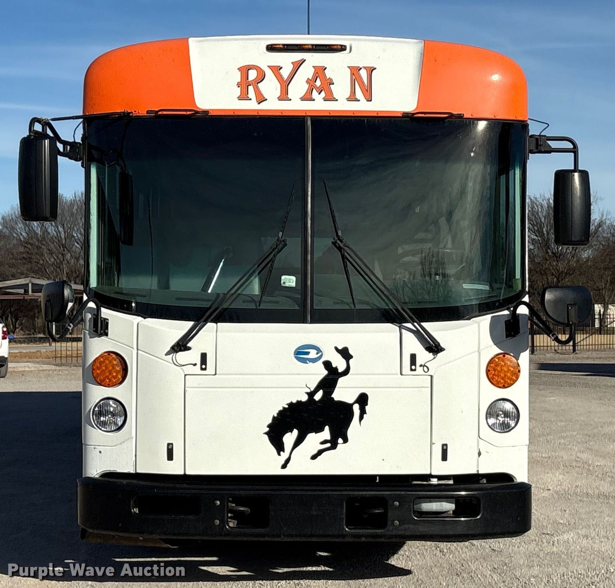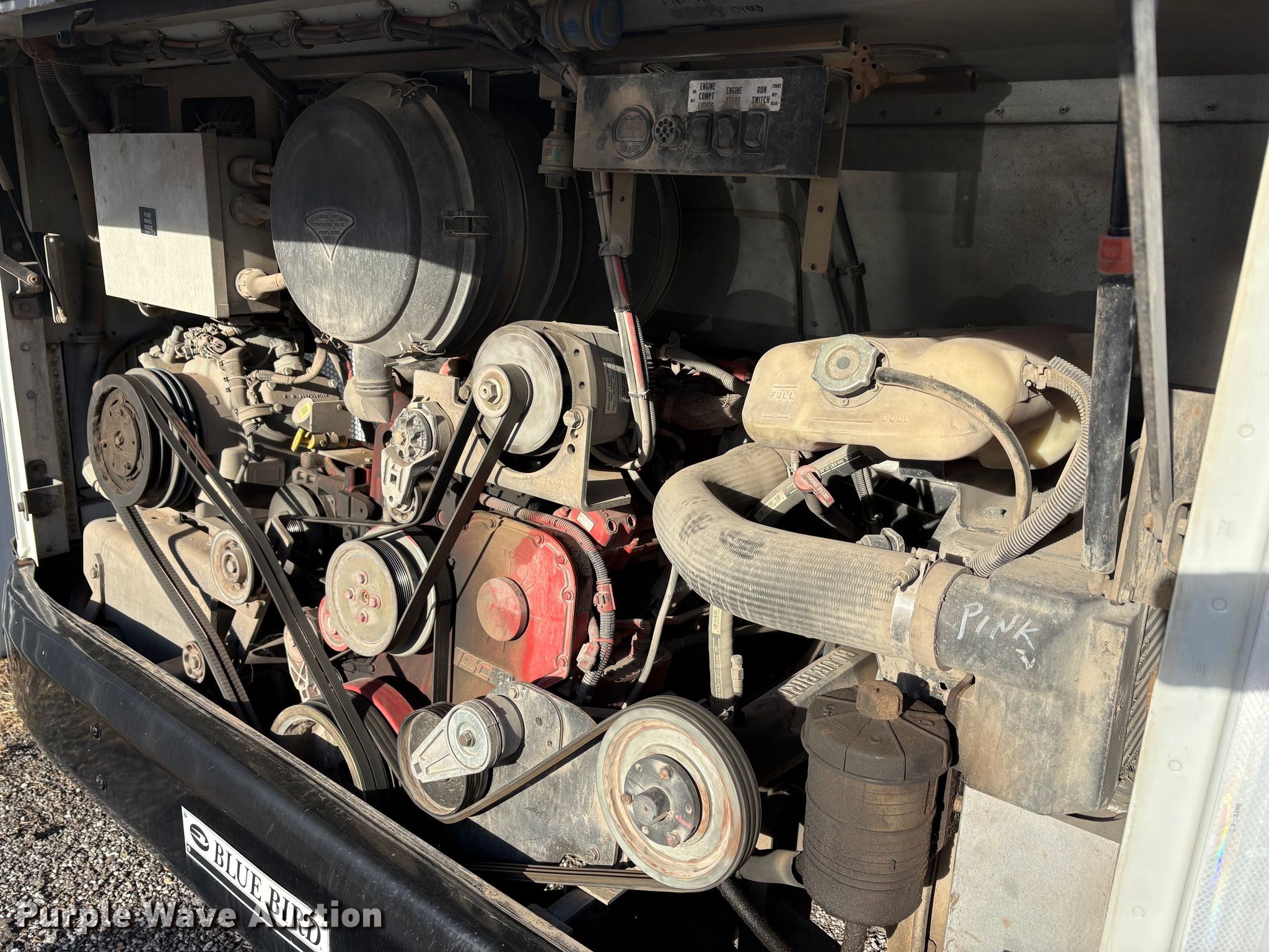 2014 Blue Bird All American school bus. Miles: 76,648 on odometer, VIN: 1BABNBXA1EF295578. Engine Cummins ISC, Displacement: 8.3L, Cylinders: 6, Fuel type: Diesel. Transmission Automatic. Chassis Axles: Single, Suspension: Air, Brakes: Air, GVWR: 36,200 lbs. Interior AC, Heat, Heated mirrors, Cruise control, Passengers: 46. Tires Size: 11R22.5, Brand: Sumitomo. Notes Passenger rear tire damaged, Windshield chipped or cracked, Jump start required during on-site data collection, Non-operational passenger front storage compartment, does not open. Oklahoma title. Seller is a government entity who will be assigning and distributing the title. Please contact the seller for distribution questions. Ryan Public Schools. Ryan, OK 73565