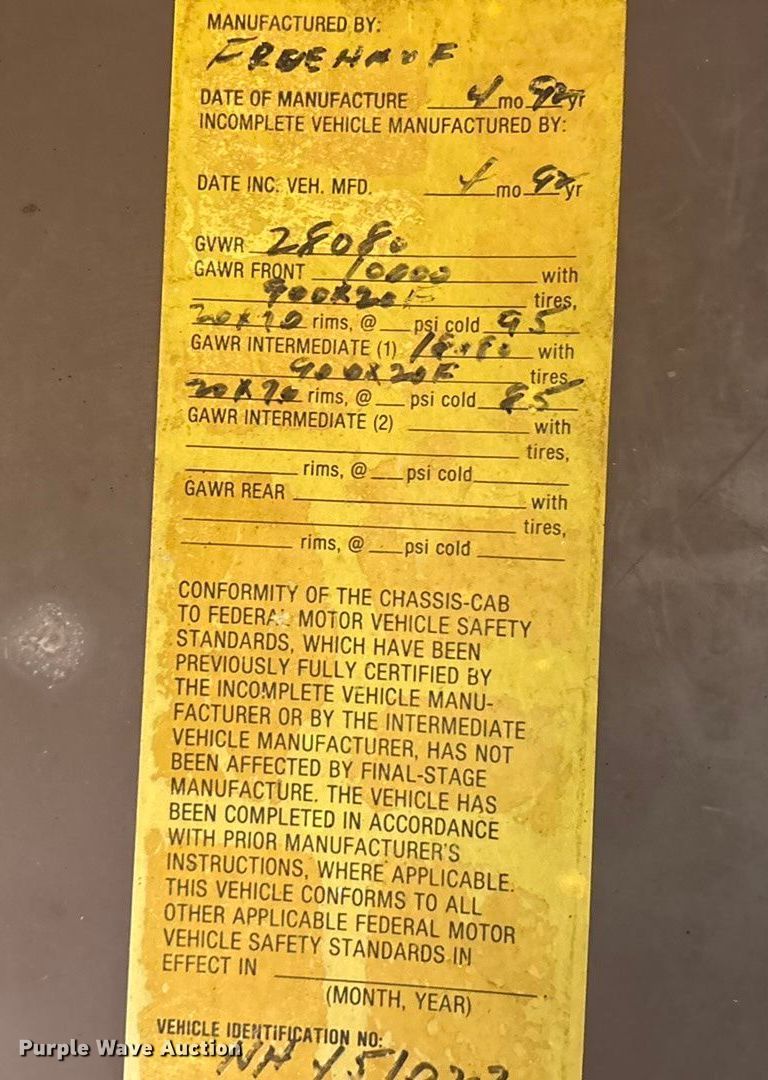 1992 International 4700 dump truck. Miles: 243,592 on odometer, VIN: 1HTSCPEN3NH451027. Engine International, Displacement: 5.9L, Cylinders: 6, Fuel type: Diesel. Transmission Manual, Speed: 5, plus 2. Chassis Axles: Single, Suspension: Spring, Brakes: Air, Front mount PTO, GVWR: 28,080 lbs FAWR: 10,000 lbs, RAWR: 18,080 lbs. Interior AC, Heat, Brake controller. Features Bed Dump bed, Length: 10', Width: 95", Side height: 26", Side board height: 13", Bed type: Steel, Ram: Single, End gate: Manual. Tires Front: 10R22.5, Rear: 11R22.5, Brand: Firestone, Kumho. Oklahoma title. Title distribution may be delayed up to 14 days from verification of funds. Latimer County, OK District 2. Tuskahoma, OK 74574