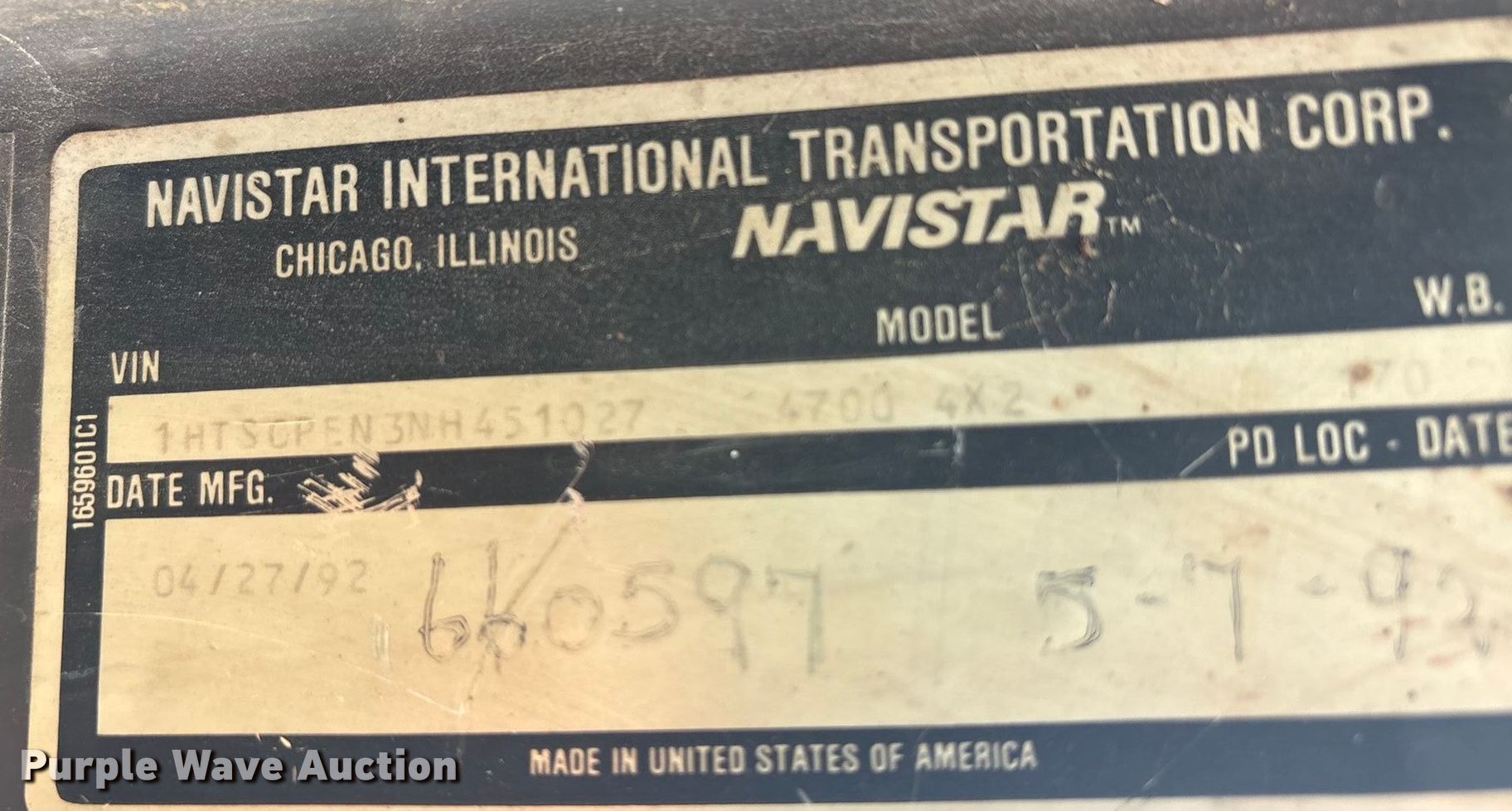 Purple Wave is selling a used Construction Dump Truck in Oklahoma. This item is a 1992 International 4700 dump truck with the following: Miles: 243,592 on odometer, VIN: 1HTSCPEN3NH451027