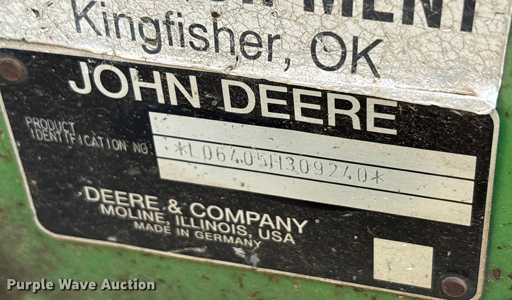 Purple Wave is selling a used Tractor in Oklahoma. This item is a John Deere 6405 tractor with the following: Hours: Unknown, Serial: L06405H309240