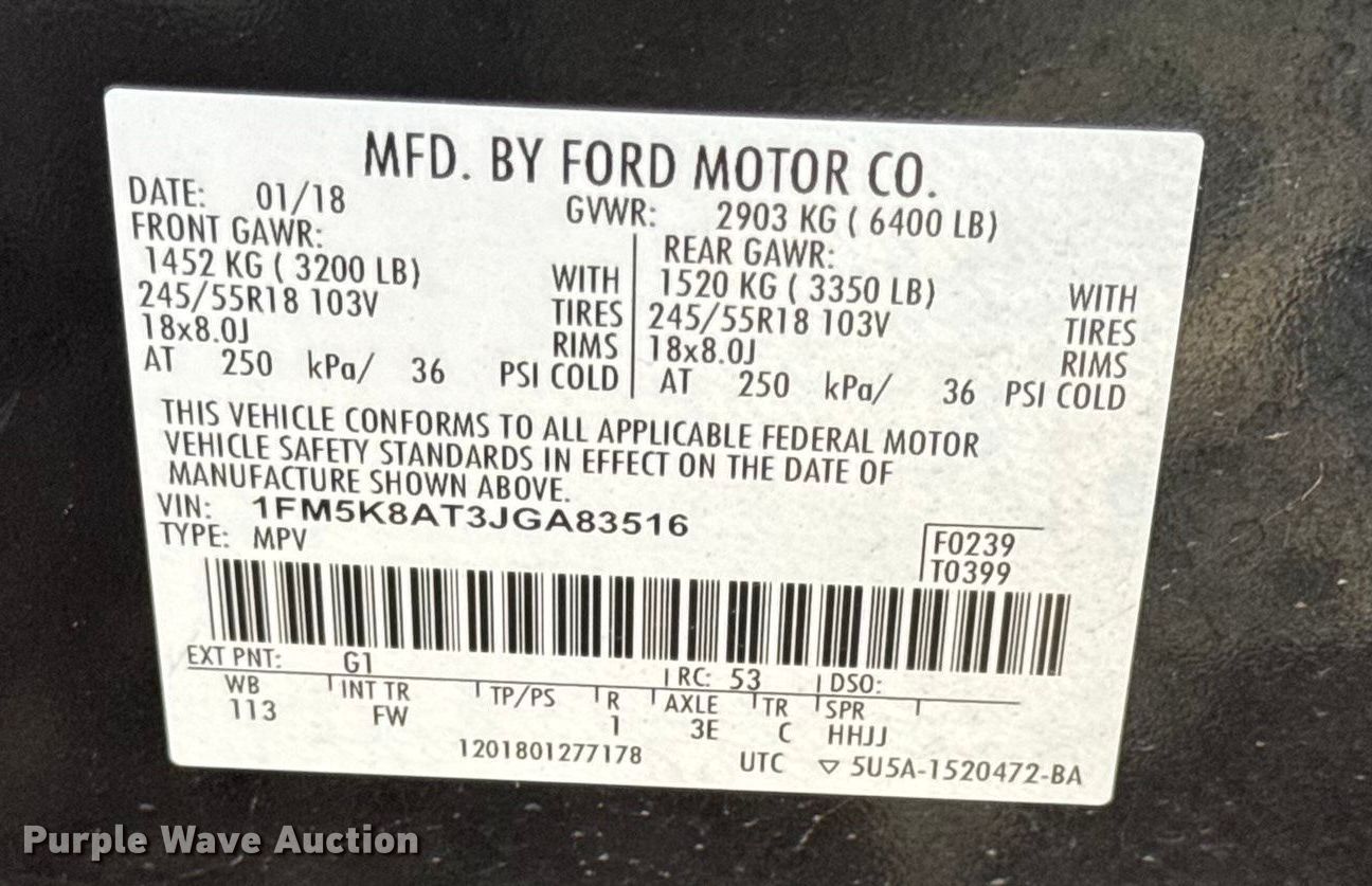 - VIN: 1FM5K8AT3JGA83516