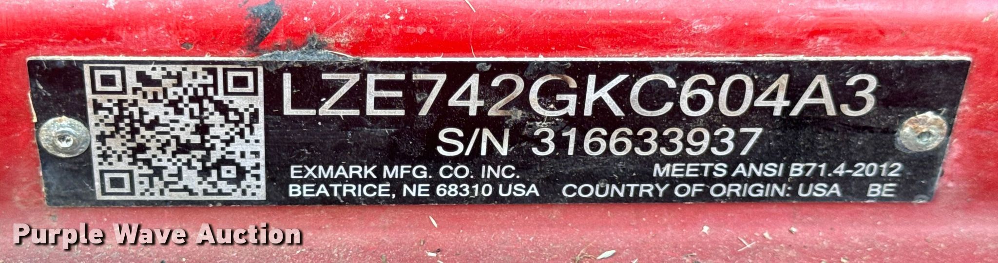 Purple Wave is selling a used Commercial Turf Mower in Missouri. This item is a ExMark Lazer Z ZTR lawn mower with the following: Hours: 330 on meter, Cutting width: 60", Serial: 316633937