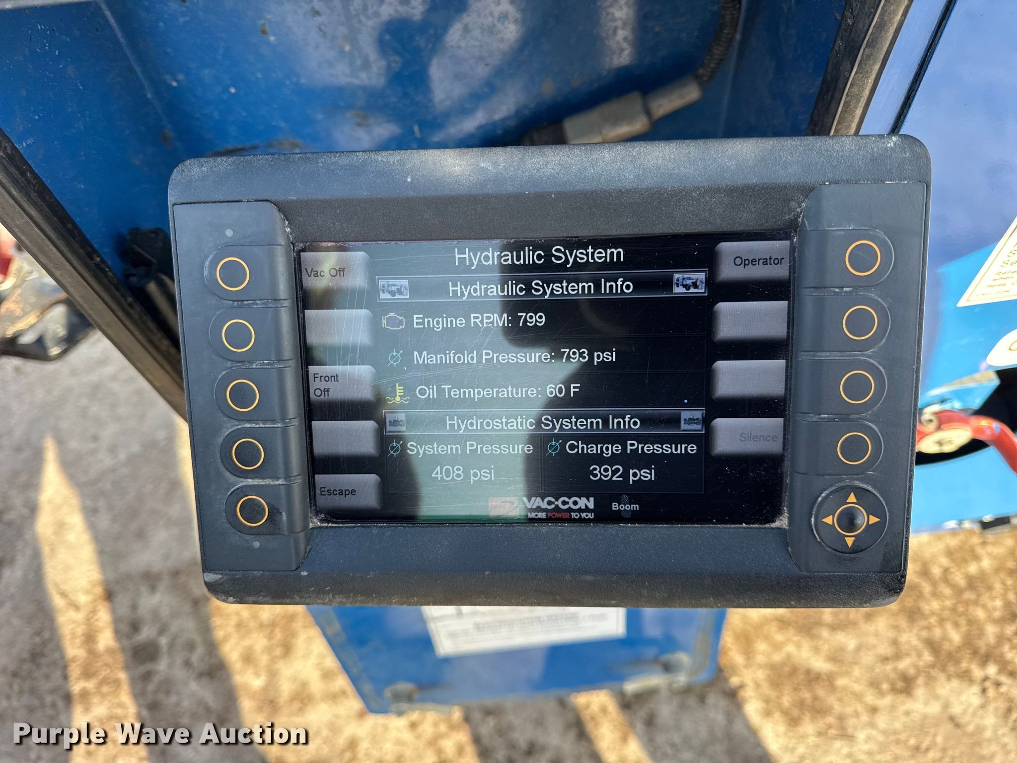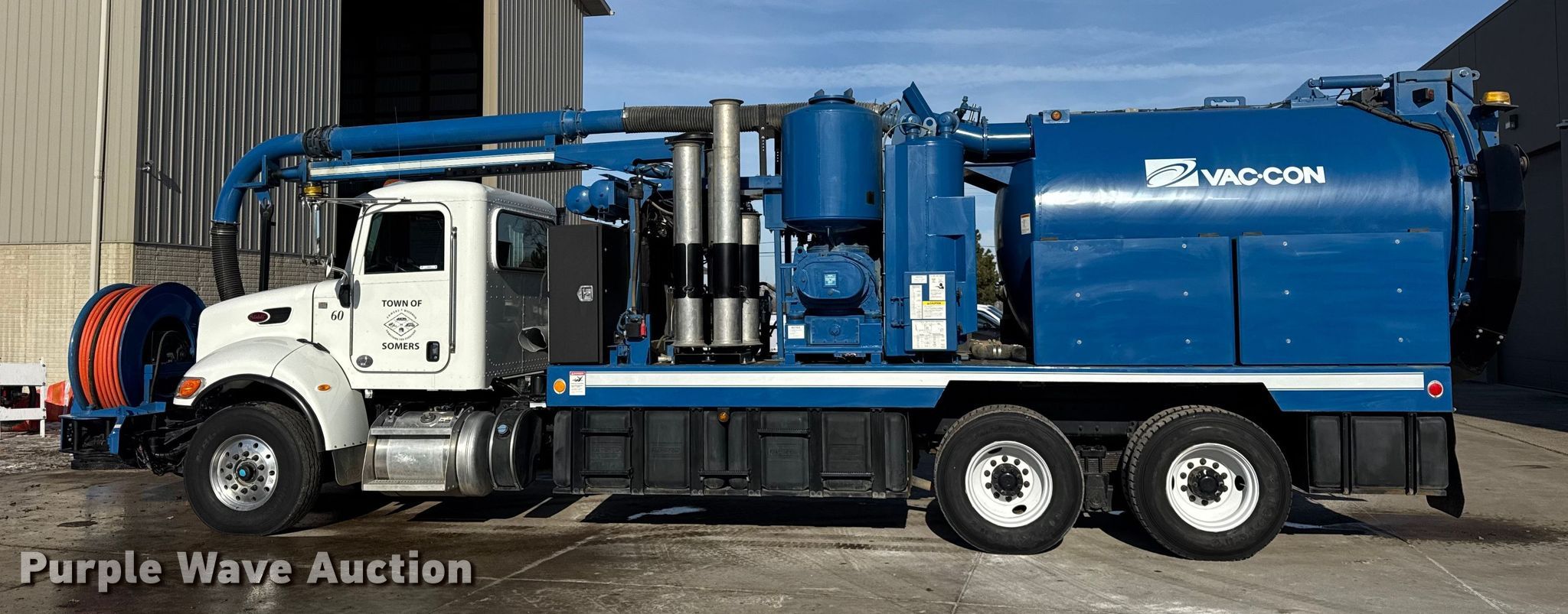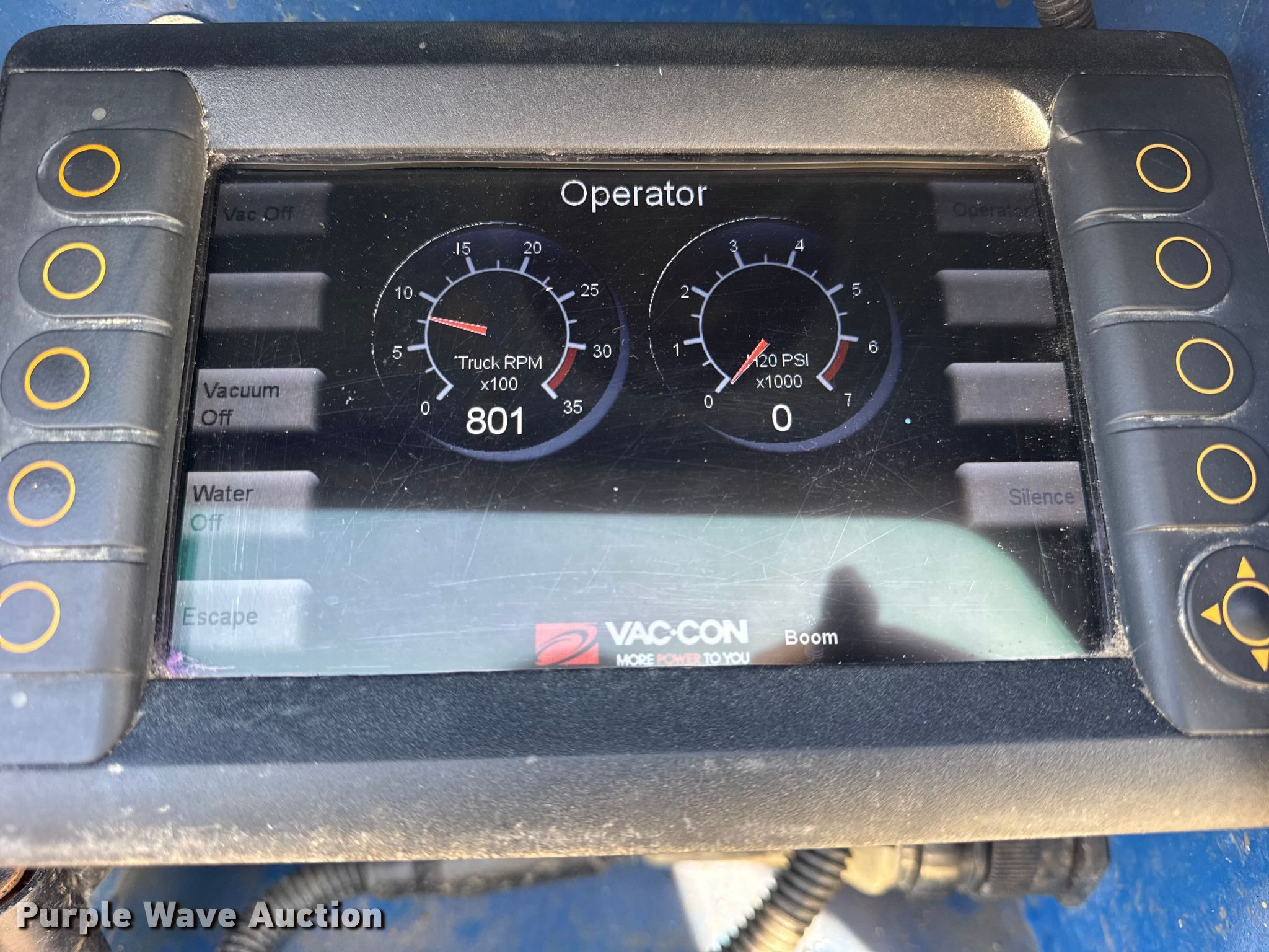 2014 Peterbilt 348 sewer jetter truck. Miles: 13,478 on odometer, Hours: 1,881 on meter, VIN: 2NP3LN0X4EM214667. Engine Paccar PX-9, Displacement: 8.3L, Cylinders: 6, Fuel type: Diesel. Transmission Automatic. Chassis Axles: Tandem, Differential lock: Inter-axle, Suspension: Spring over walking beam, Brakes: Air, PTO, GVWR: 60,000 lbs. Interior AC, Heat, Heated mirrors, Power windows, Cruise control. Features Bed Tank bed, Vaccon VPD3611LHAEN, Serial: 03136433, Capacity: 1,500 gallons, Rear outlet: 6", Water pump FMC L1616, Serial: 012413A10842, Vacuum pump Roots 824, Serial: 1209958398, Hose reel Front, Hydraulic, Diameter: 1", Length: 750', Telescopic boom Diameter: 8", Remote control Wired, Wireless.. Tires Front: 315/80R22.5, Rear: 11R22.5. Notes Manuals included. View repairs. Wisconsin title. Title distribution may be delayed up to 14 days from verification of funds. Town/Village of Somers, WI. Kenosha, WI 53144