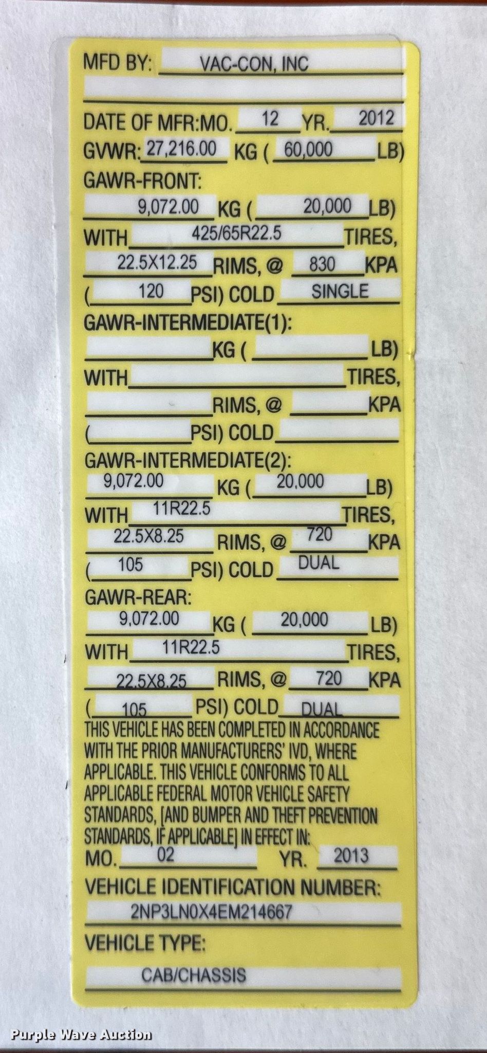 Purple Wave is selling a used Vacuum Truck in Wisconsin. This item is a 2014 Peterbilt 348 sewer jetter truck with the following: Miles: 13,478 on odometer, Hours: 1,881 on meter, VIN: 2NP3LN0X4EM214667