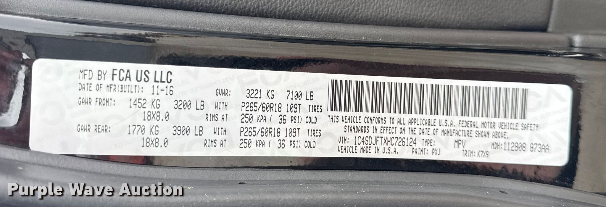 - VIN: 1C4SDJFTXHC726124