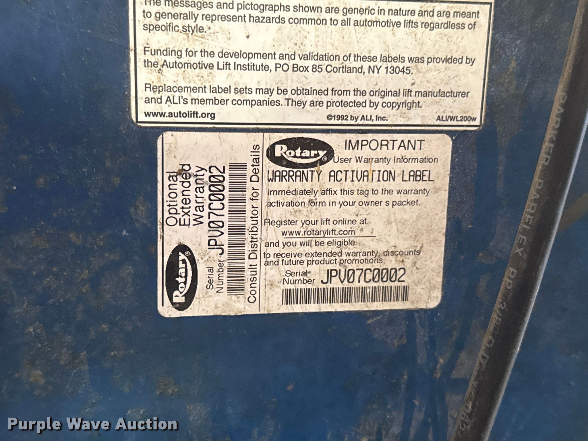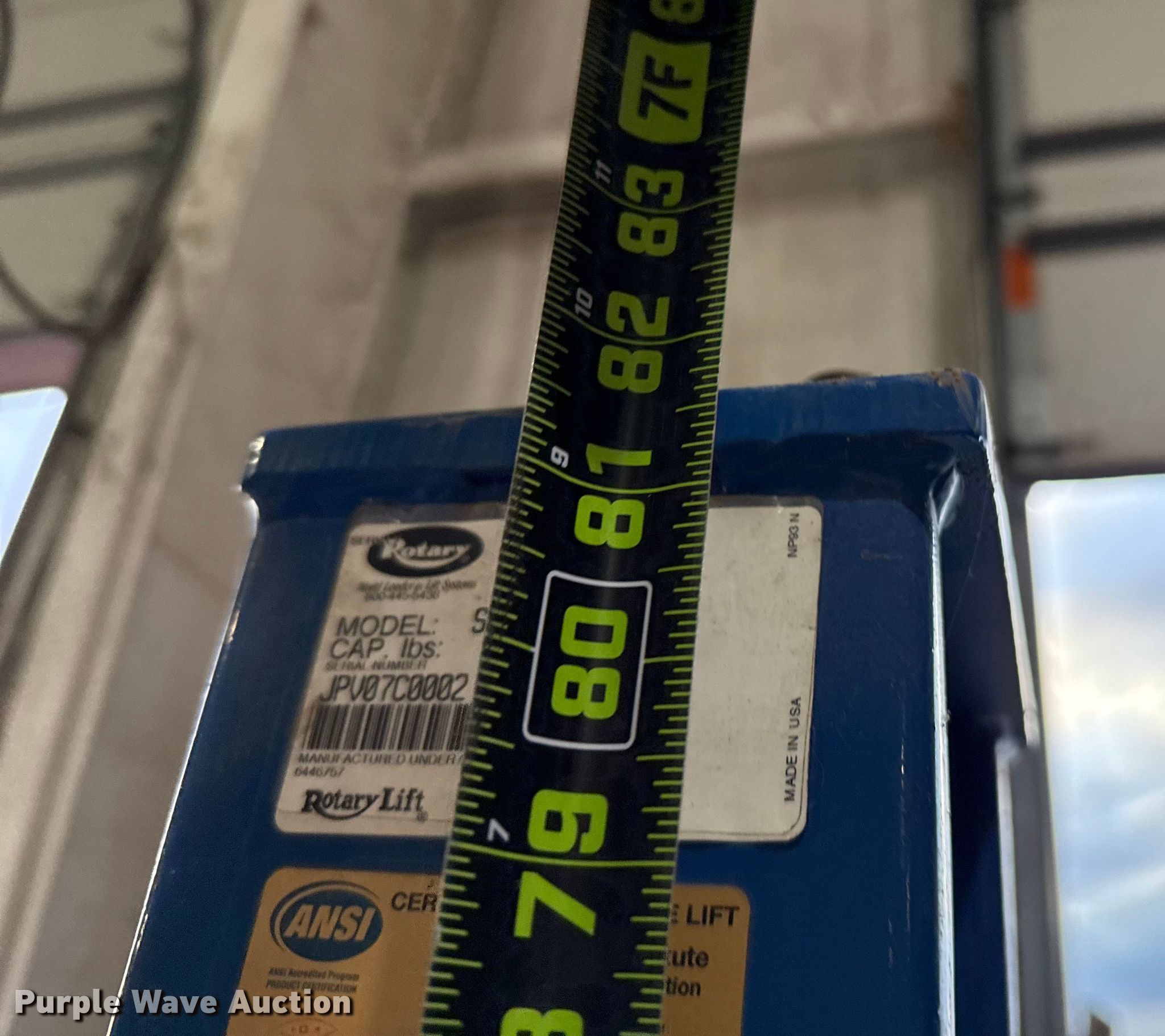 Purple Wave is selling a used Tools in Oklahoma. This item is a Rotary SM012N-001 four post automotive lift with the following: Capacity: 12,000 pounds, Length: 17'6", Width: 10'6", Height: 82", (2) air operated rolling jacks included, Electric motor, Make: GHS, Phase: Single