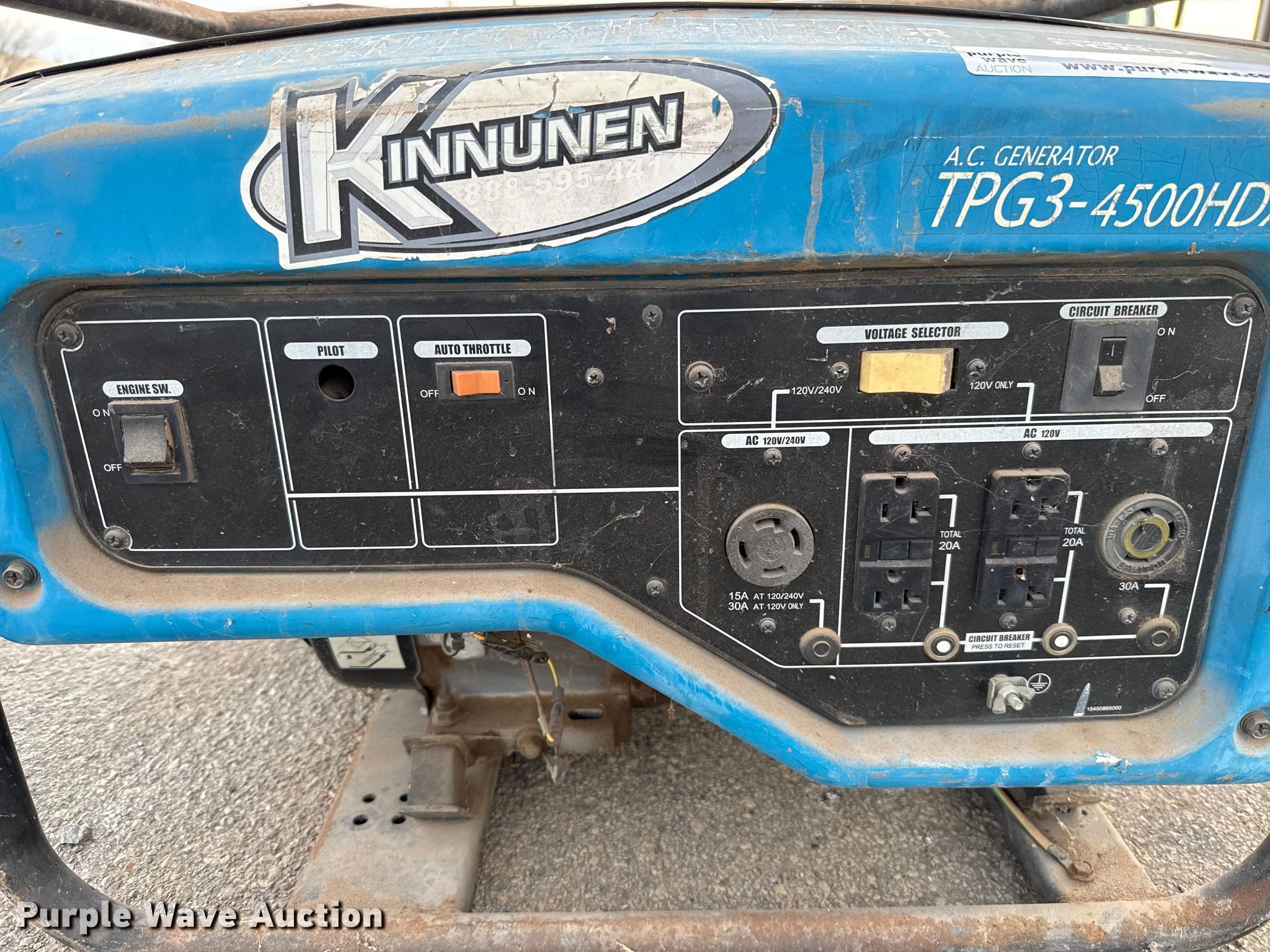 Purple Wave is selling a used Generator Set in Oklahoma. This item is a Tsurumi TOG3-4500HDX generator with the following: Honda GX240, Cylinders: 1, Fuel type: Gas
