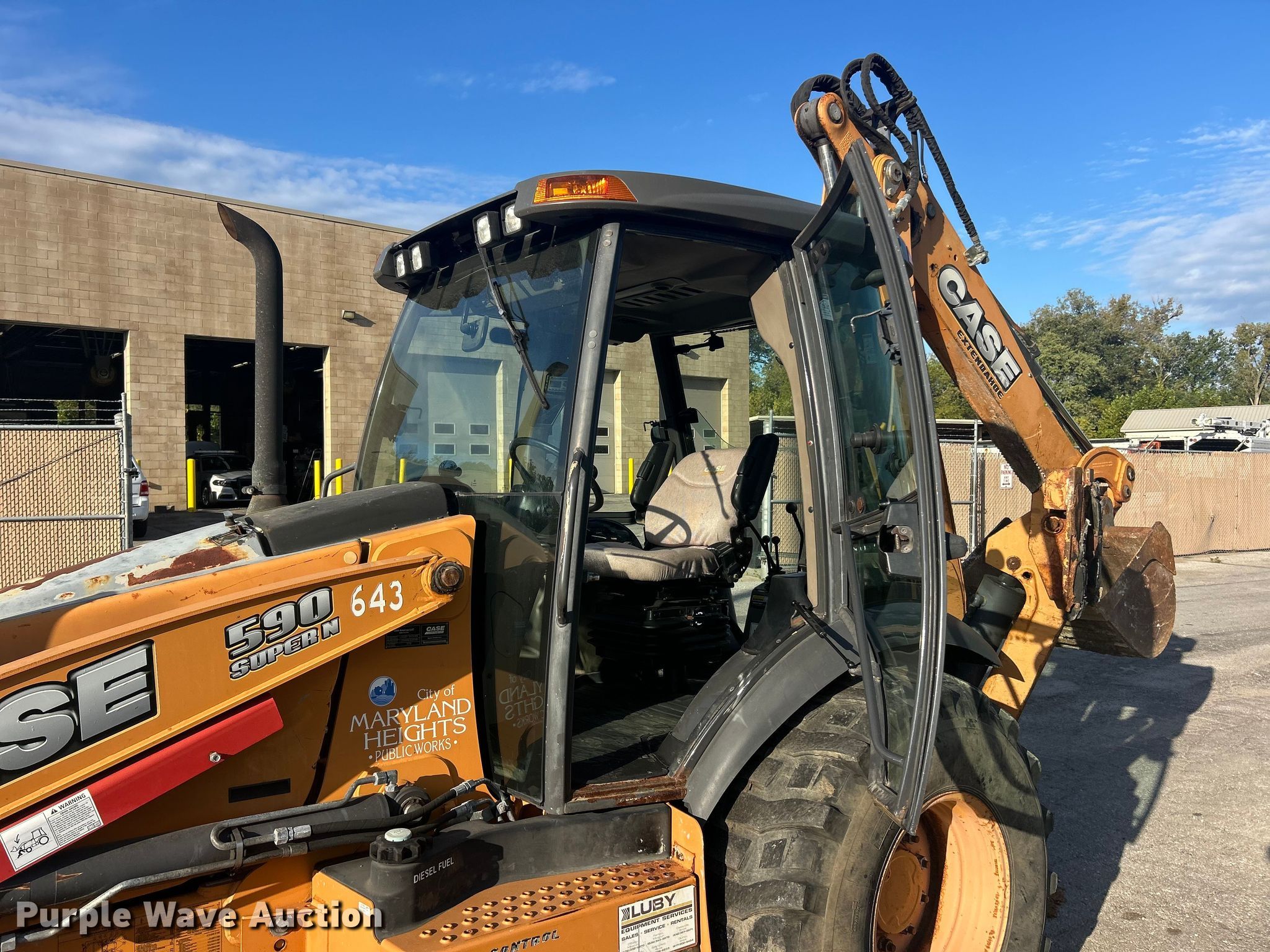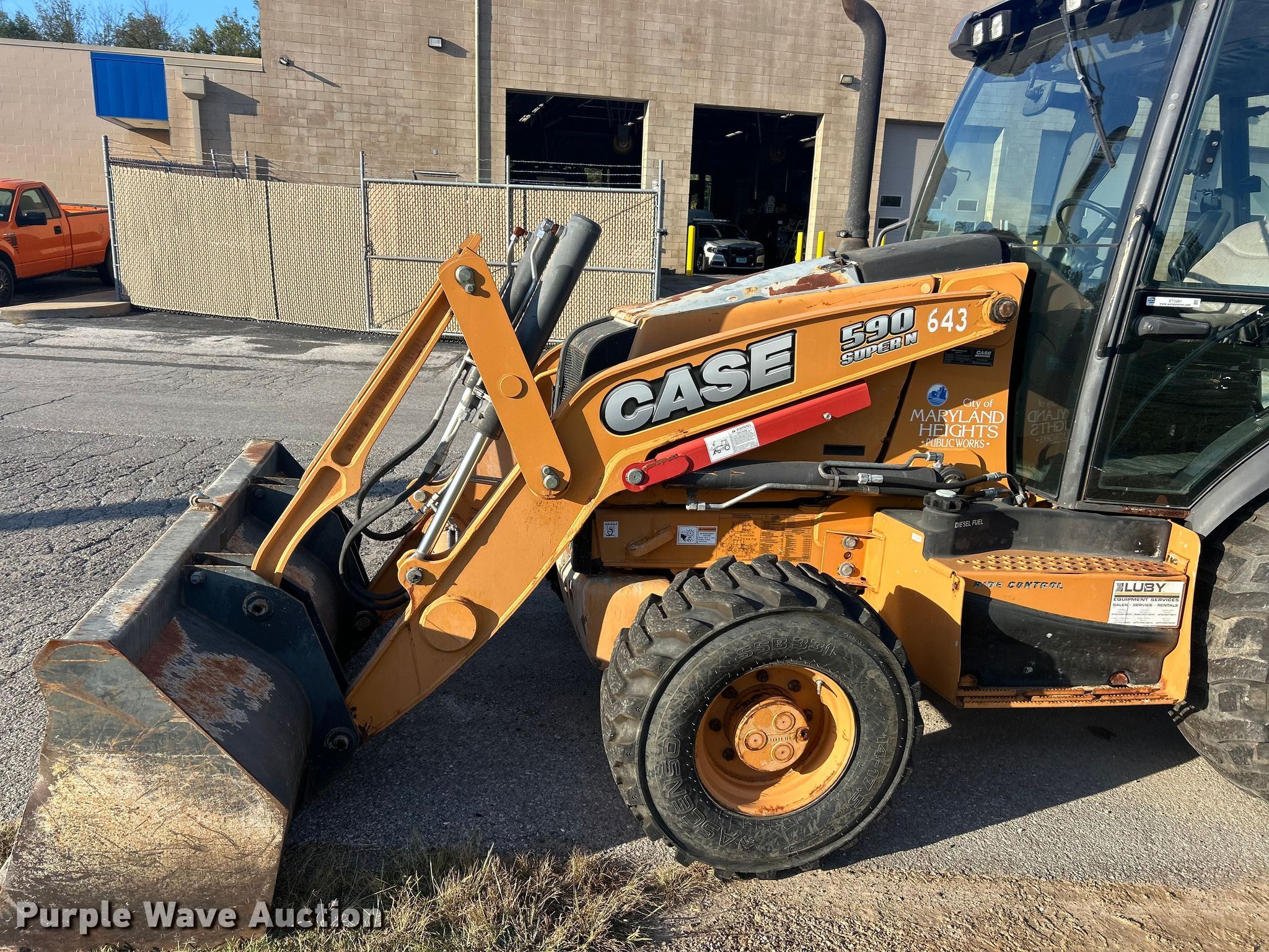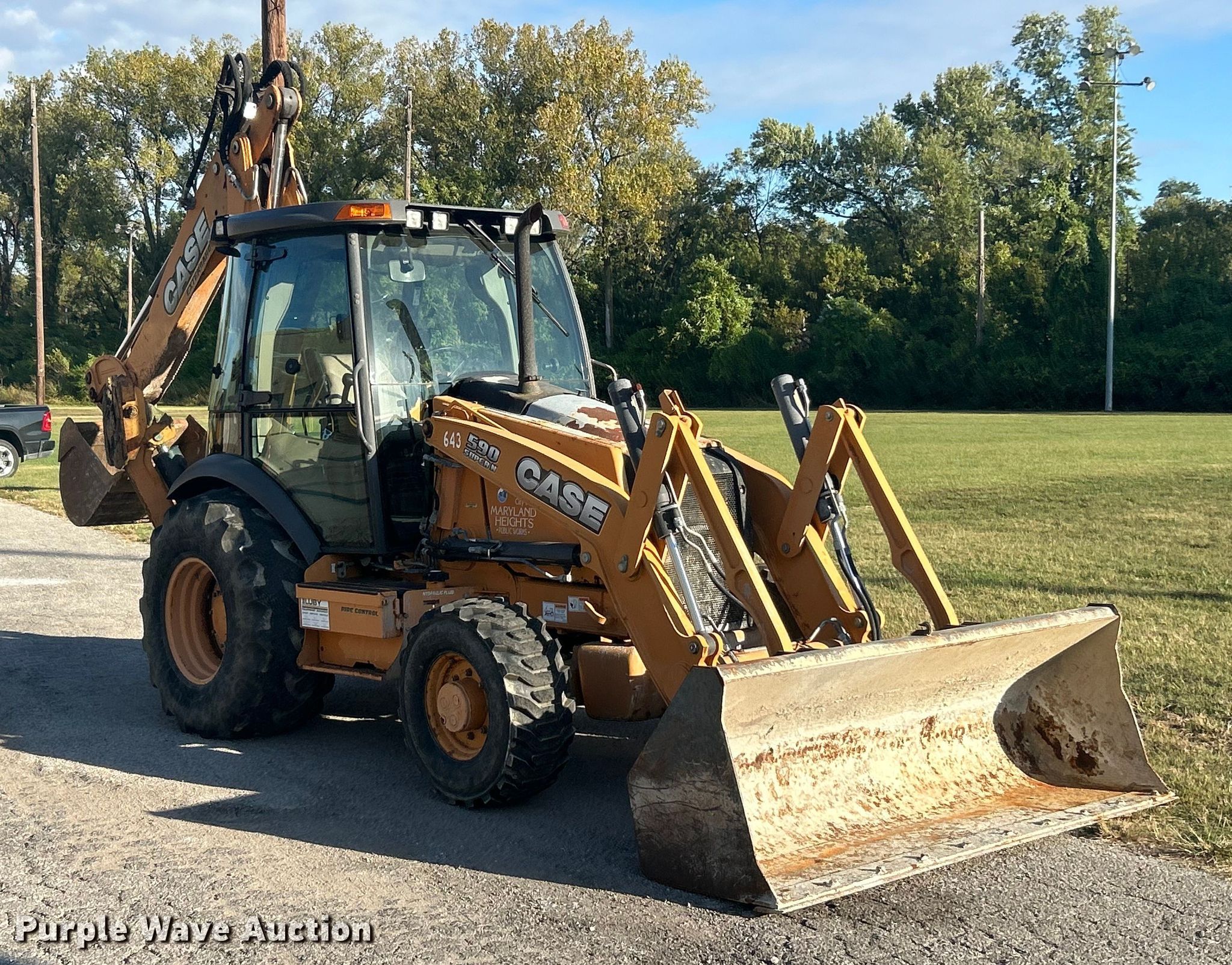 2013 Case 590 Super N backhoe. Hours: 1,495 on meter, Serial: JJGN59SNLDC591098. Engine Cylinders: 4, Fuel type: Diesel. Transmission Shuttle shift. Chassis Four wheel drive. Operators station Enclosed cab, AC, Heat, Backhoe controls: Wobble stick / two stick. Features Loader Bucket Width: 94", Cutting edge: Bolt-on, Backhoe Extendable stick, Auxiliary hydraulics, Bucket Width: 36", Teeth: 6.. Tires Front: 14-17.5, Rear: 21L-24. Notes Hydraulic leak. City of Maryland Heights, MO. Maryland Heights, MO 63043
