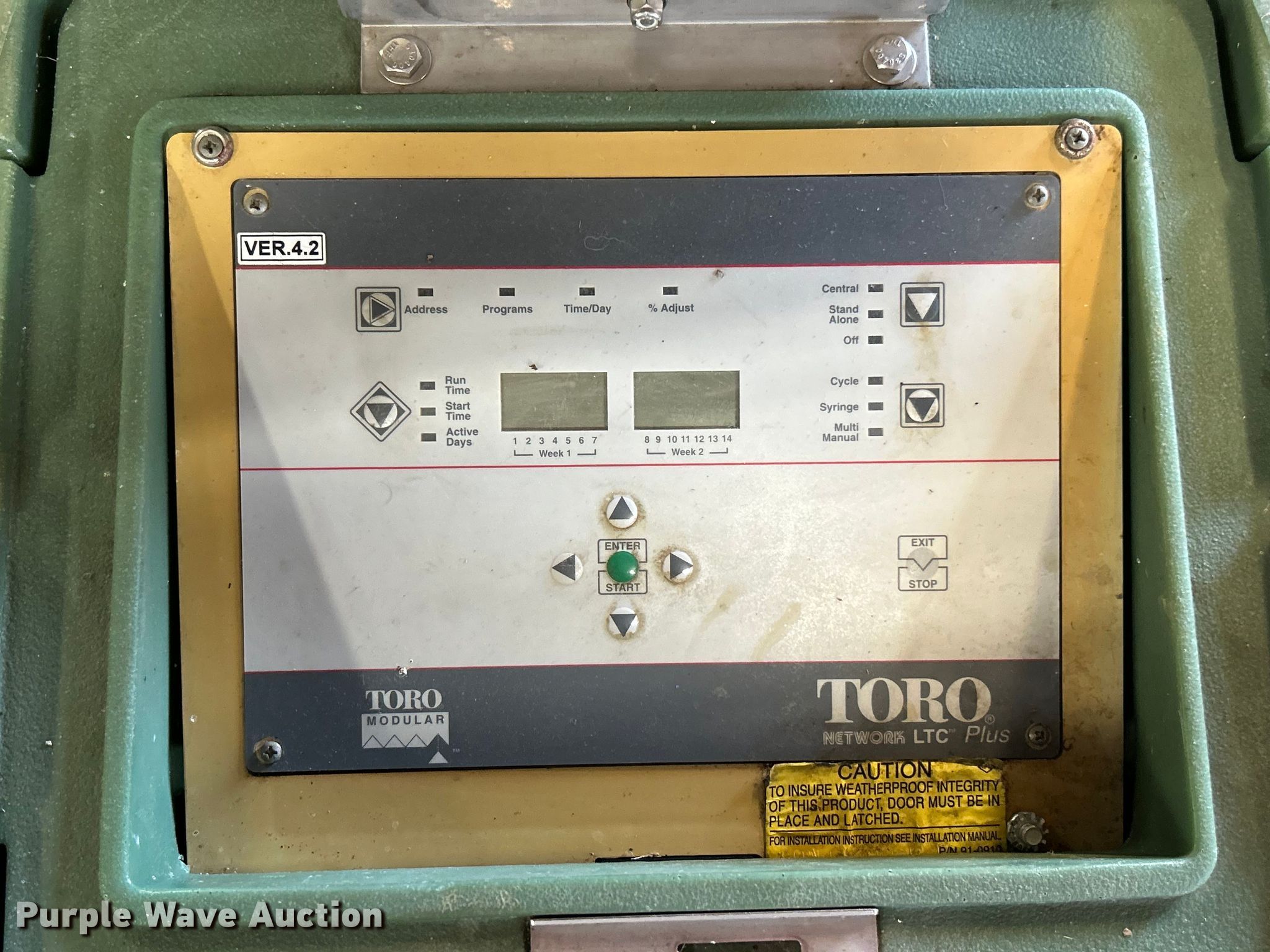 Purple Wave is selling a used Irrigation Equip. Attach. in Missouri. This item is a Toro sprinkler system with the following: (3) Toro Network LTC Plus control boxes, (4) electric/hydraulic manifolds, Sprinkler heads, (146) 730, (2) 760, (20) Flex 800, (20) 834S, (2) 835S