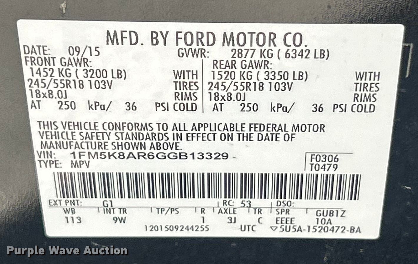 - VIN: 1FM5K8AR6GGB13329