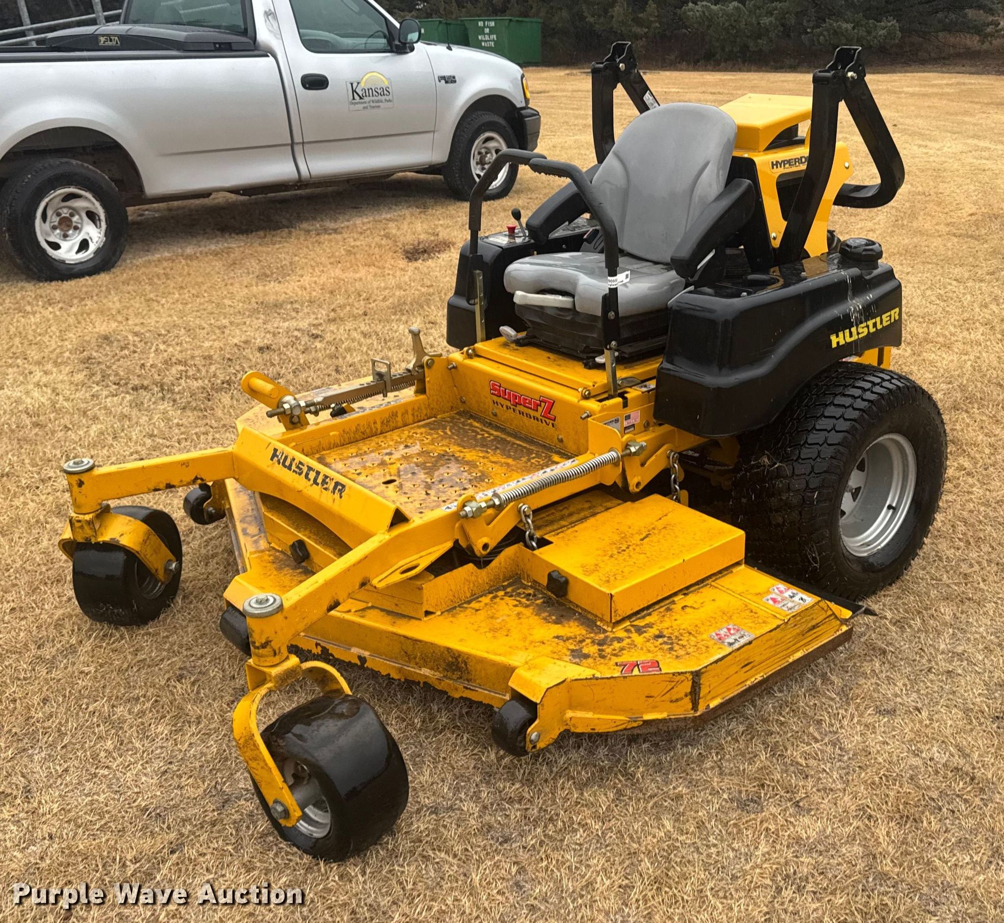 Purple Wave is selling a used Commercial Turf Mower in Kansas. This item is a Hustler Super Z ZTR lawn mower with the following: Hours: Unknown, Cutting width: 72", Serial: 13062288