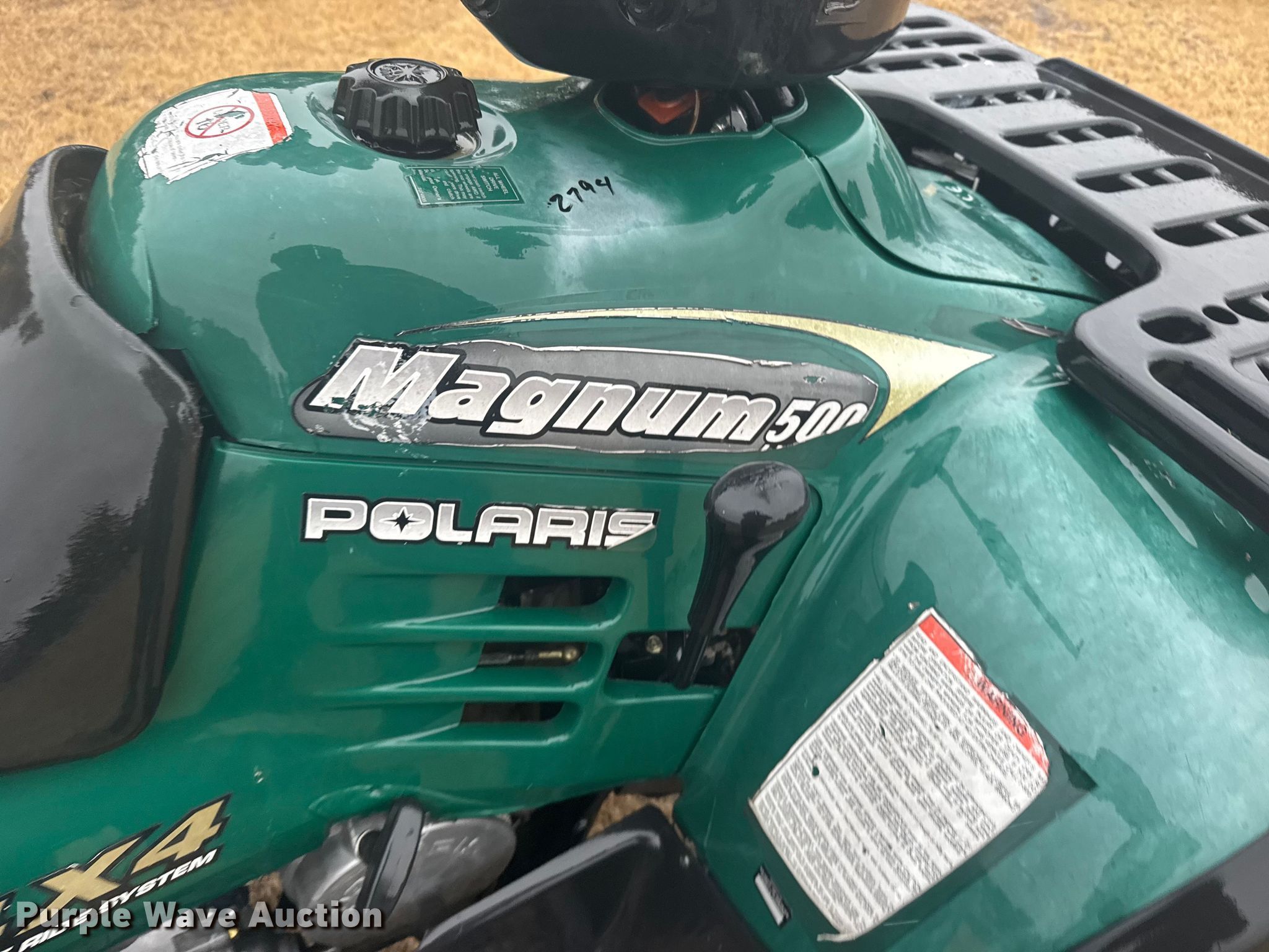 1999 Polaris Magnum 500 ATV. Miles: Unknown, Hours: Unknown, VIN: 4XACD50A1XC097412. Engine Cylinders: 1, Fuel type: Gas. Transmission Automatic. Chassis Four wheel drive/ All wheel drive. Tires Front: 25x8-12, Rear: 26x11-10. Notes Dead battery, Non-operational unit. Kansas non-highway title. Mileage has not been verified. Exempt will be written in the odometer disclosure on the title. Title distribution may be delayed up to 14 days from verification of funds. Kansas Wildlife & Parks. Stockton, KS 67669