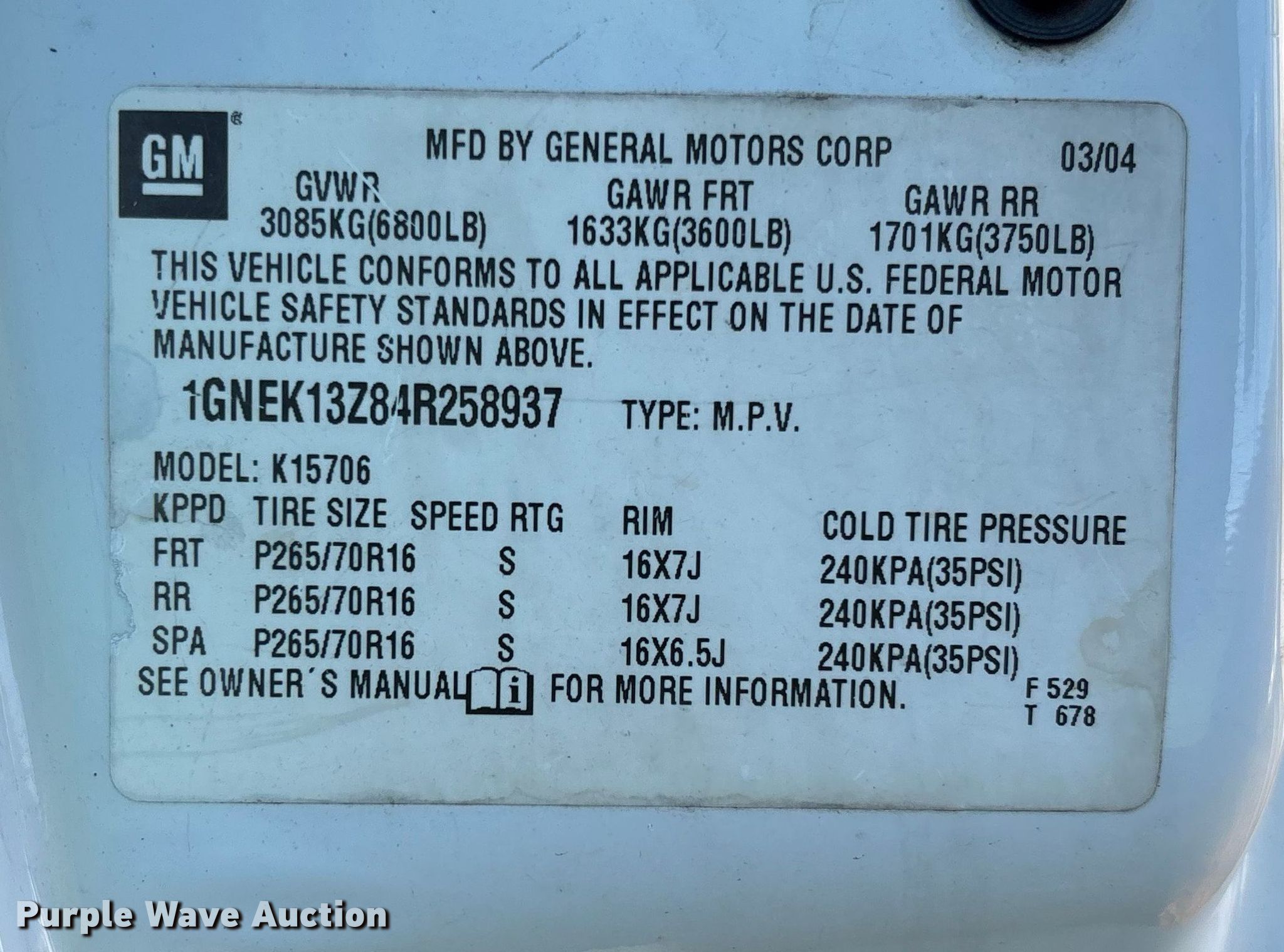 Purple Wave is selling a used Passenger Vehicle in Virginia. This item is a 2004 Chevrolet Tahoe SUV with the following: Miles: 168,552 on odometer, VIN: 1GNEK13Z84R258937